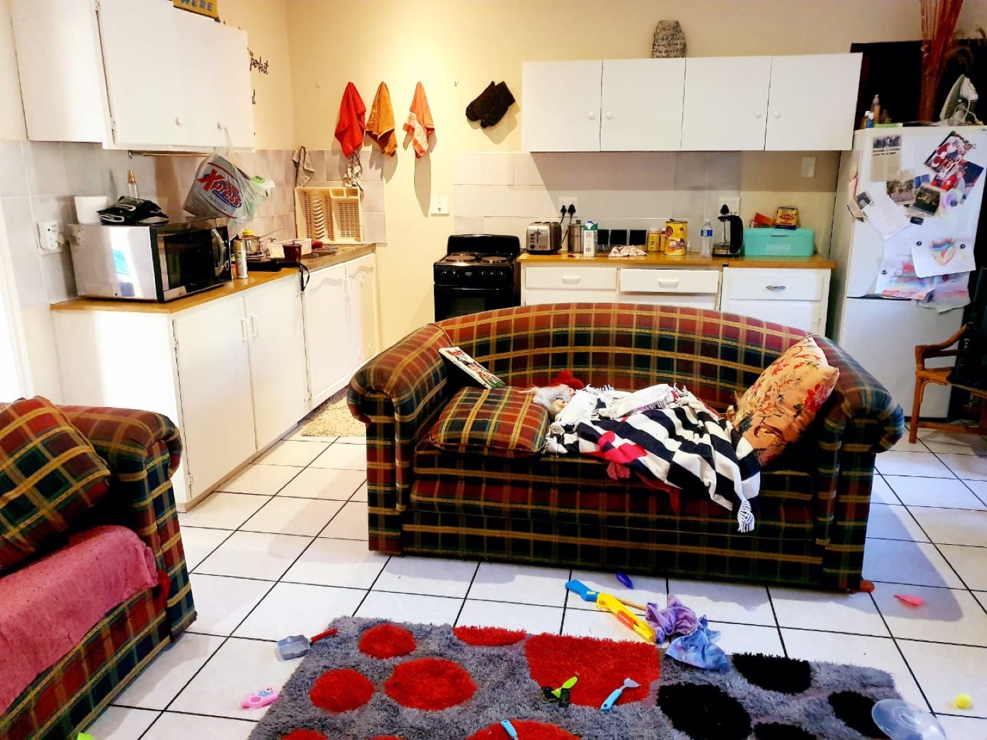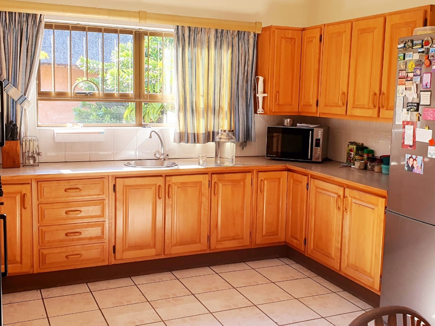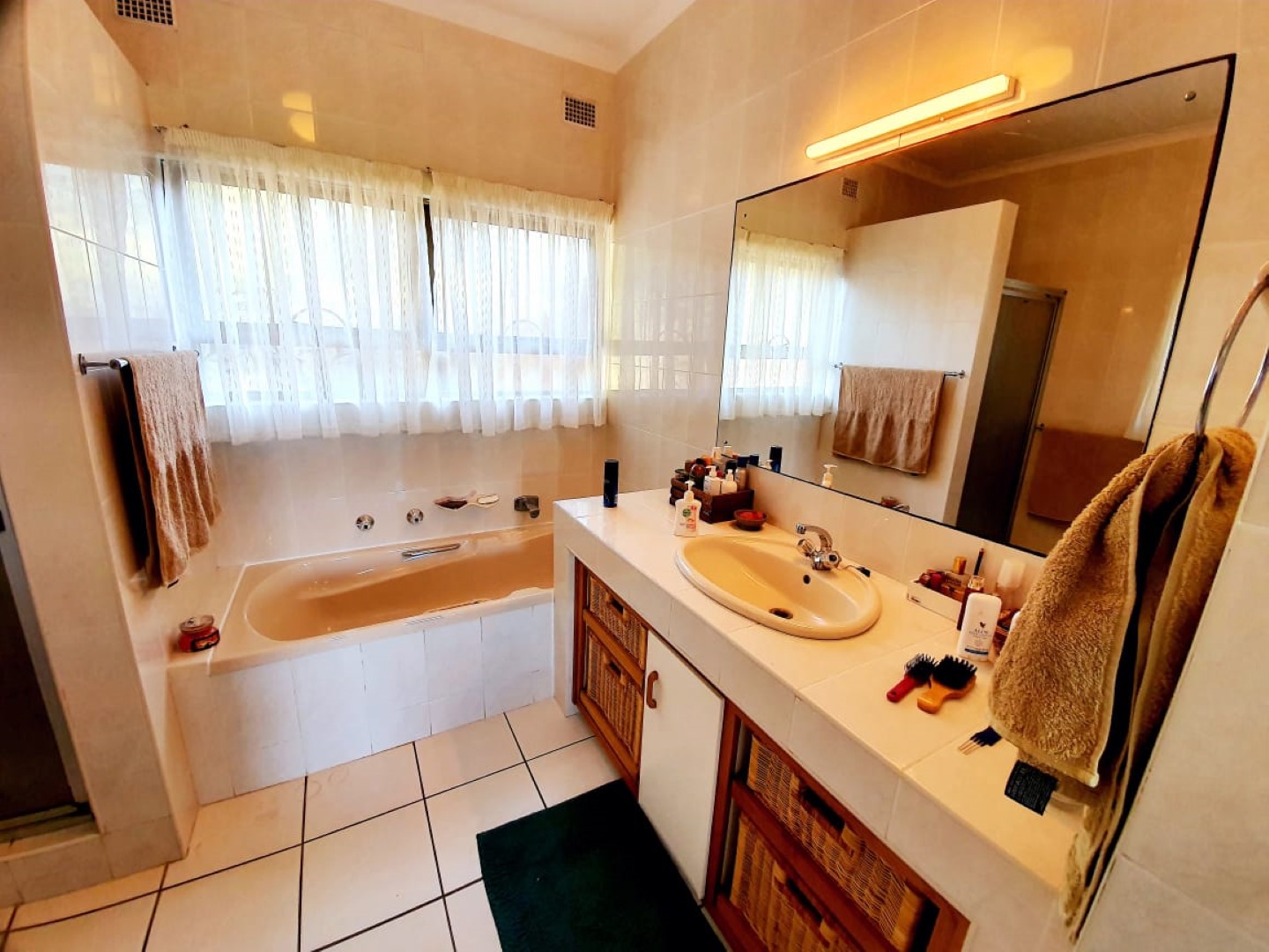 There is an over sized double garage and 3 carports, another 2 bedroom flat, lounge, open plan to kitchen and 2 bathrooms. There are 2 solar geysers which reduces the expense of the electricity bill.