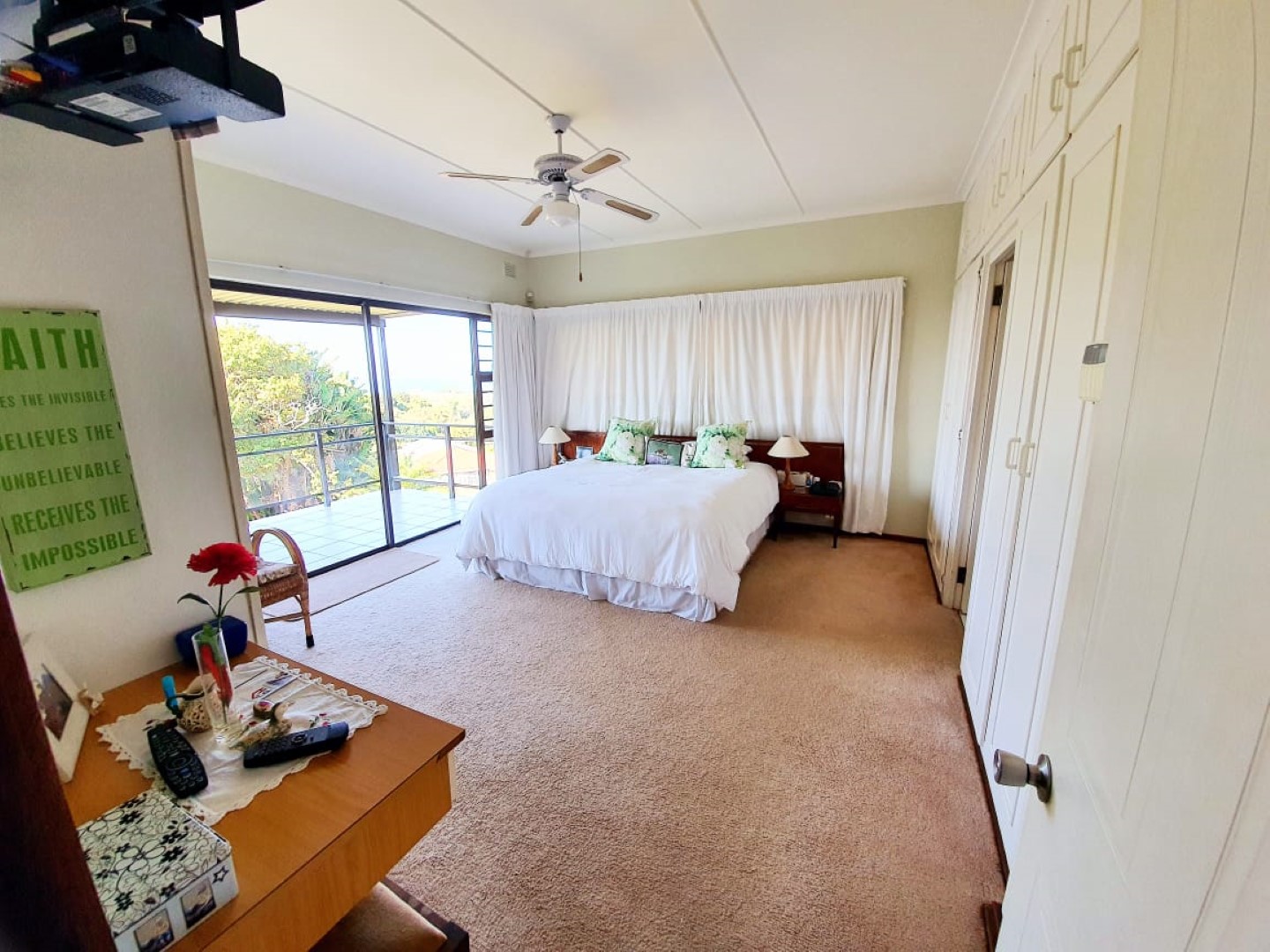 Immaculate, well built face brick family home with the main, upstairs of large proportion consisting of entrance with stairs leading downstairs, 1 main bedroom with en suite bathroom, sliding doors to balcony with sea views, guest toilet, lounge with sliding doors to balcony, open plan to dining room and both with sea views. Large Beech wood kitchen with breakfast nook and adjoining scullery and laundry, leading to outside courtyard with shed, wash line and water tank.