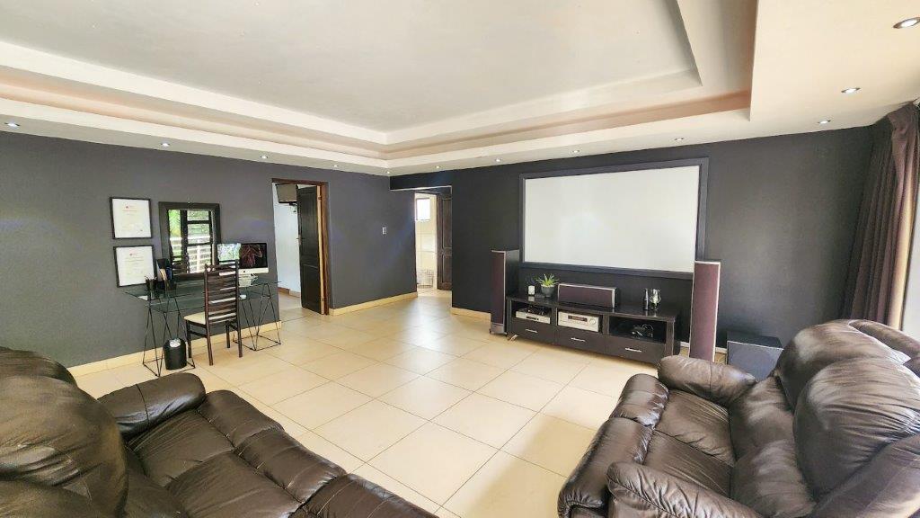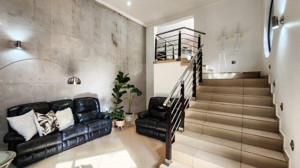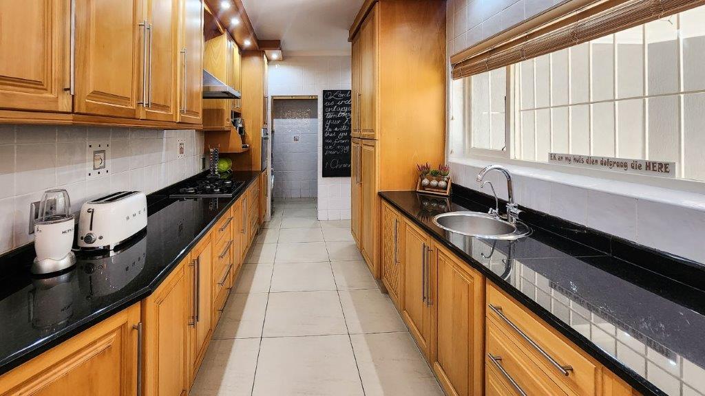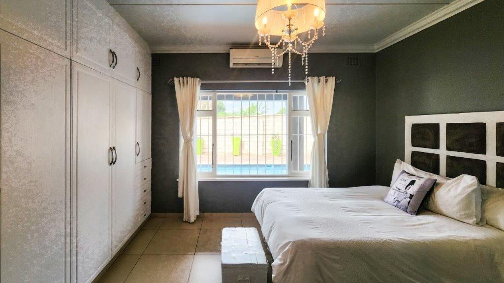 There is staff quarters, a large man's gym which could be converted into another two garages as well as a wooden shed. Ample parking to the property and a luscious garden with well-established trees and bird life. The property has a borehole with an inverter as well as a separate inverter for the main house. Jojo tanks are also in place. Property is fully walled with electric fencing.