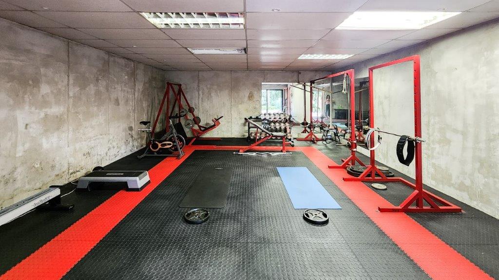 There is another large section to the house that could be used as a large flat. There is an open plan bedroom and cinema room leading to the balcony as well as a room currently used as the ladies gym room and a bathroom with a shower, toilet and basin. There is a total of three double garages, as well as another garage that could be a double garage, but one side has been closed up to create a workshop.