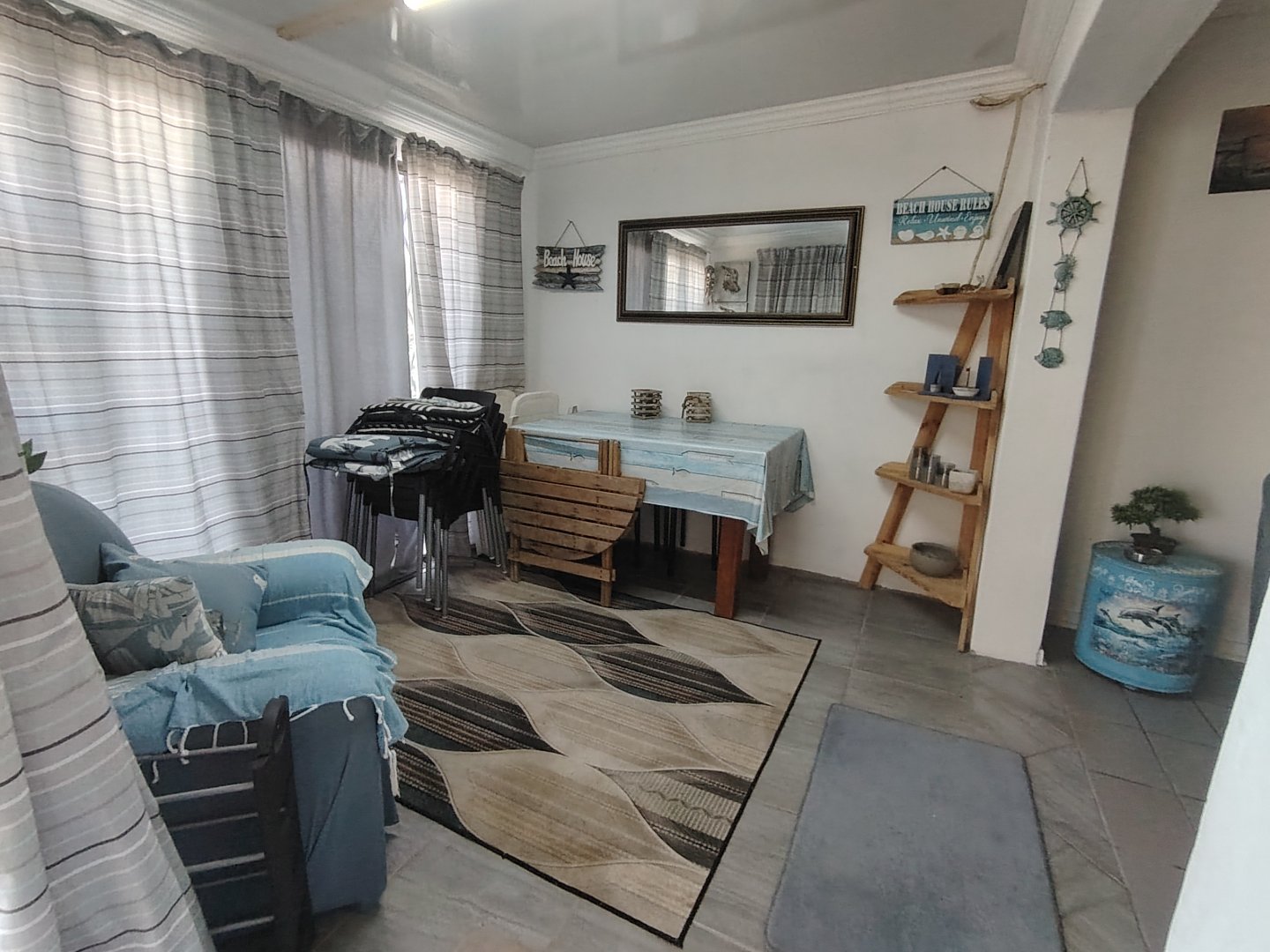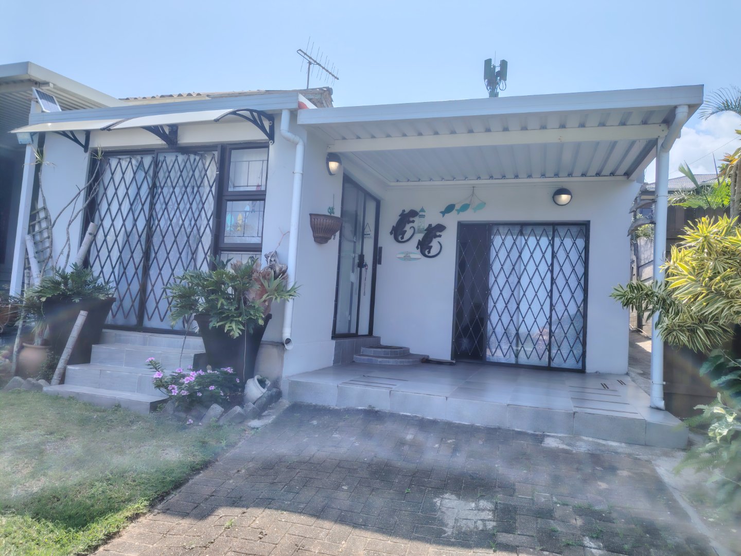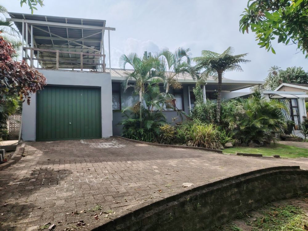 Take a walk through this home with me. When entering the property the main house is to the left and the first flat is to the right, the bachelor flat is at the back of the home. Let's start at the main house first, the garden is front is big and with a few steps you enter via the under cover patio - into the dining room / entertainment area. The open plan lounge and kitchen is the heart of the property. To the left is either an entertainment area or currently used as the third bedroom - there are steps leading to the single garage and the balcony area on top of the garage. Through the spacious kitchen you enter into a massive laundry / study and that leads out into the garden. Down the corridor the main bedroom is to the right - overlooking the front garden with sea views) the second bedroom is to the left - overlooking the back garden, the family bathroom is spacious. If you have a big family - connect the flat to the house to give everyone their own space. Let's move to the first flat to the right of the property. When entering the property the dining room / entertainment area opens up into the open plan lounge and kitchen. To the right is the main bedroom - overlooking the front garden with sea views and the second bedroom overlooks the side of the home. Moving past the kitchen with a few steps up, the first bathroom is to your left and the third bedroom / office is in between the two bathrooms, the second bathroom is at the end of the corridor. Now moving to the back of the property, there is a wooden bachelor wooden home with a bedroom and a bathroom - ideal for a stubborn teenager that wants their own space. The back yard is big and has a lot of potential to install a pool. There is a Jojo tank at the back of the property. The property is walking distance from the beach and a short drive to Shelly Beach.