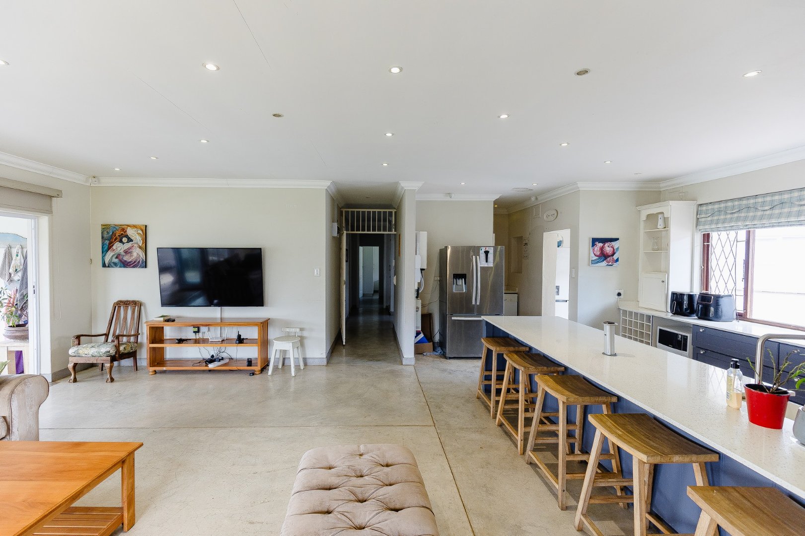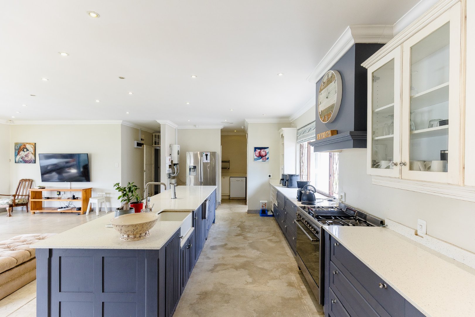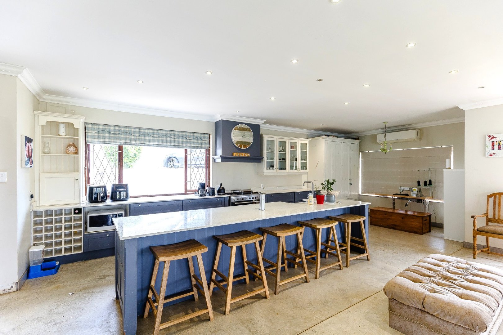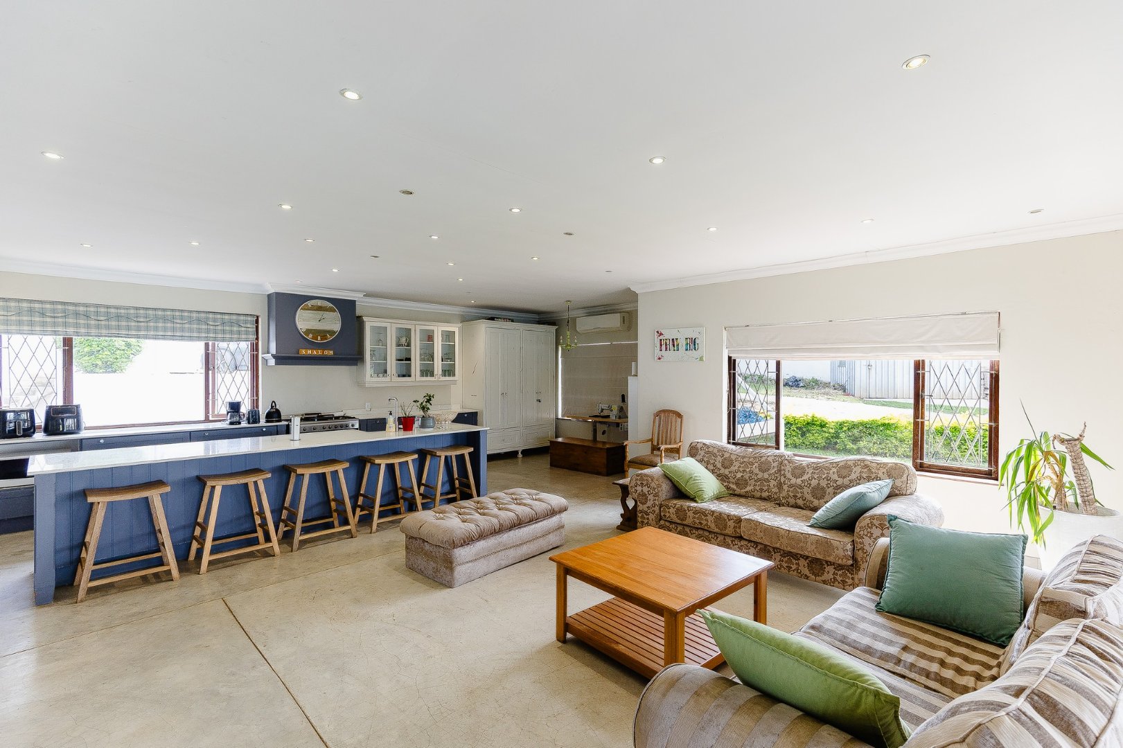 As you step inside, you’ll love the open-plan living area designed for both relaxation and entertainment. The large kitchen has a centre island, a scullery, and a laundry room, making meal prep a breeze.