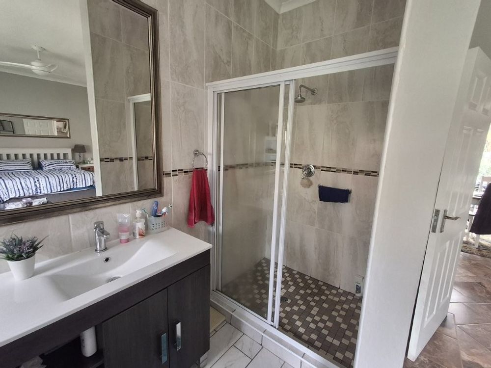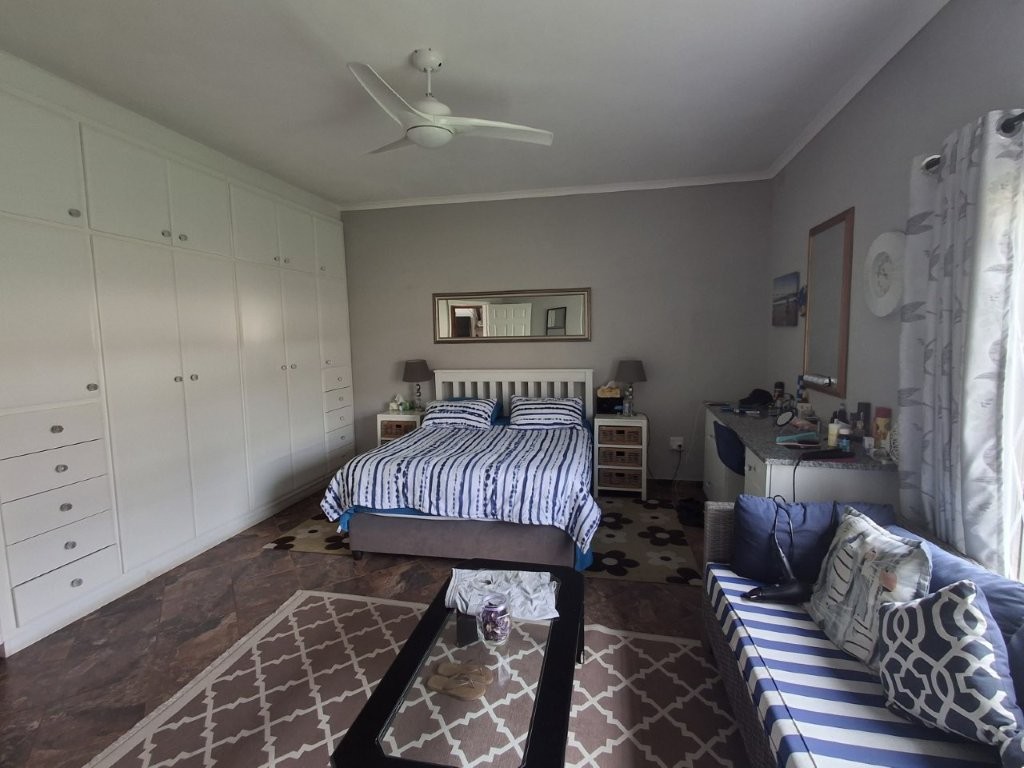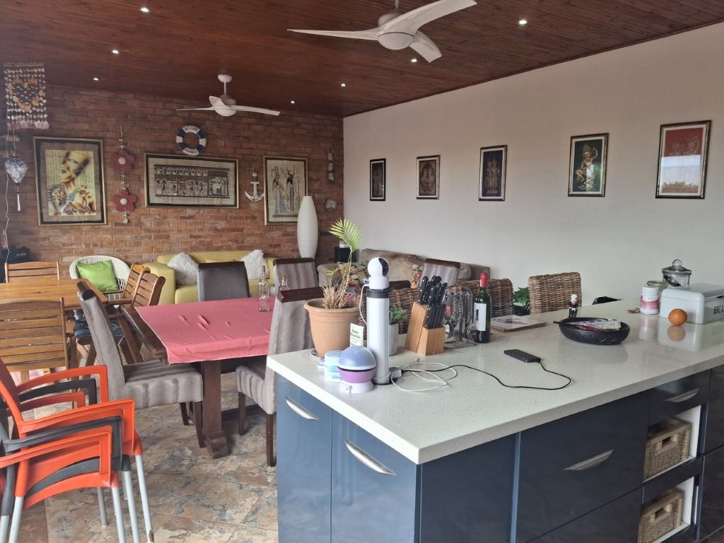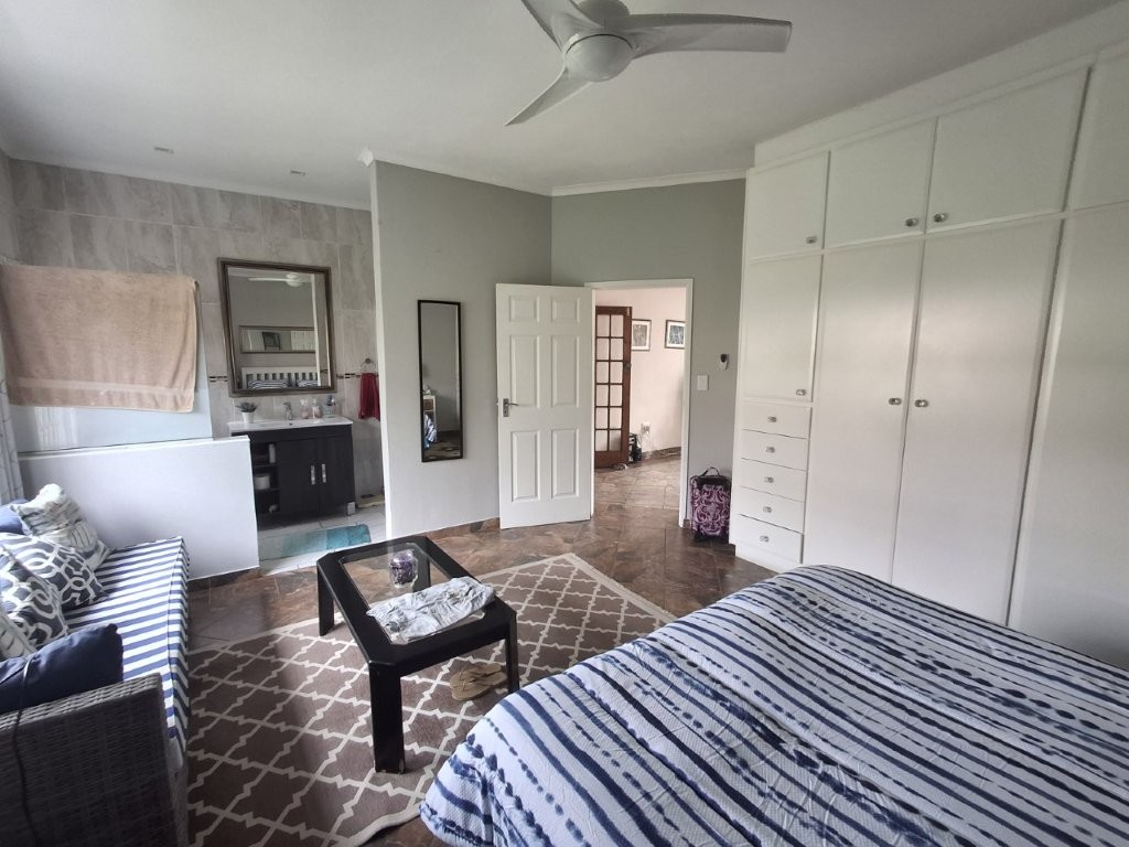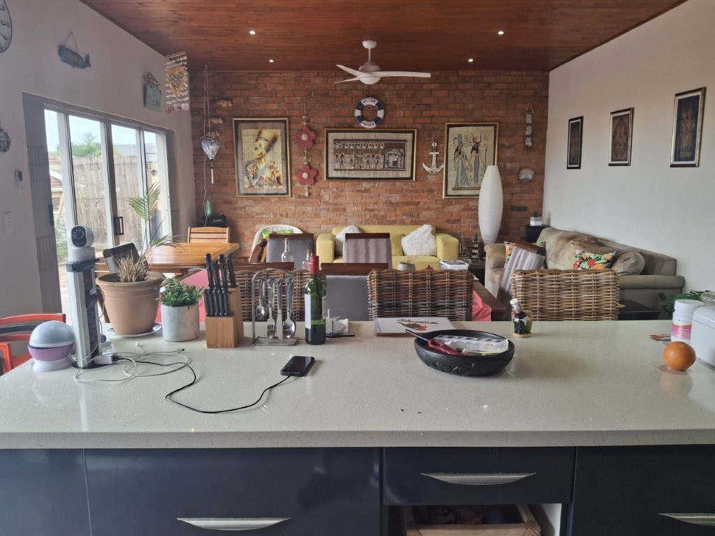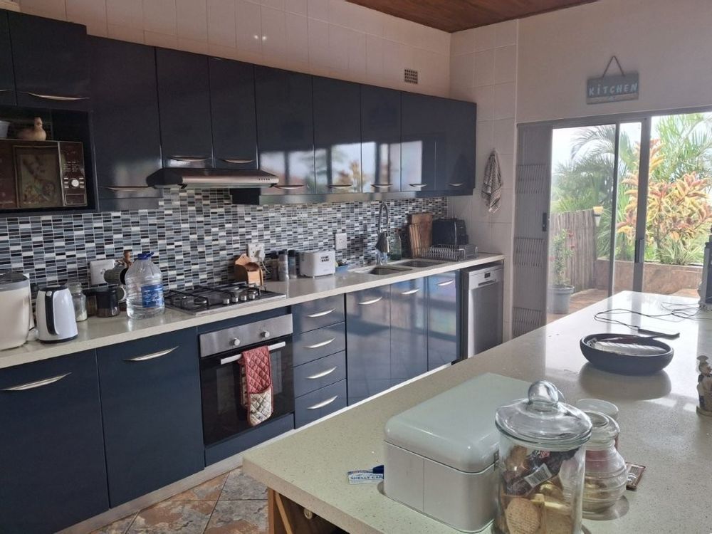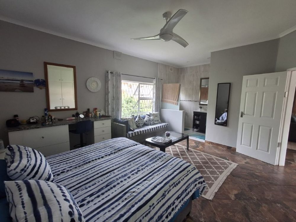 This spacious family home, situated in St Michaels, with amazing ocean views offers everything you need for comfortable coastal living with a lucrative rental income. As you enter the main house, into a welcoming entrance hall, you will find on the right wing, 3 spacious bedrooms and 2 modern bathrooms, the main bedroom, with an abundance of cupboard space, has the bathroom en-suite and a second bathroom, strategically placed, caters for the 2 remaining bedrooms. There is also a homely TV room with a feature fireplace, offering you cosy private evenings. The left wing of the home gives you open plan living, with a large lounge, informal dining and a beautiful modern kitchen with top of the range cabinetry and sleek granite work surfaces. These areas flow, through double volume sliding doors, to an outside patio and pool area with beautiful views over the Indian Ocean. To the right of the patio there is an enclosed entertainment area, with a built-in braai, so come rain or sunshine entertaining is a breeze.