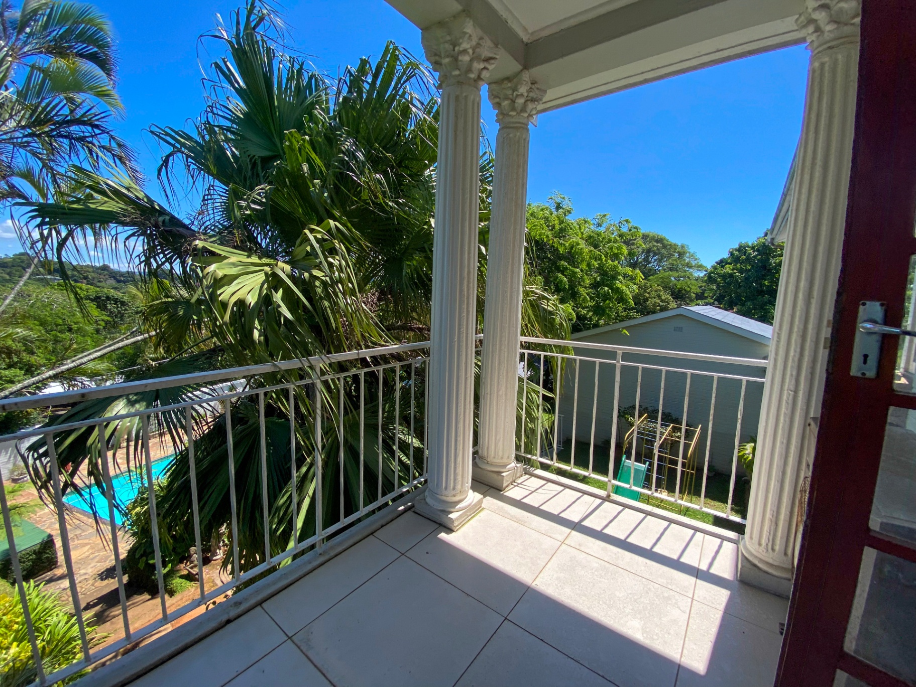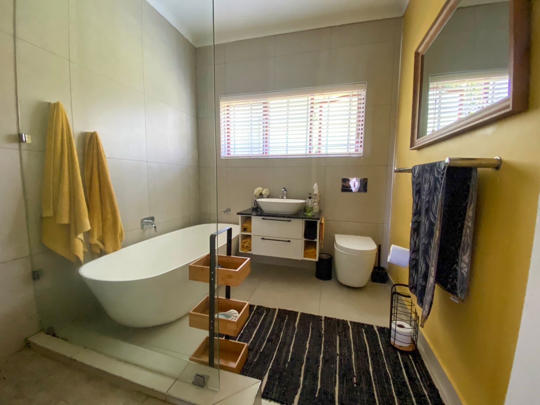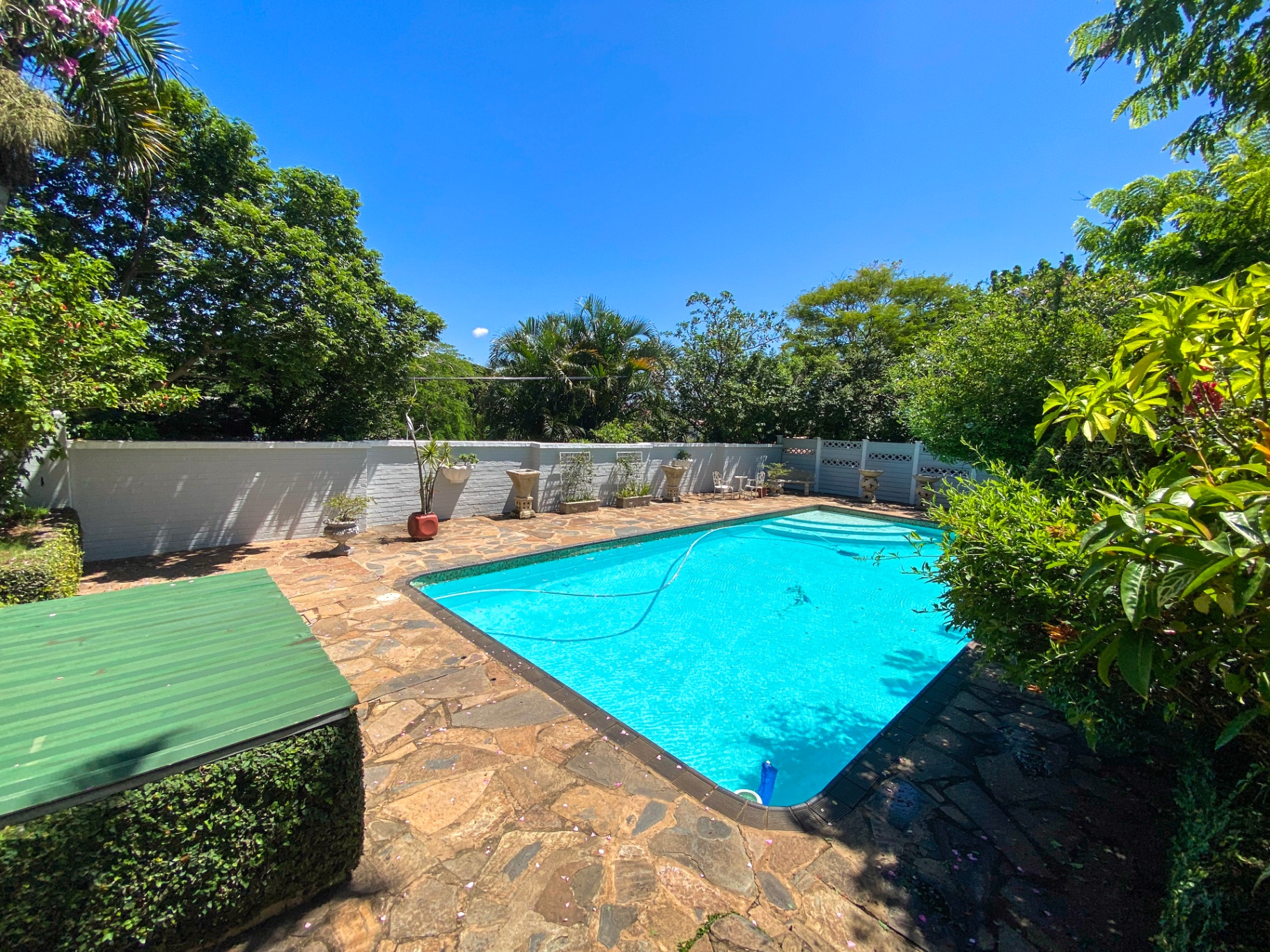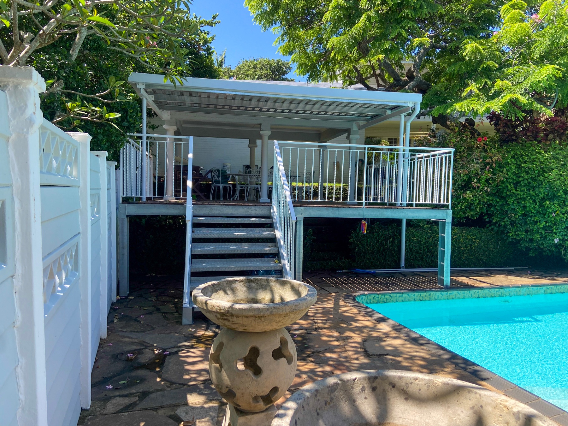 tags features = 5 spacious bedrooms, 3 bathrooms (including a main en-suite and a study), an additonal one bedroom with ensuite used as domestic room, open-plan lounge and dining areas flowing seamlessly, a gourmet kitchen with ample storage and sleek countertops, separate scullery, five automated secure garages, a charming covered patio, a beautifully manicured garden, pet-friendly environment, excellent security features, and convenient proximity to St Michaels' pristine beaches, popular surf spots, local amenities, and vibrant restaurants.
