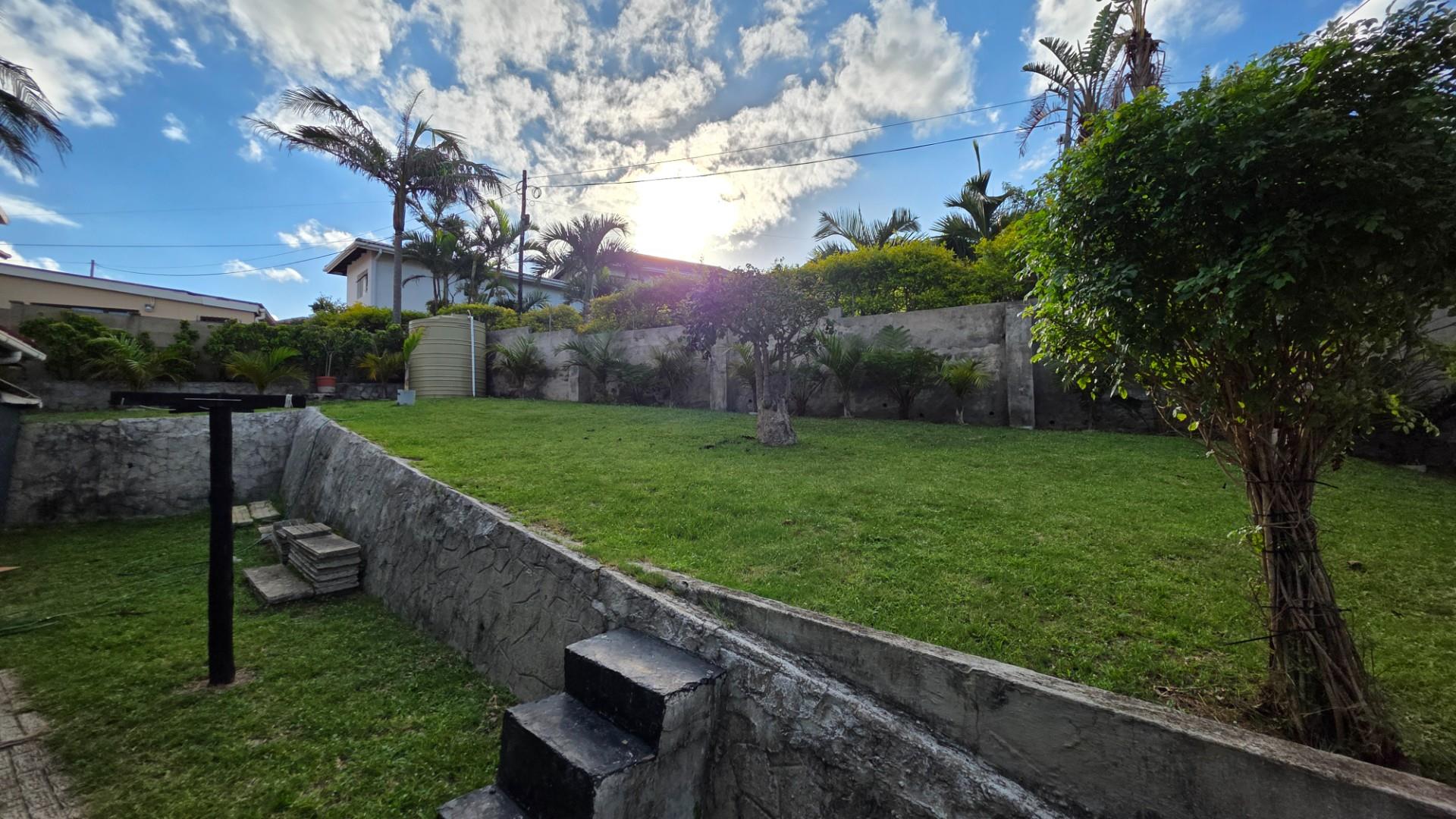 The main bedroom is fitted with ample wardrobe space, a ceiling fan for those super muggy Summer days while the second bedroom is slightly smaller and is also fitted with ample wardrobe space. The bedrooms share the bathroom. The kitchen provides access to a spacious backyard terrace, with wash lines and a large storeroom. The 5200 litre reserve water tank is positioned out of sight at the back of the property and gathers rain water while an additional 1000litre tank also offers backup reserve. These tanks are not plumbed into the home but this can easily be connected. Additionally, the home has a 10Kw Invertor and 5Kw battery in place. This system is able to run the home for 3 days without electricity!