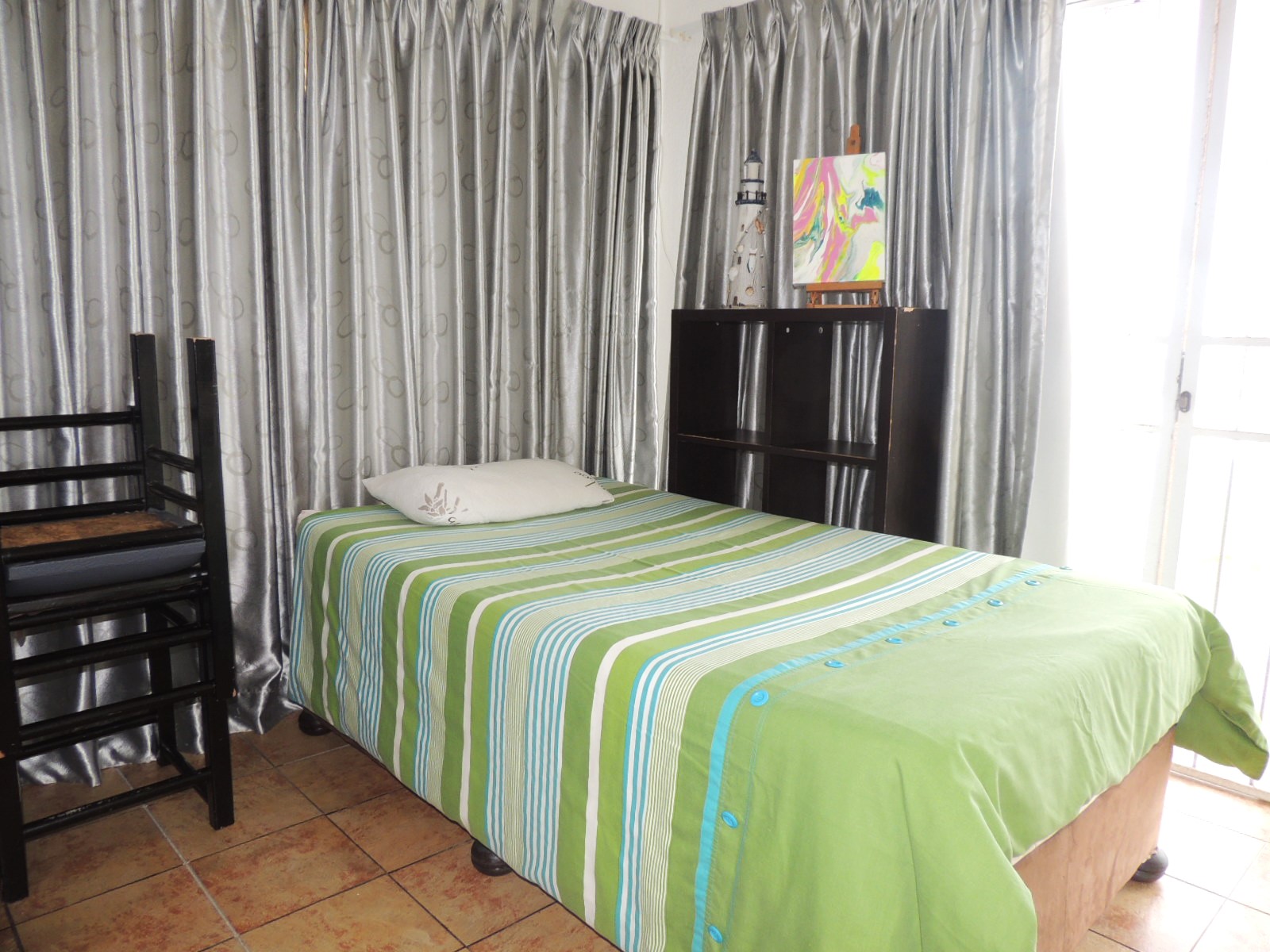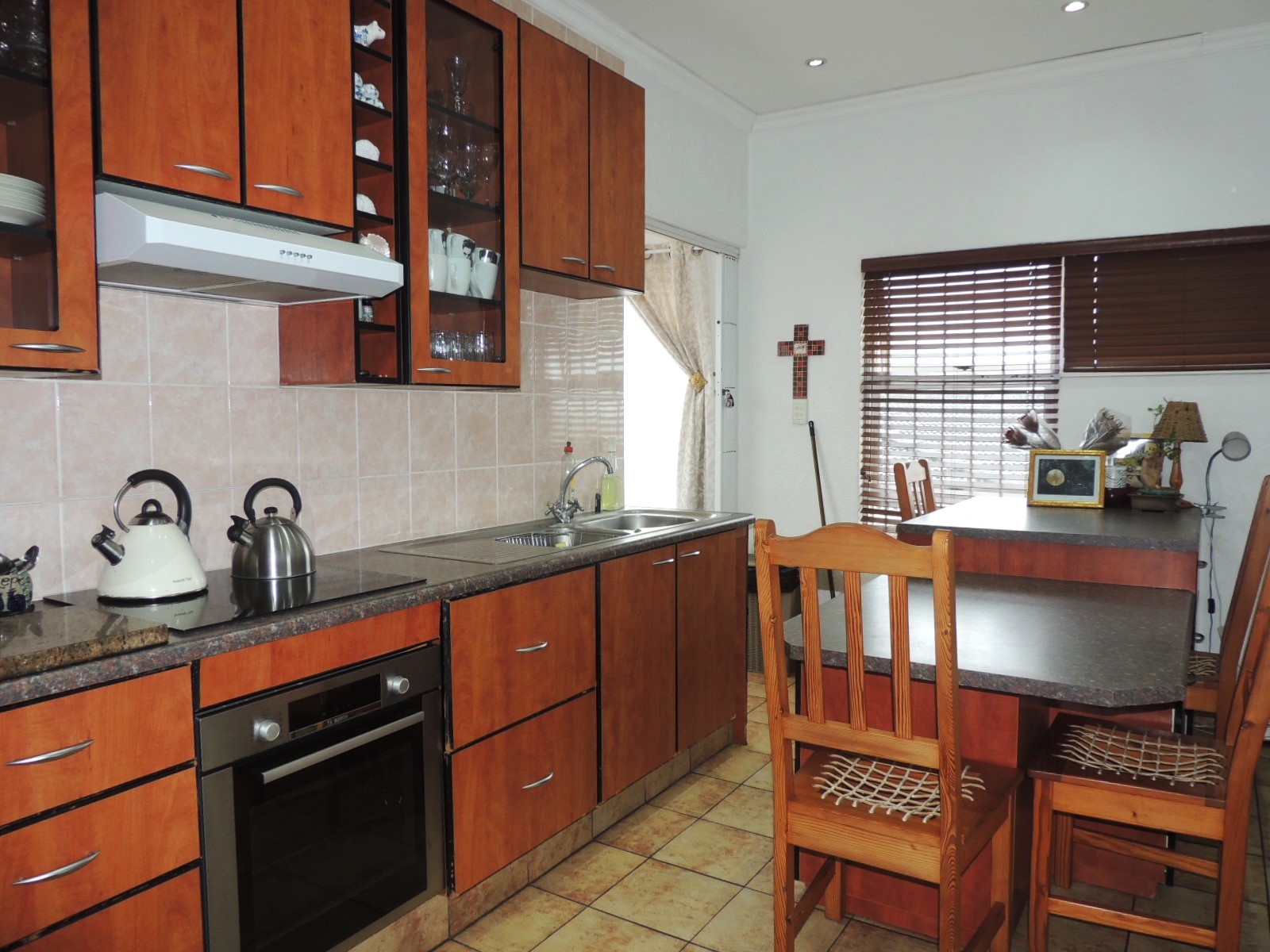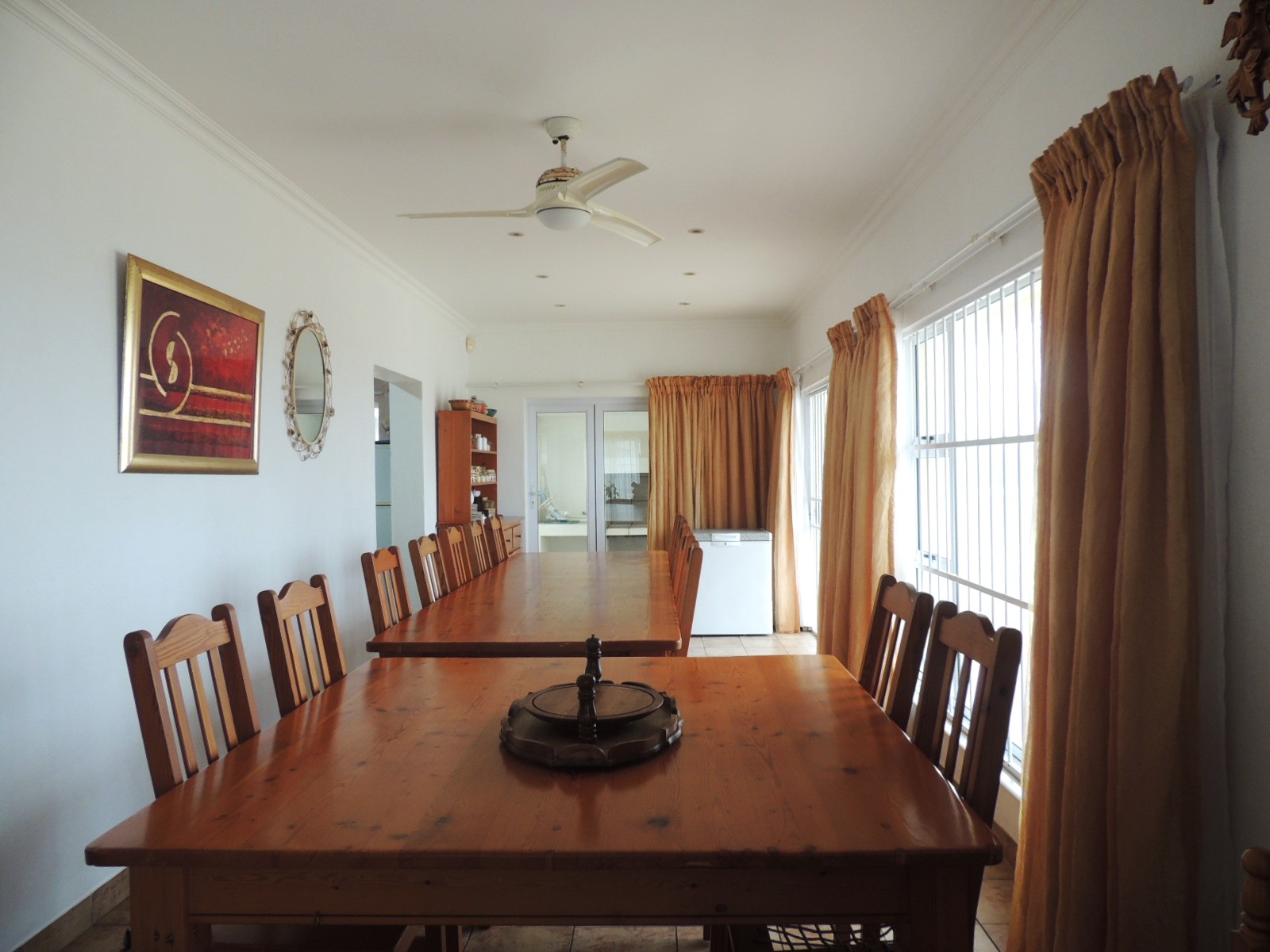 Outdoor entertainment area with a built-in braai, swimming pool, and a kiddies slide.