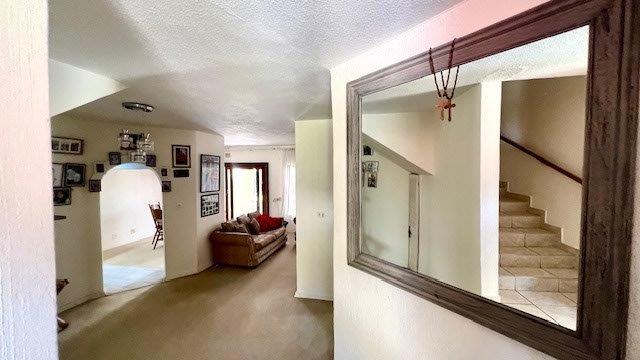 there is a single garage that has been tilled out and has been fitted with a stacker door leading into the back of the kitchen.