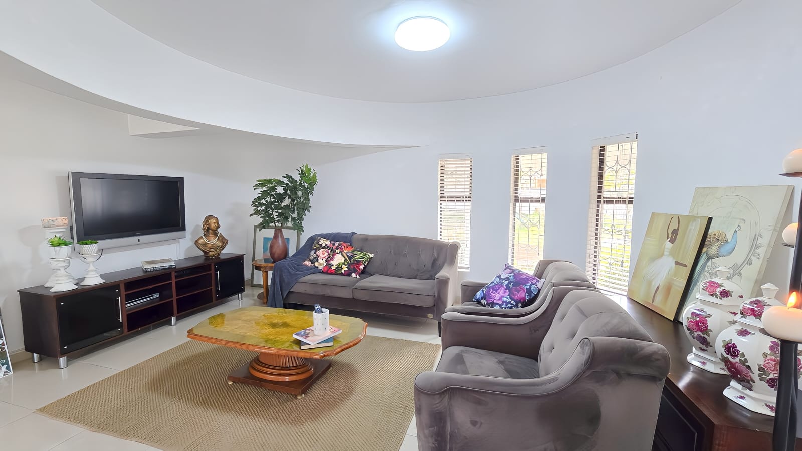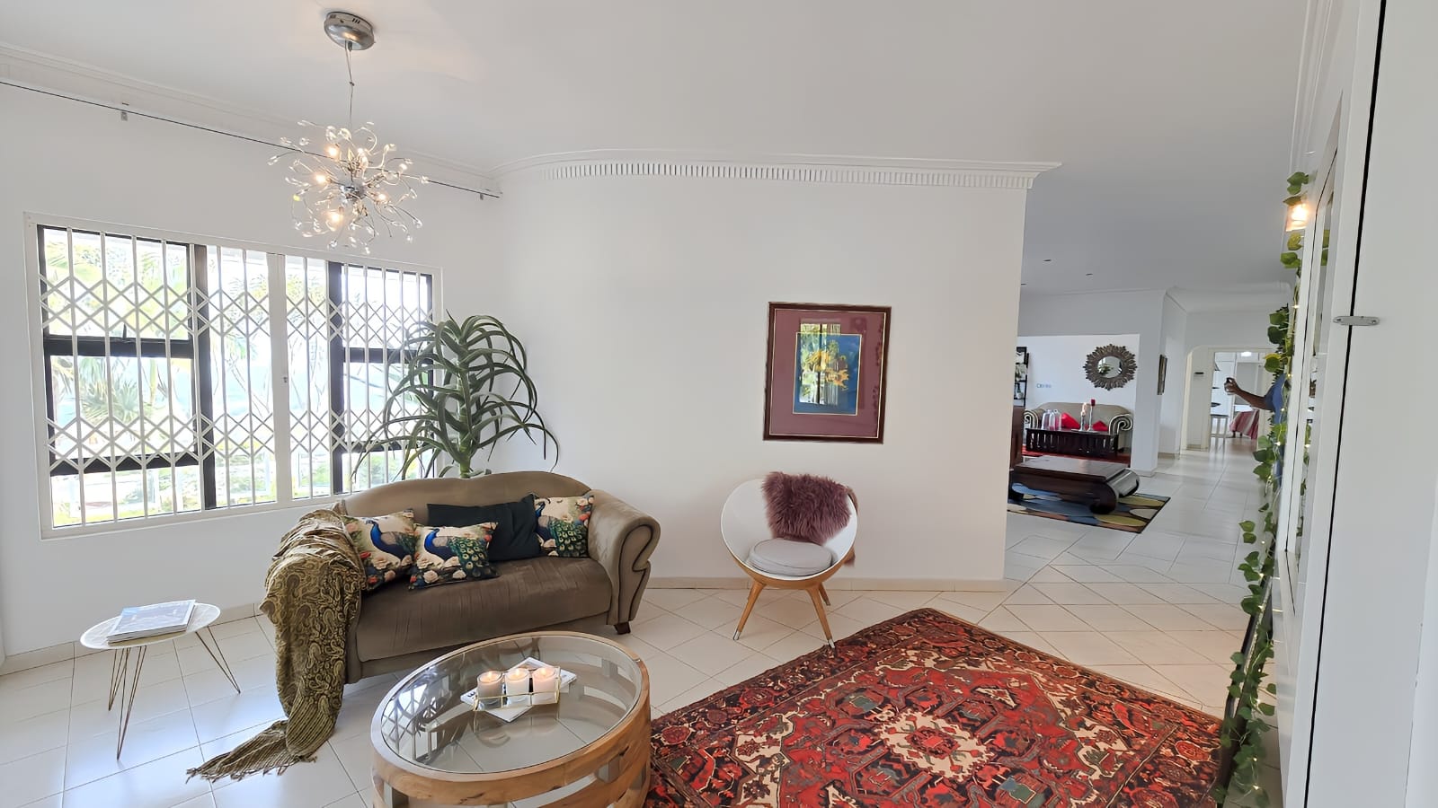 From the moment you step through the grand entrance, you’ll be captivated by breathtaking architectural elements. The soaring beamed ceilings and a cascade of natural light through the abundance of windows create an atmosphere of elegance and tranquility.