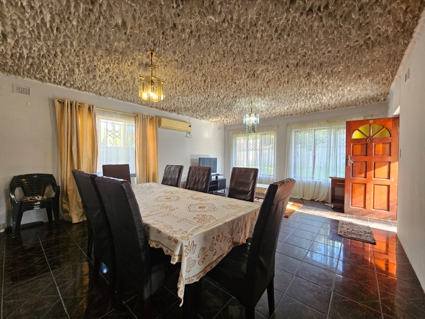Welcome to this spacious 3 bedroom house in a sought after neighborhood. This beautiful home has 3 bedrooms, one with an en suite and the other 2 bedrooms share a spacious bathroom with a bath tub and toilet with an extra guest toilet. The kitchen is fully kitted with extra cupboard space for all your storage requirements. The passage has linen cupboards in close proximity to the bathrooms for easy access. The lounge and dining is large and airy and the ceiling boasts a unique design. the property has a 1 bedroom flatlet which has a lounge and kitchen with a bathroom. The garage is turned into a studio apartment. This house has two extra rental incomes which is ideal for an investment property or for extended family .