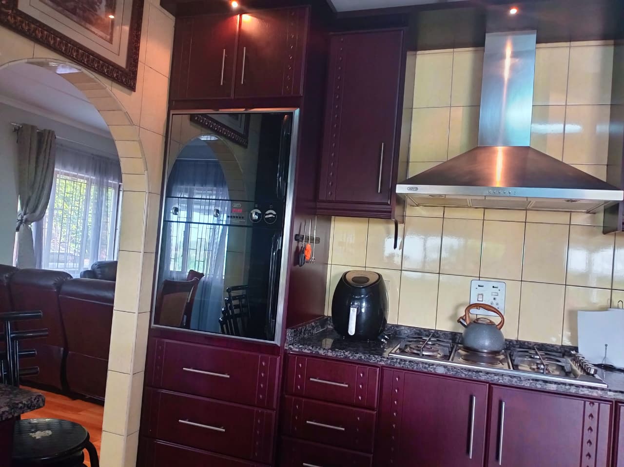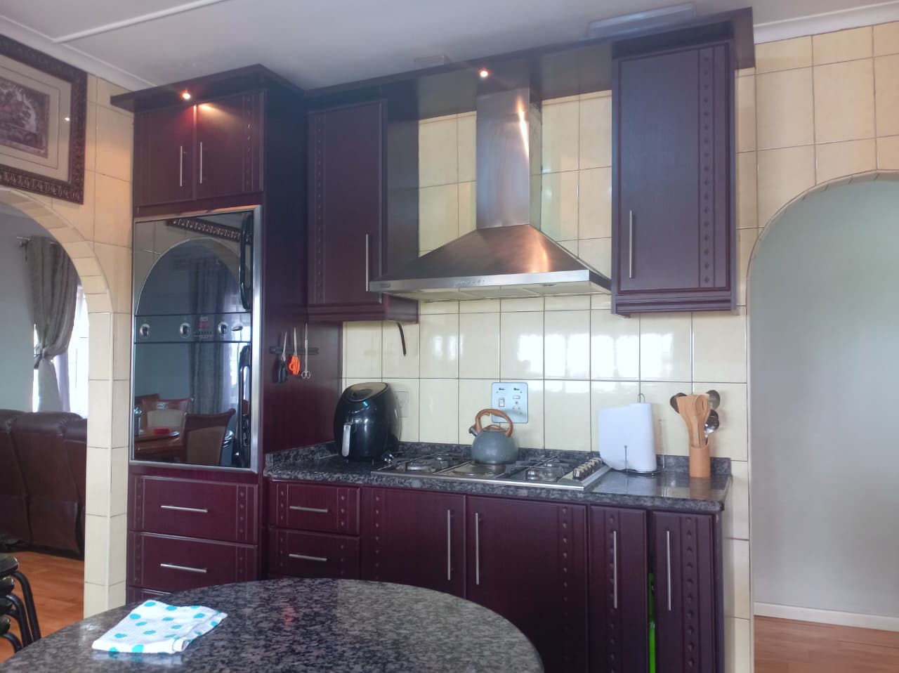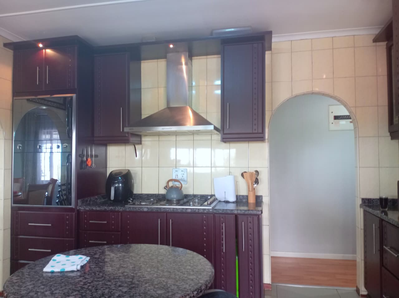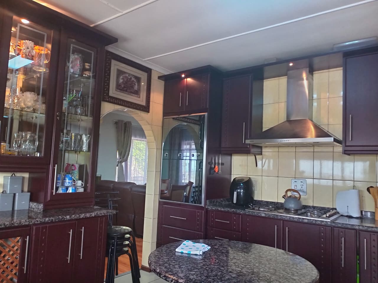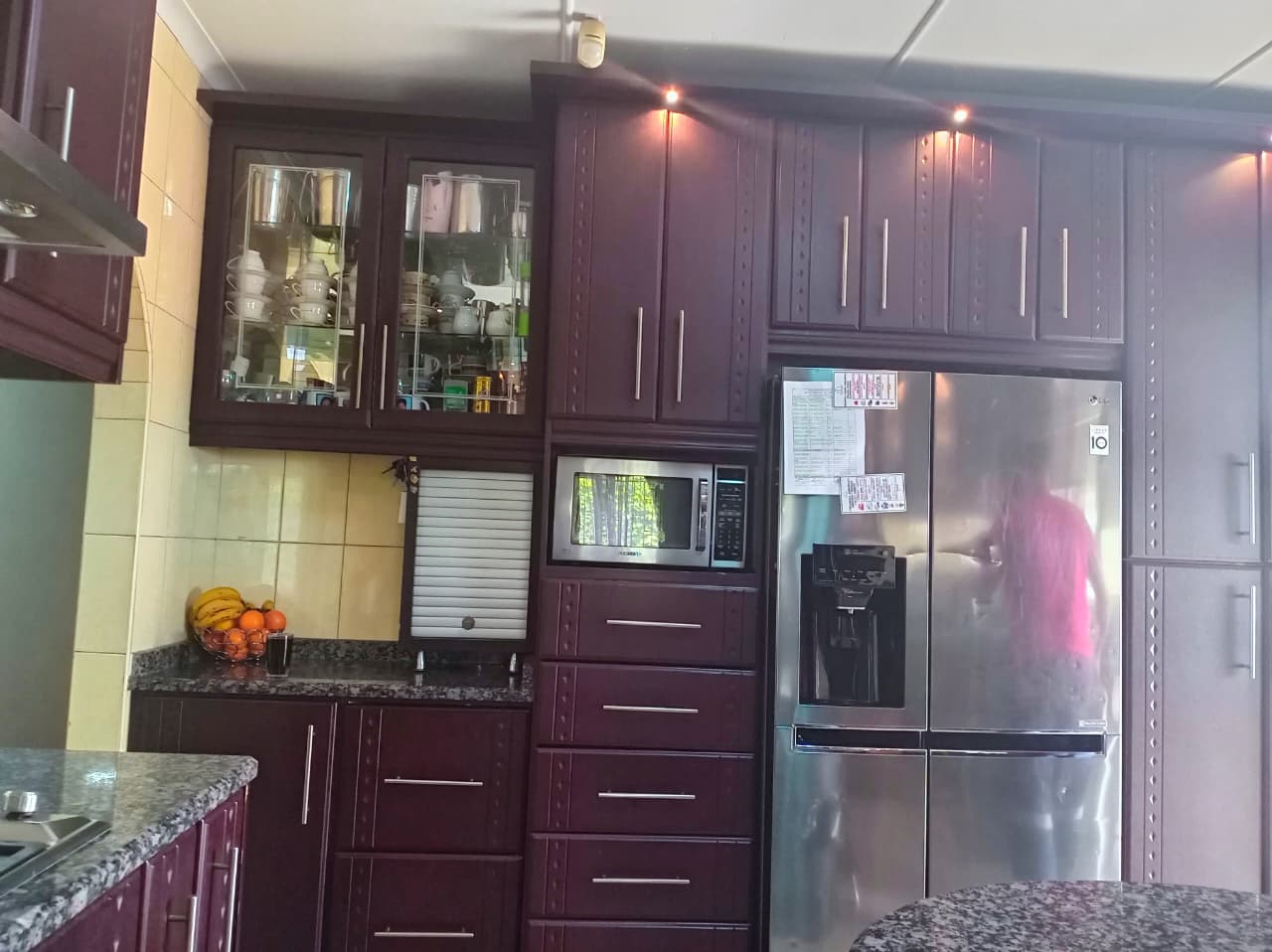 This stunning home features a spacious 3 bedrooms with built in cupboards , master bedroom has grey and white a spacious sliding built in with wardrobes en suite with shower. Family bathroom has bath , basin and shower , separate with toilet ,As you step inside enter by a double glass door with burglar bars you are greeted by open plan bright lounge and dining area has hand wash basin , leads to welcoming kitchen that every chef may dream about fitted with an eye level oven , 5 burner gas stove and all other kitchen appliances . Single garage , Braai area , fish pond .