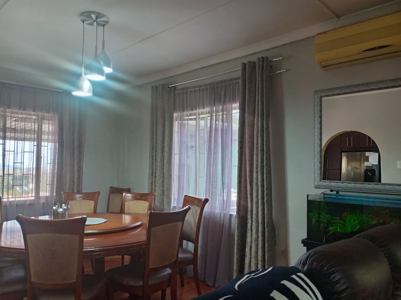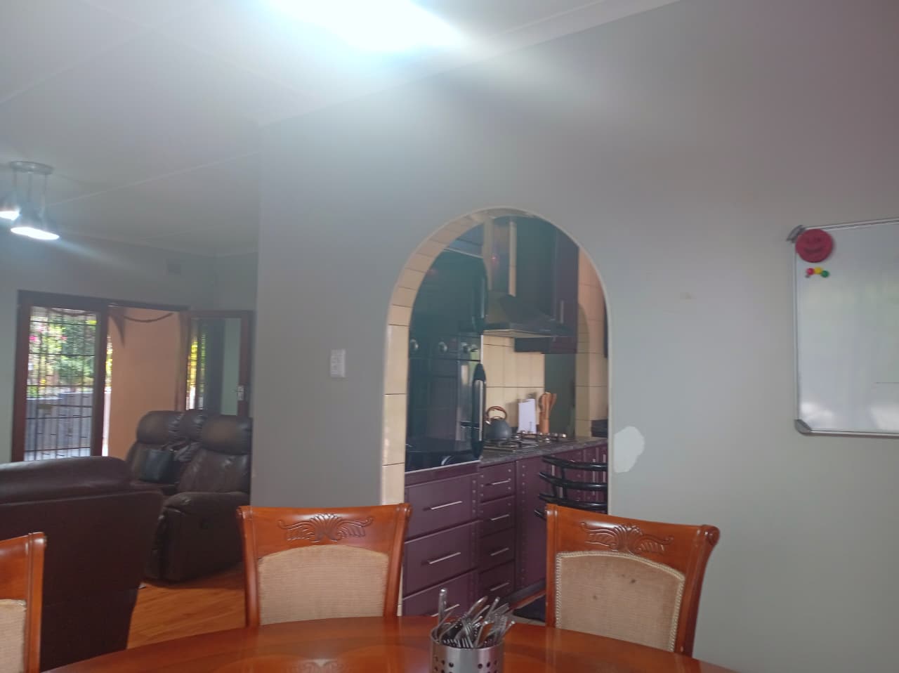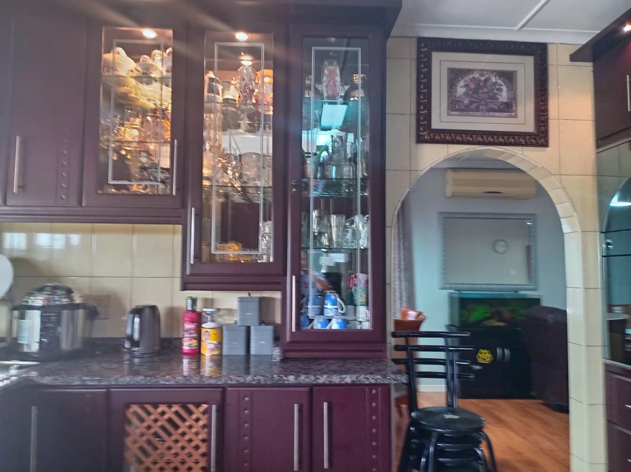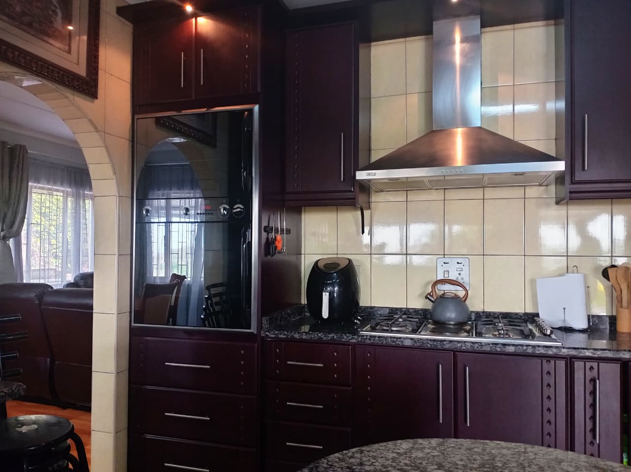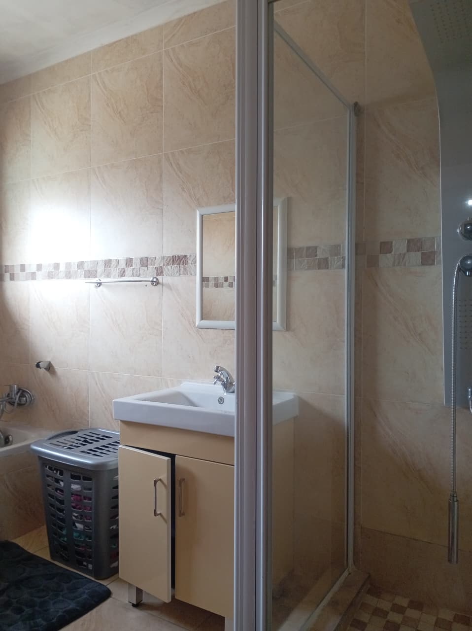 This stunning home features a spacious 3 bedrooms with built in cupboards , master bedroom has grey and white a spacious sliding built in with wardrobes en suite with shower. Family bathroom has bath , basin and shower , separate with toilet ,As you step inside enter by a double glass door with burglar bars you are greeted by open plan bright lounge and dining area has hand wash basin , leads to welcoming kitchen that every chef may dream about fitted with an eye level oven , 5 burner gas stove and all other kitchen appliances . Single garage , Braai area , fish pond .