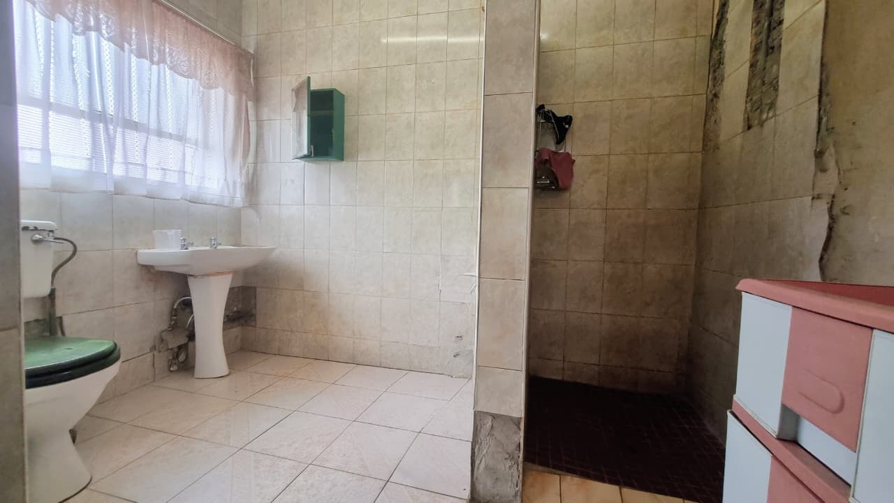 - The main bedroom boasts an en-suite bathroom with a shower, basin, and toilet - just waiting for new tiles to sparkle like new!