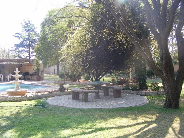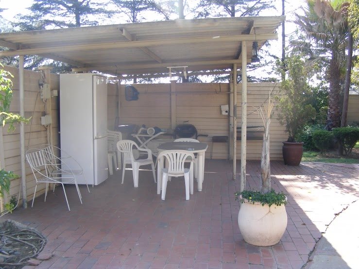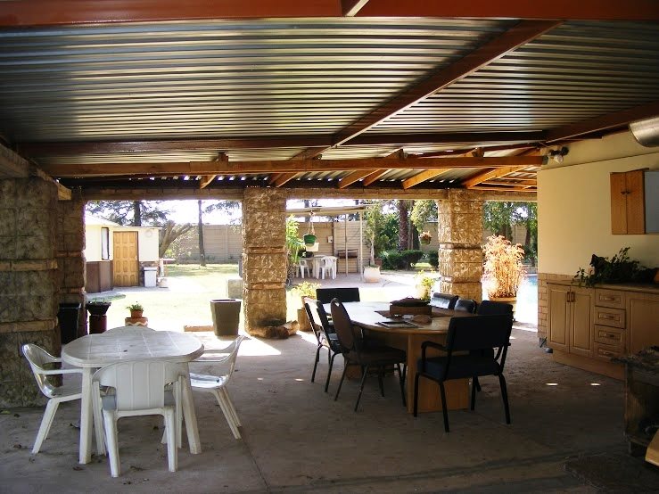 A big storeroom, chicken coops, 8 carports, 3 garages, sprinkler system, electric fence and a huge garden
