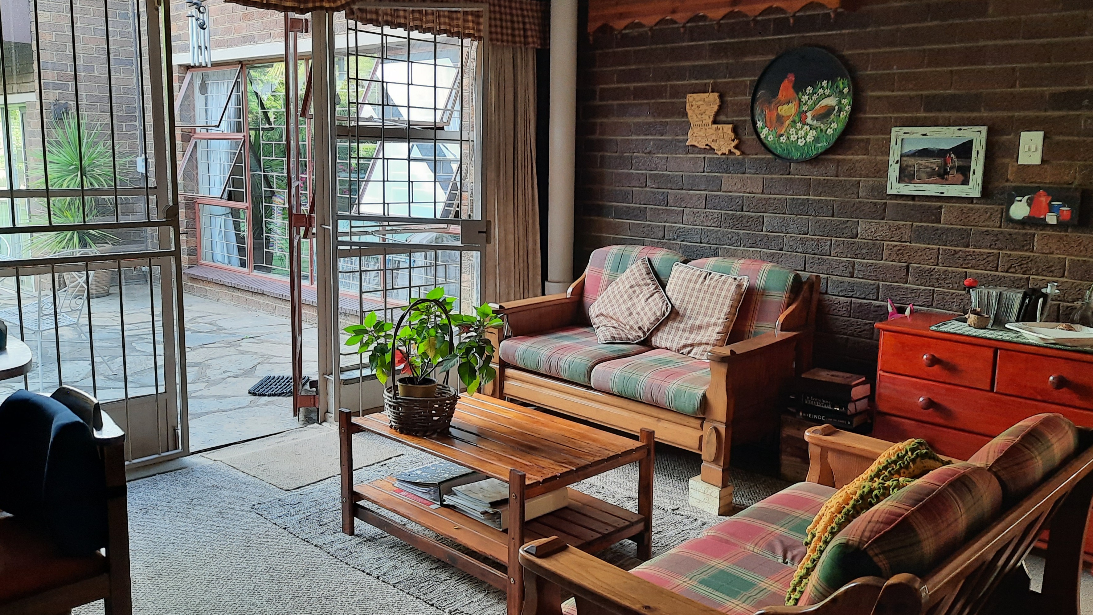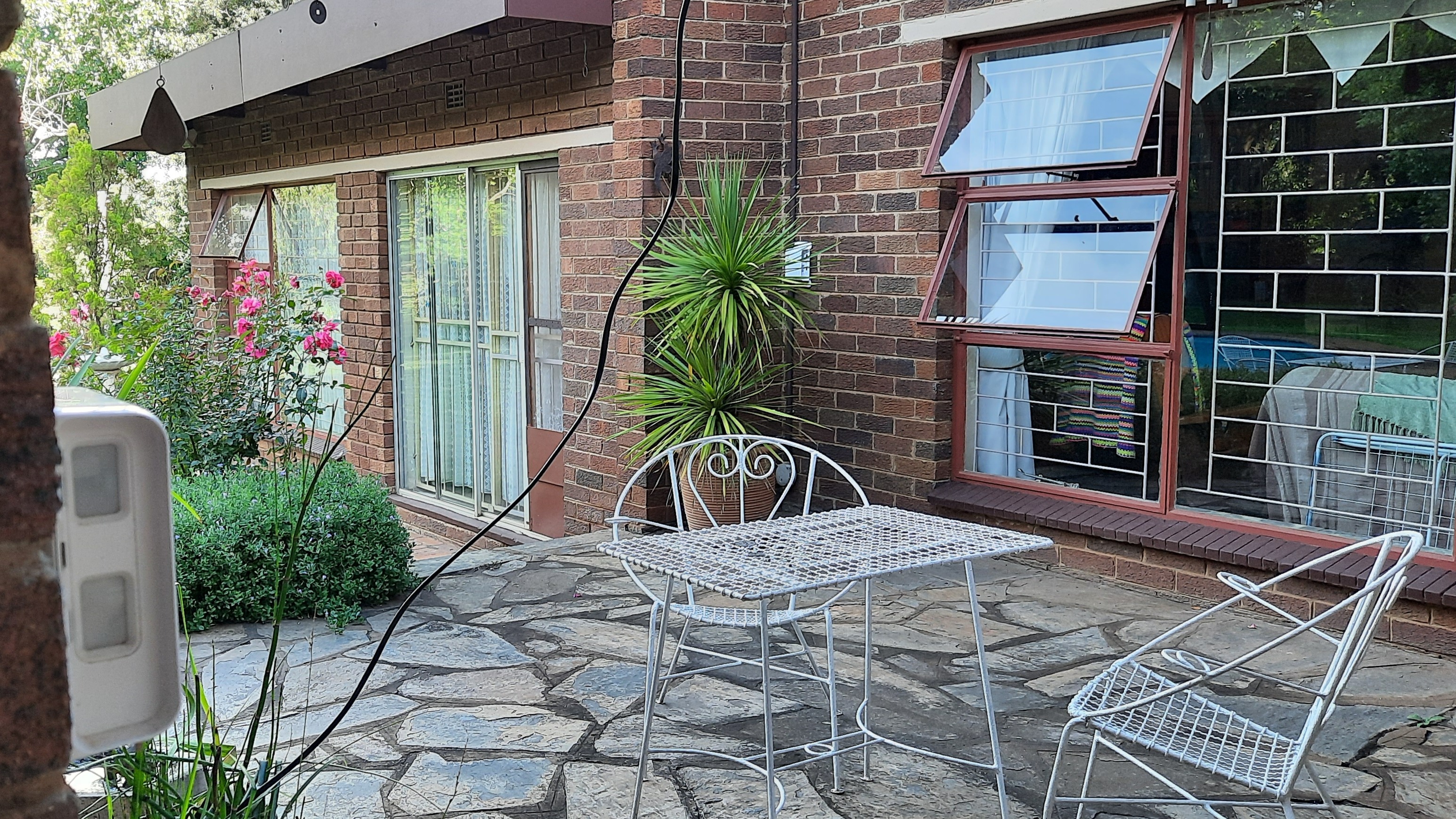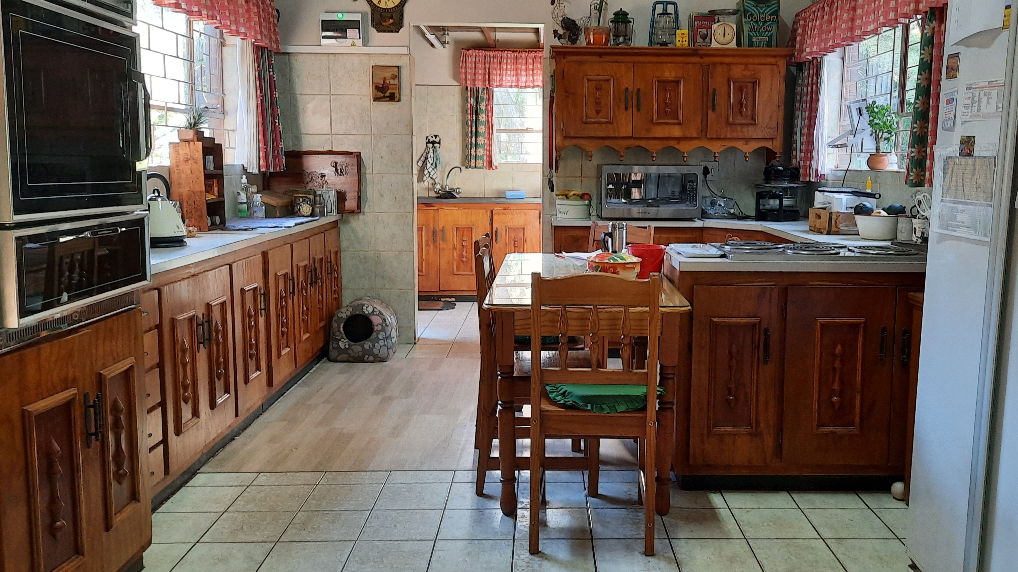 The main dwelling is a 3 bedroom house, 2 bathrooms(1 full and 1 en-suite), with shower, bath, basin and toilet. Dining room, sitting room, kitchen with wooden cupboards and kitchen nook. and laundry.
