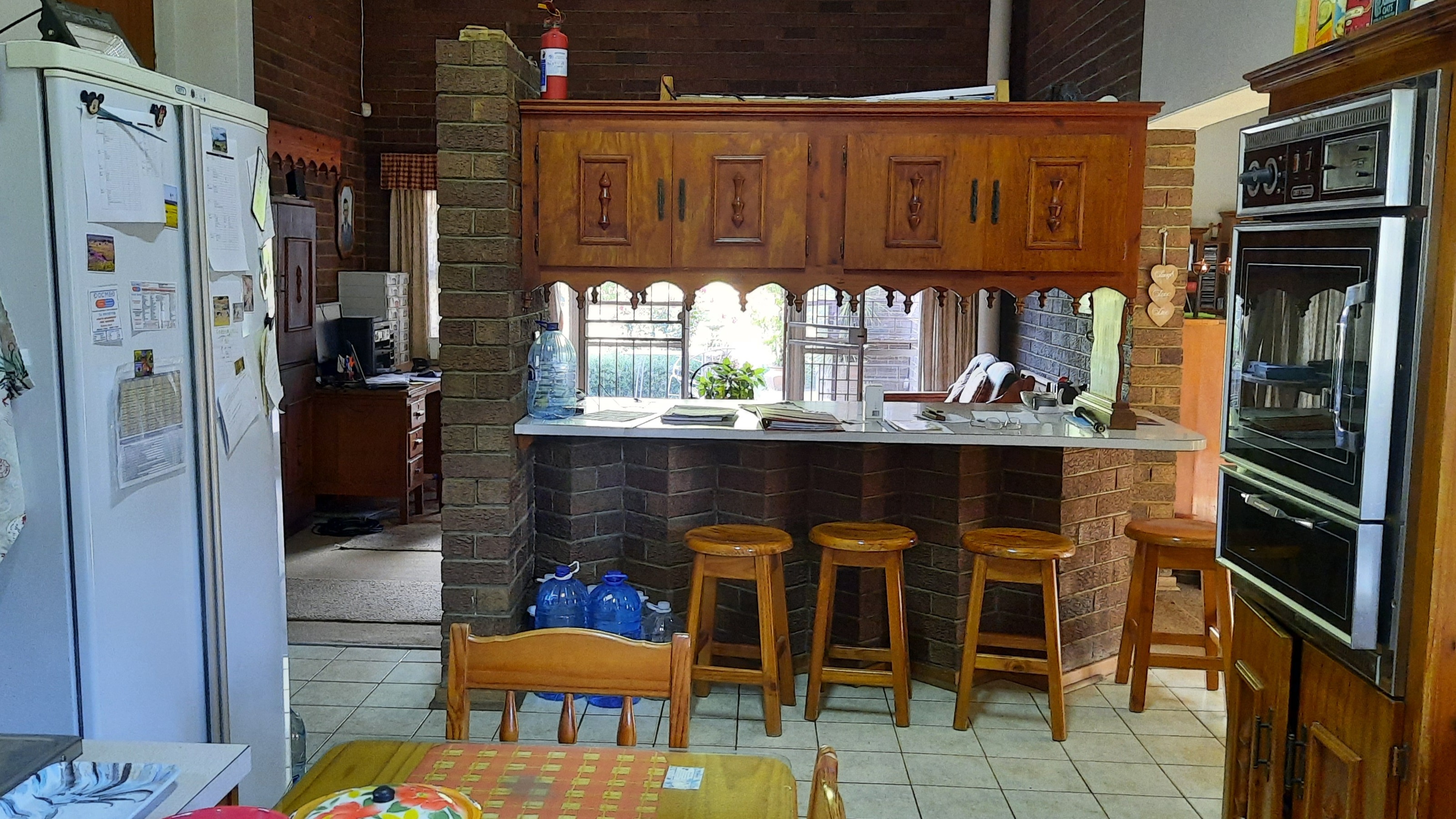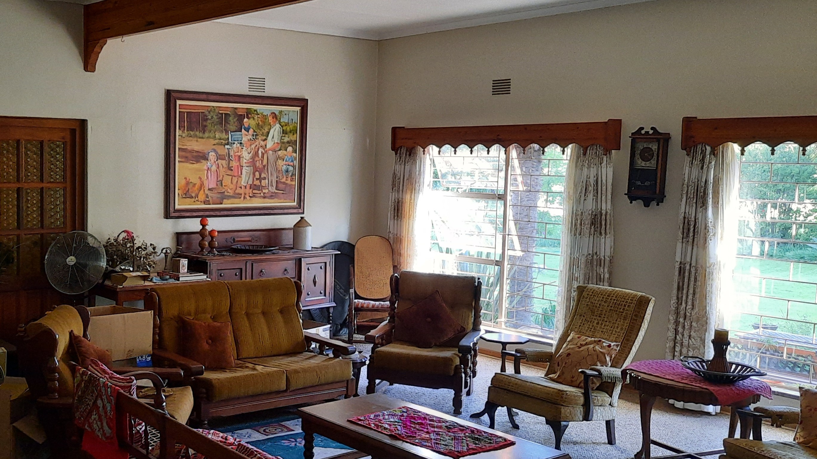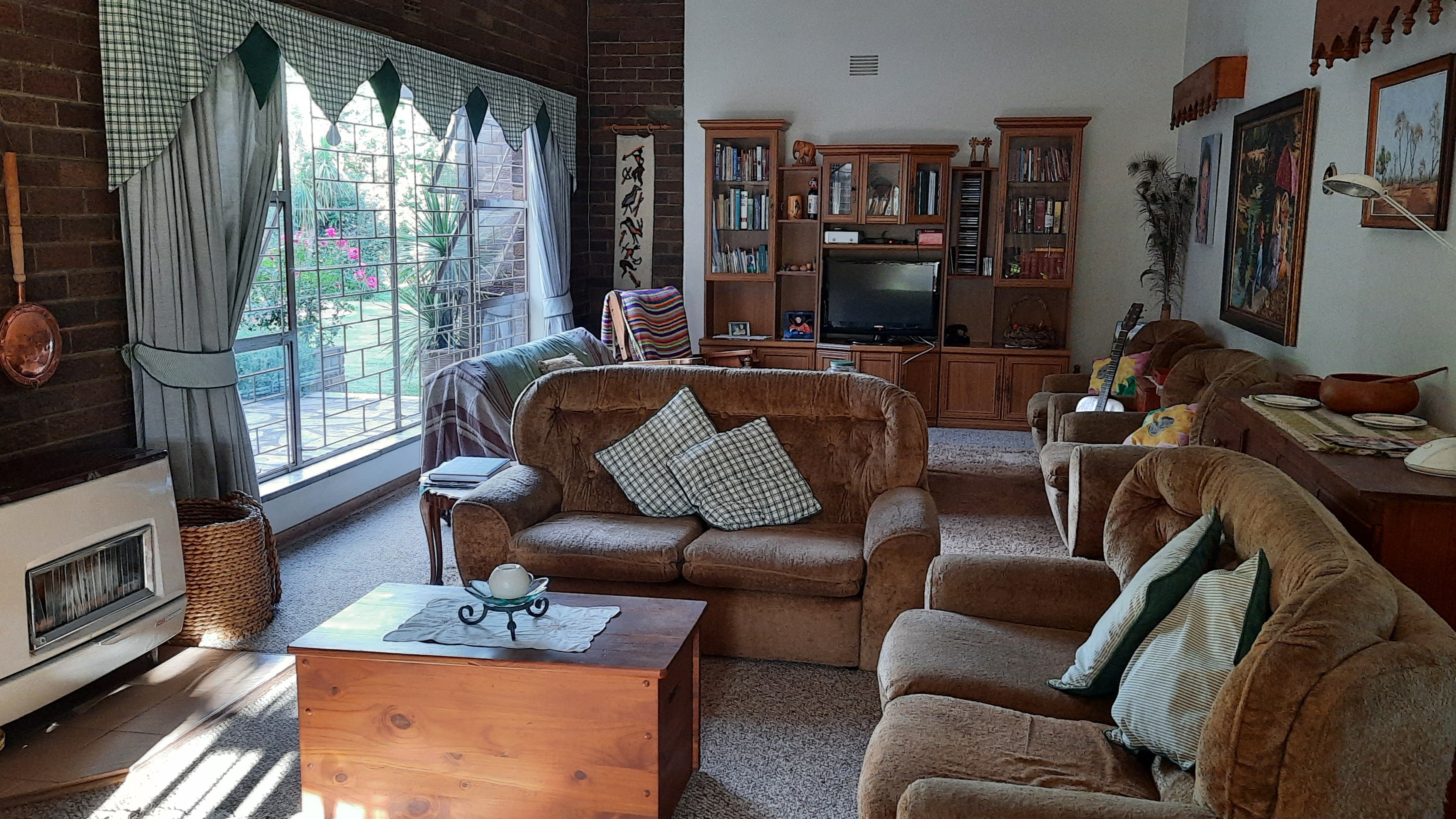 The main dwelling is a 3 bedroom house, 2 bathrooms(1 full and 1 en-suite), with shower, bath, basin and toilet. Dining room, sitting room, kitchen with wooden cupboards and kitchen nook. and laundry.
