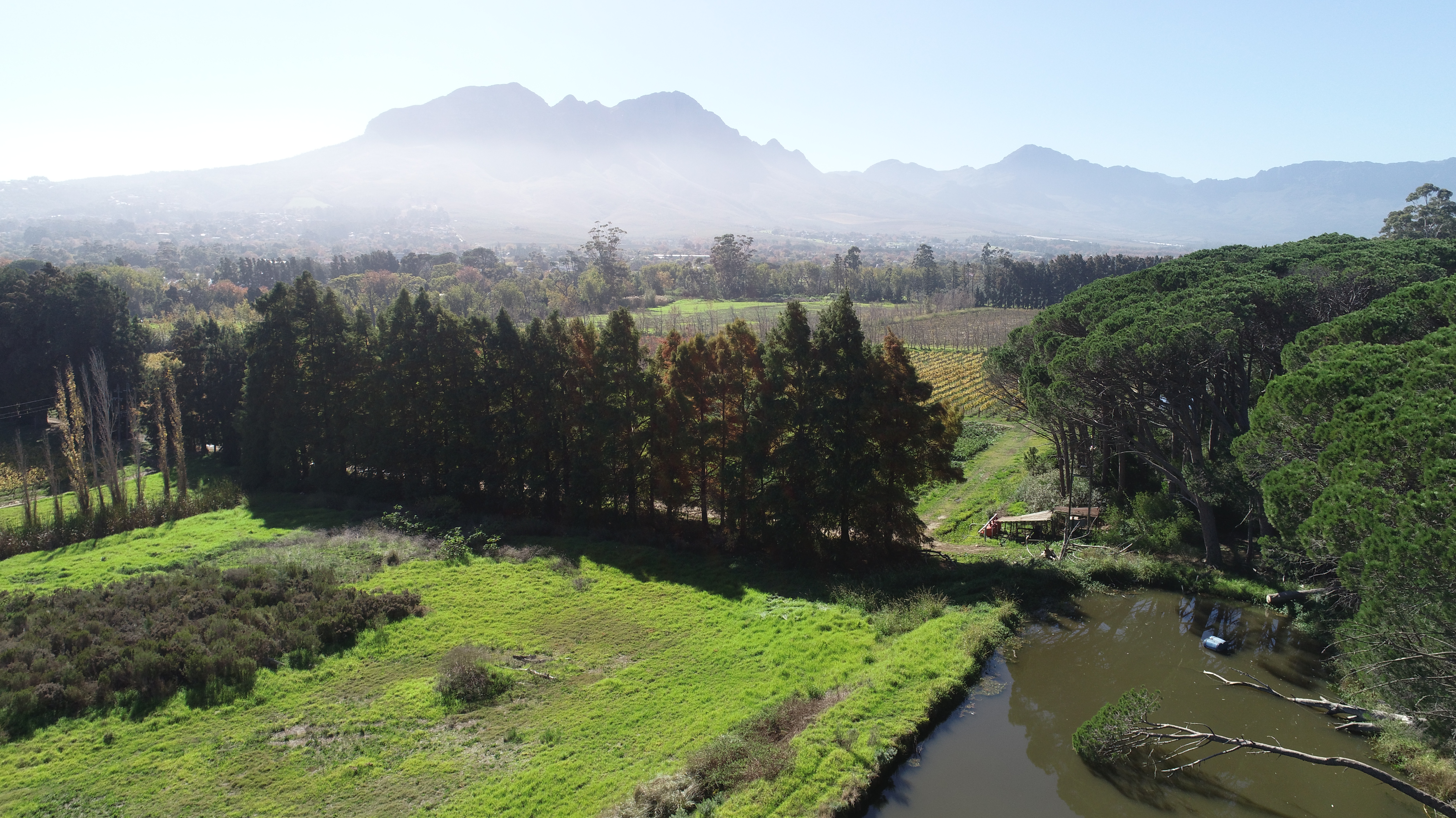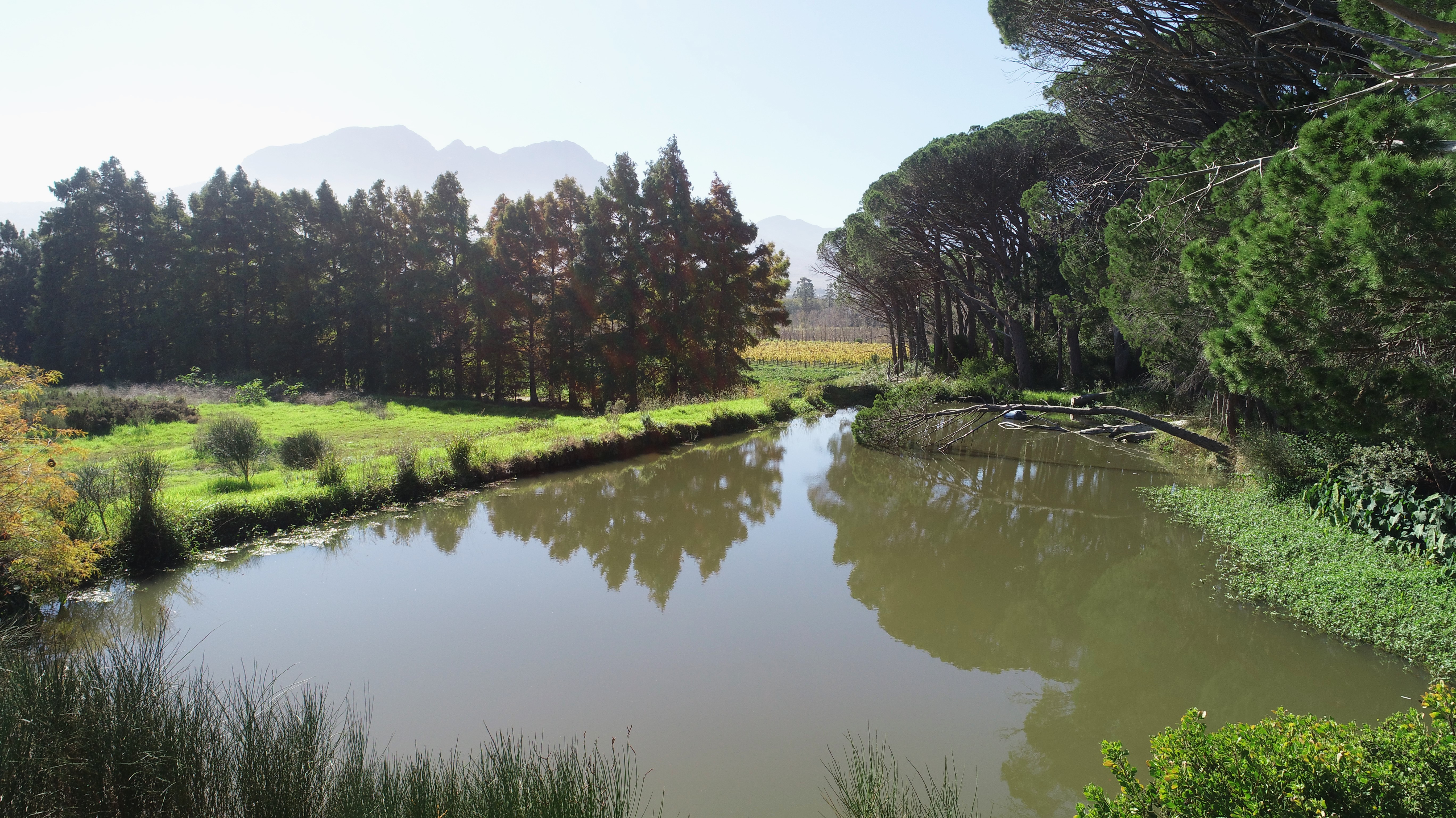 The natural beauty of the farm which lies along the foothills of the Schapenberg in the Helderberg valley is mesmerizing. Apart from the beauty of the age-old trees, vineyards, mountain ranges of Helderberg and the Hottentots Hollands mountains, the farm borders onto the unspoiled Lourens River with 2 water furrows crossing the farm. There are even glimpses of Table Mountain depending on where you are standing on the farm.