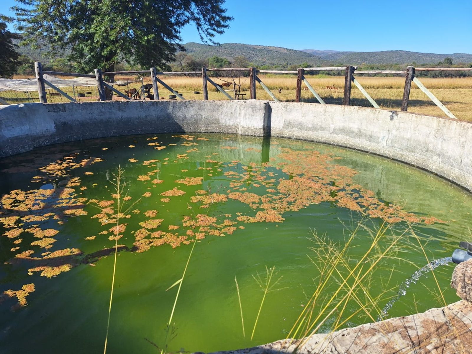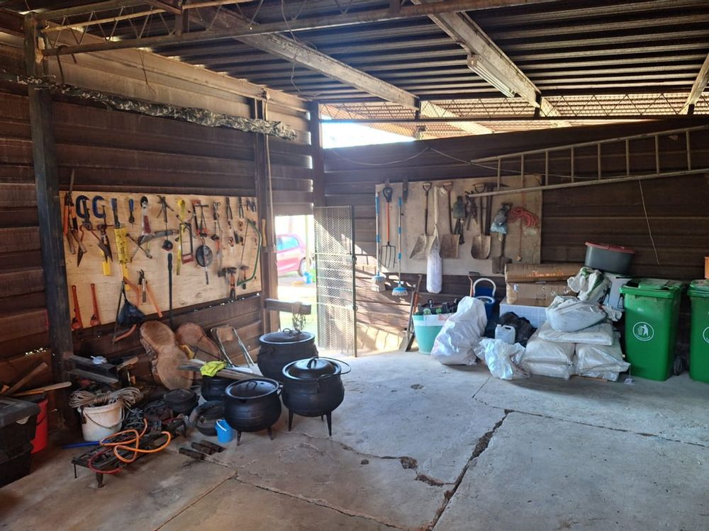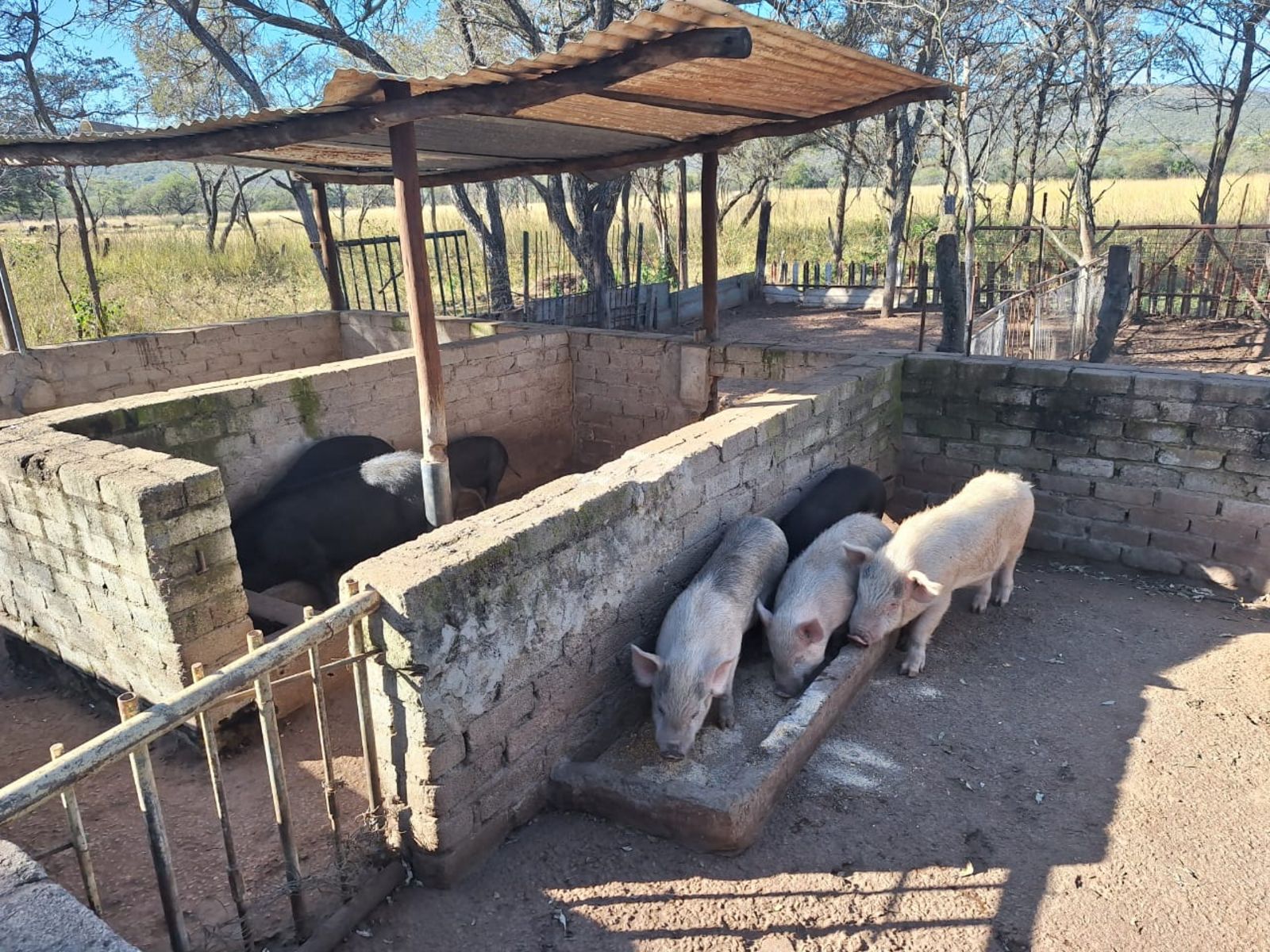 Water is plentiful, with two beautiful earth dams fed by a natural spring in the rainy season, a cement dam, a strong borehole, JoJo tank, and pressure pump ensuring reliable supply.