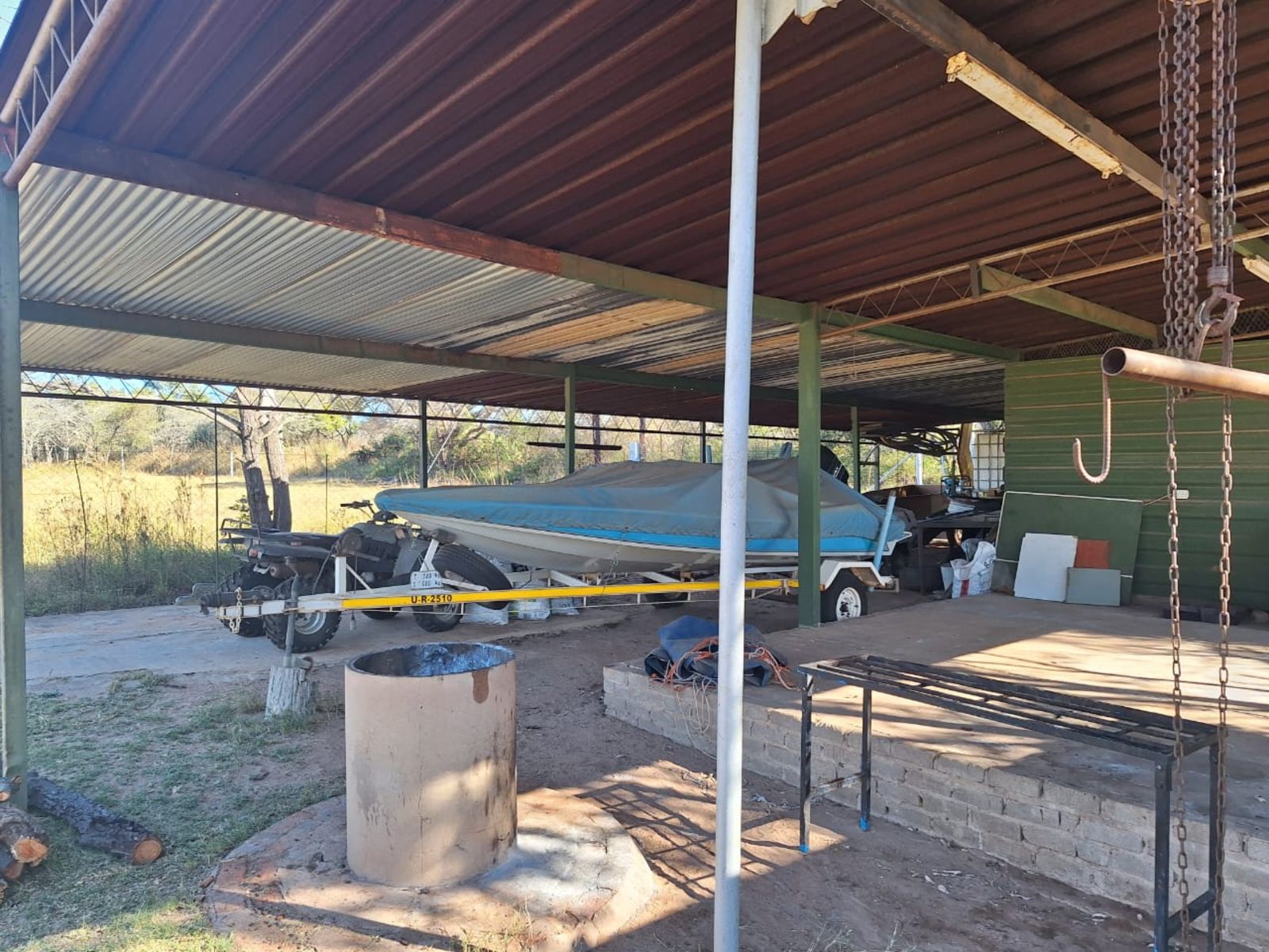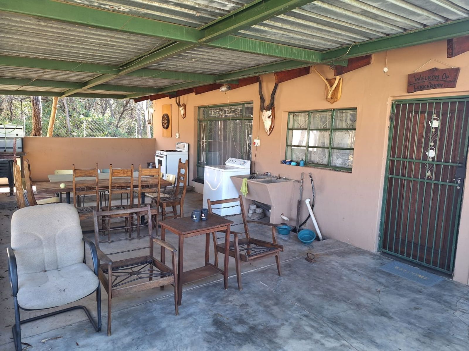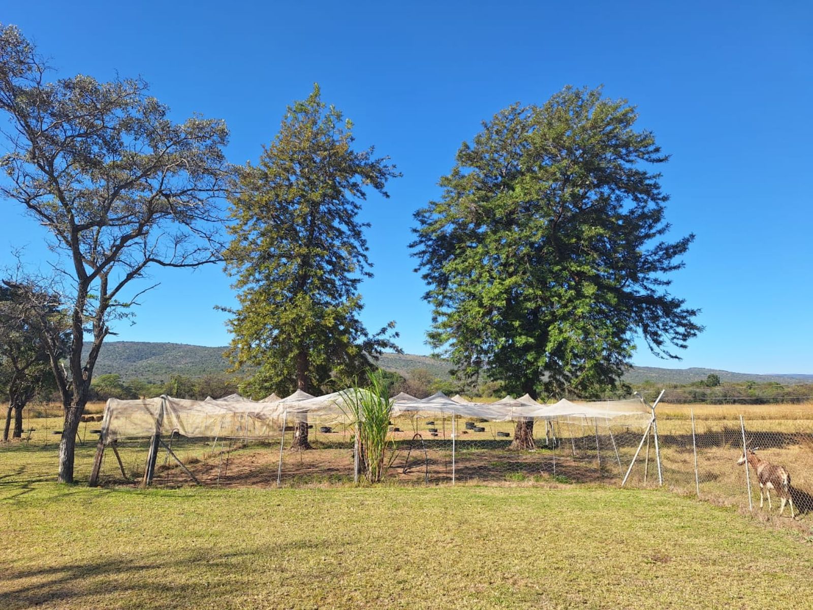 Water is plentiful, with two beautiful earth dams fed by a natural spring in the rainy season, a cement dam, a strong borehole, JoJo tank, and pressure pump ensuring reliable supply.