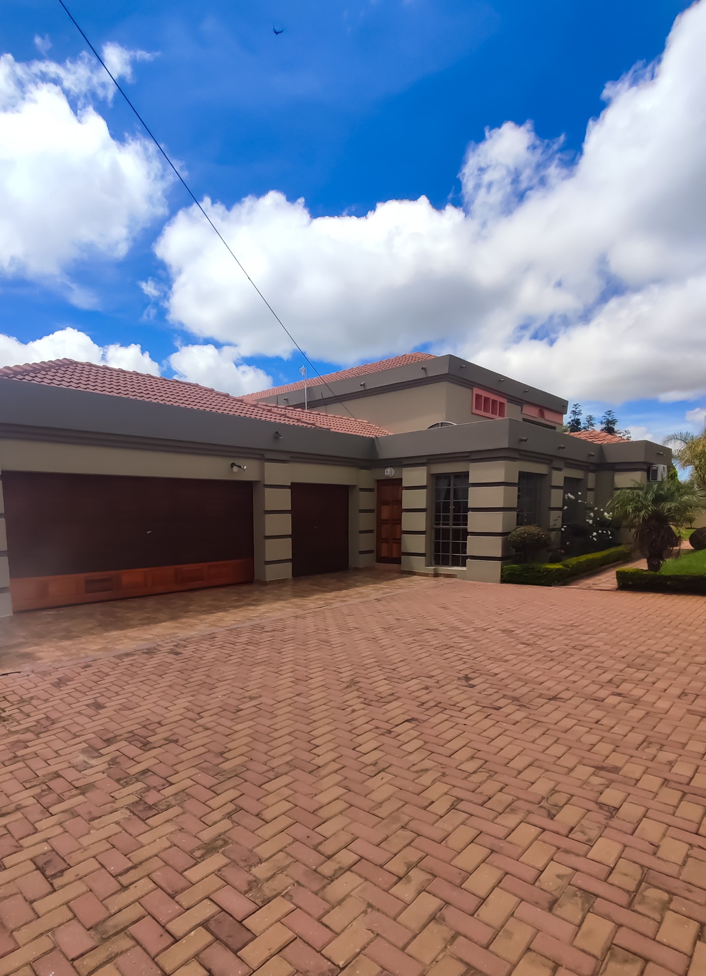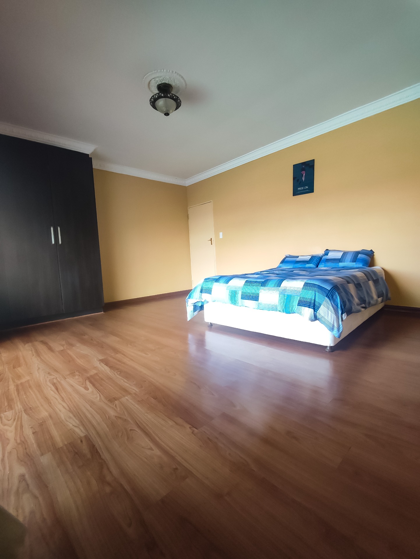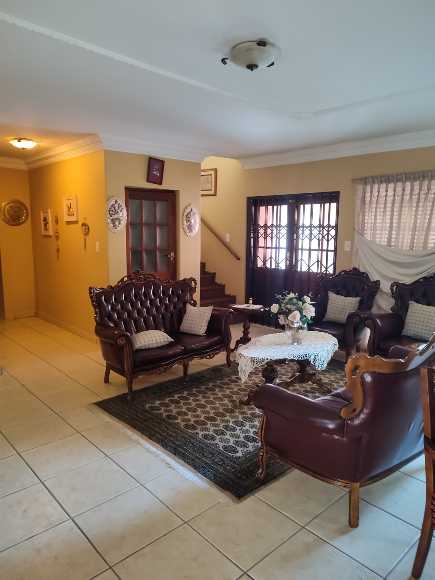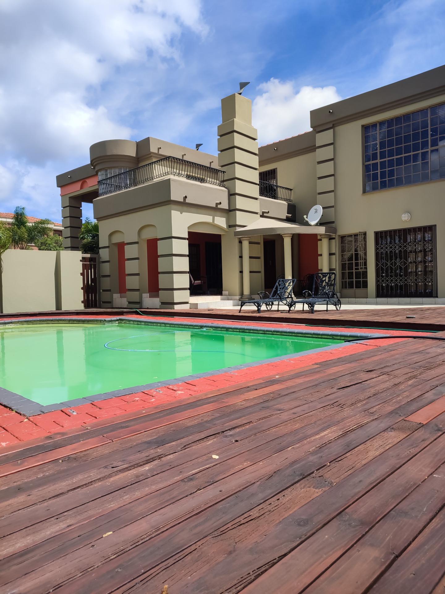This double story home is any big family’s dream! Upon entry you arrive in the lovely kitchen with granite tops, wooden cupboards, and a pantry, leading to the lounge and dining room, equipped with a fireplace. The spacious entertainment area with built in braai is perfect for entertaining, from the wooden deck you have a clear view of the swimming pool and garden.