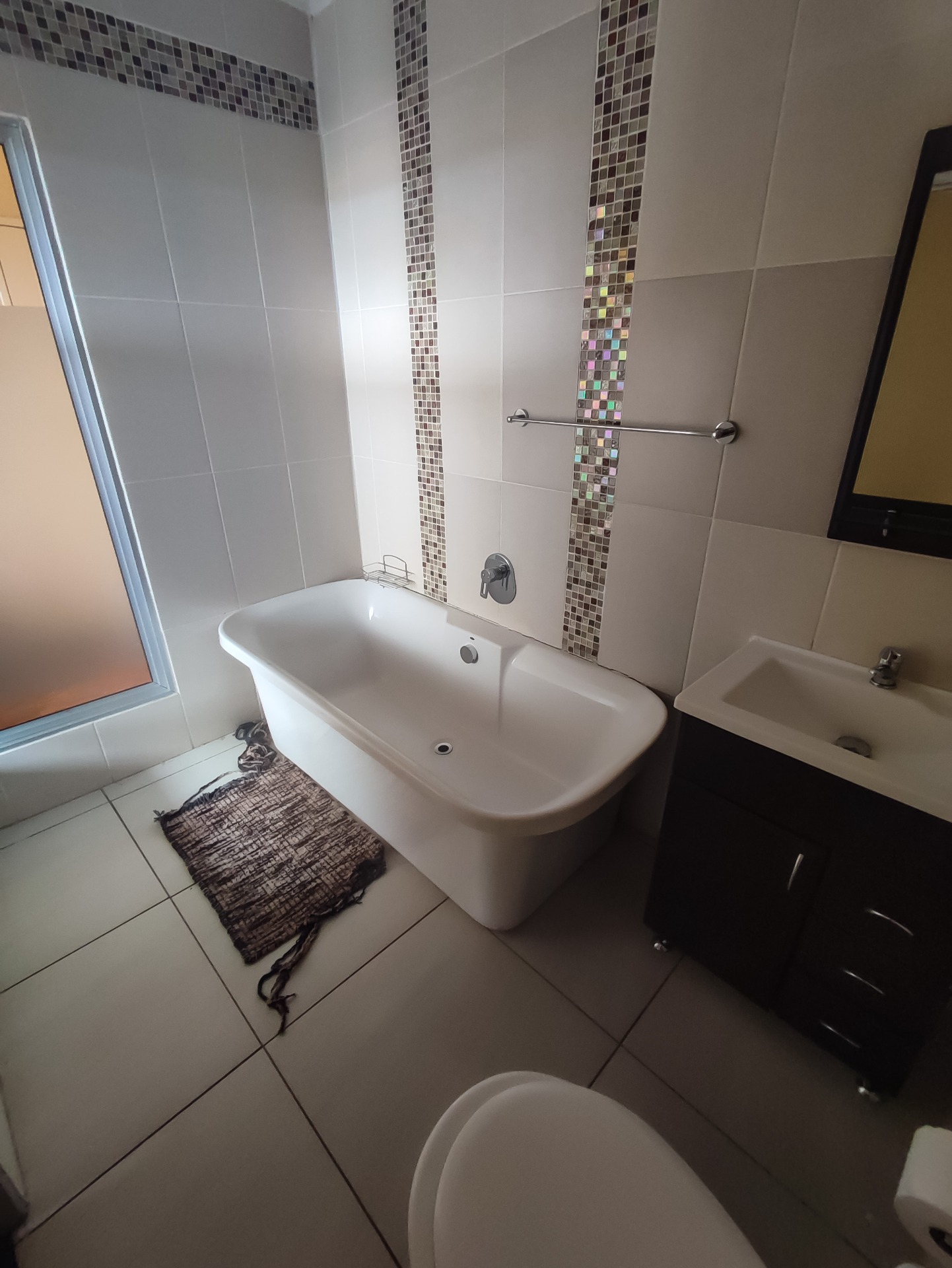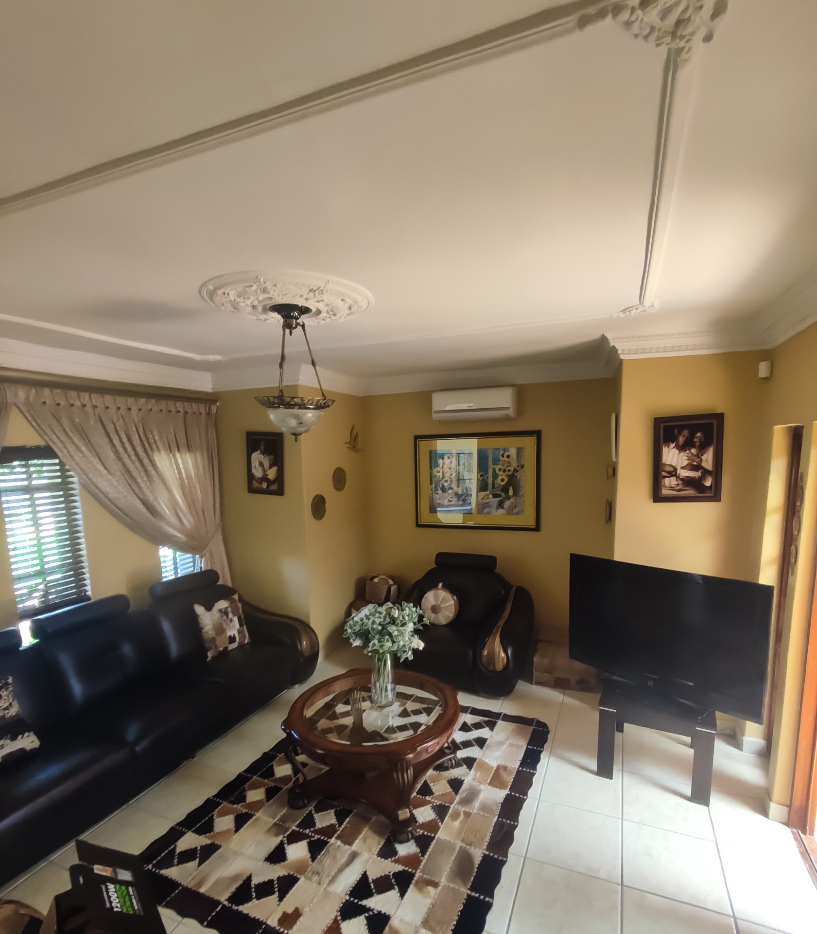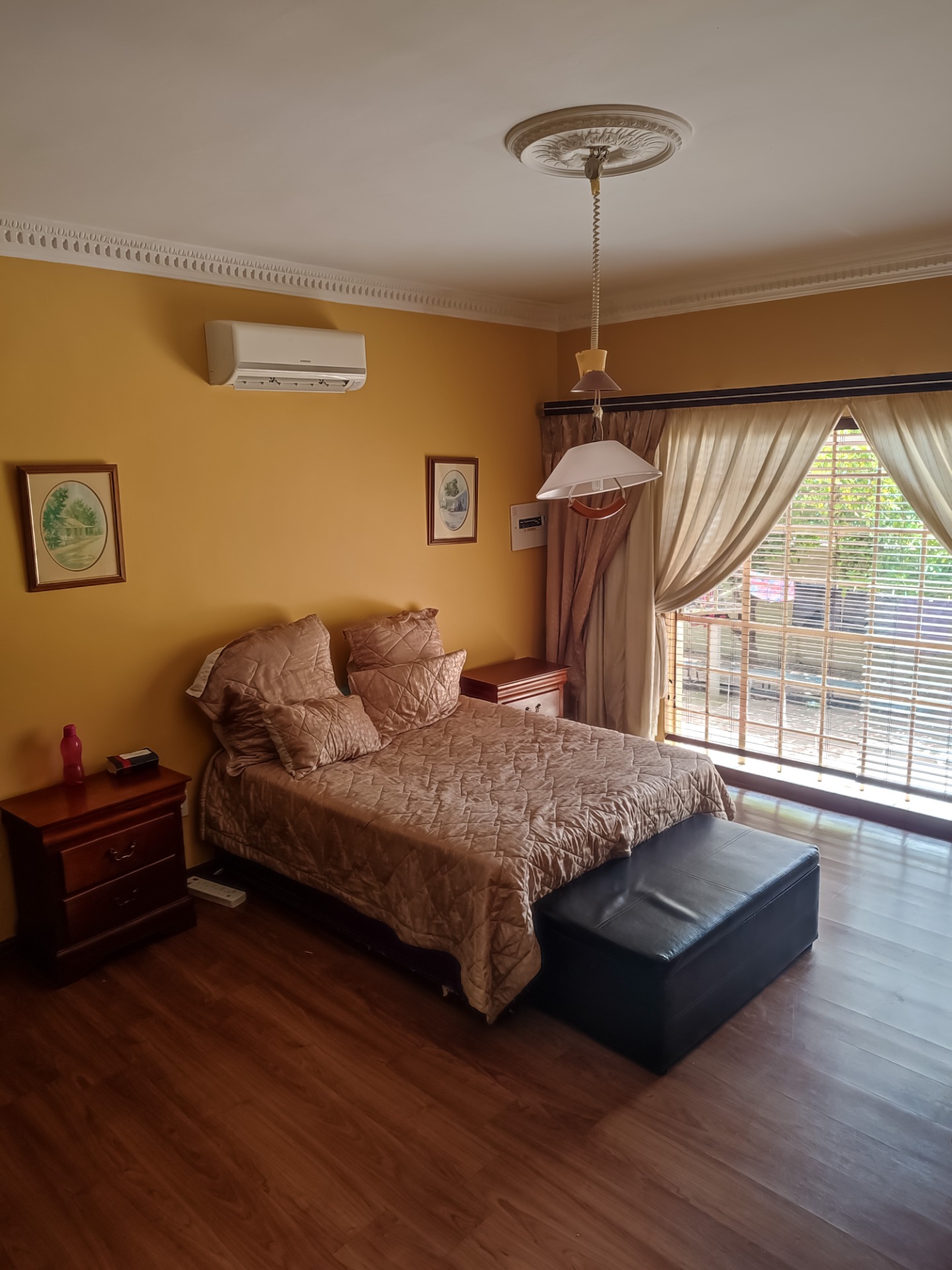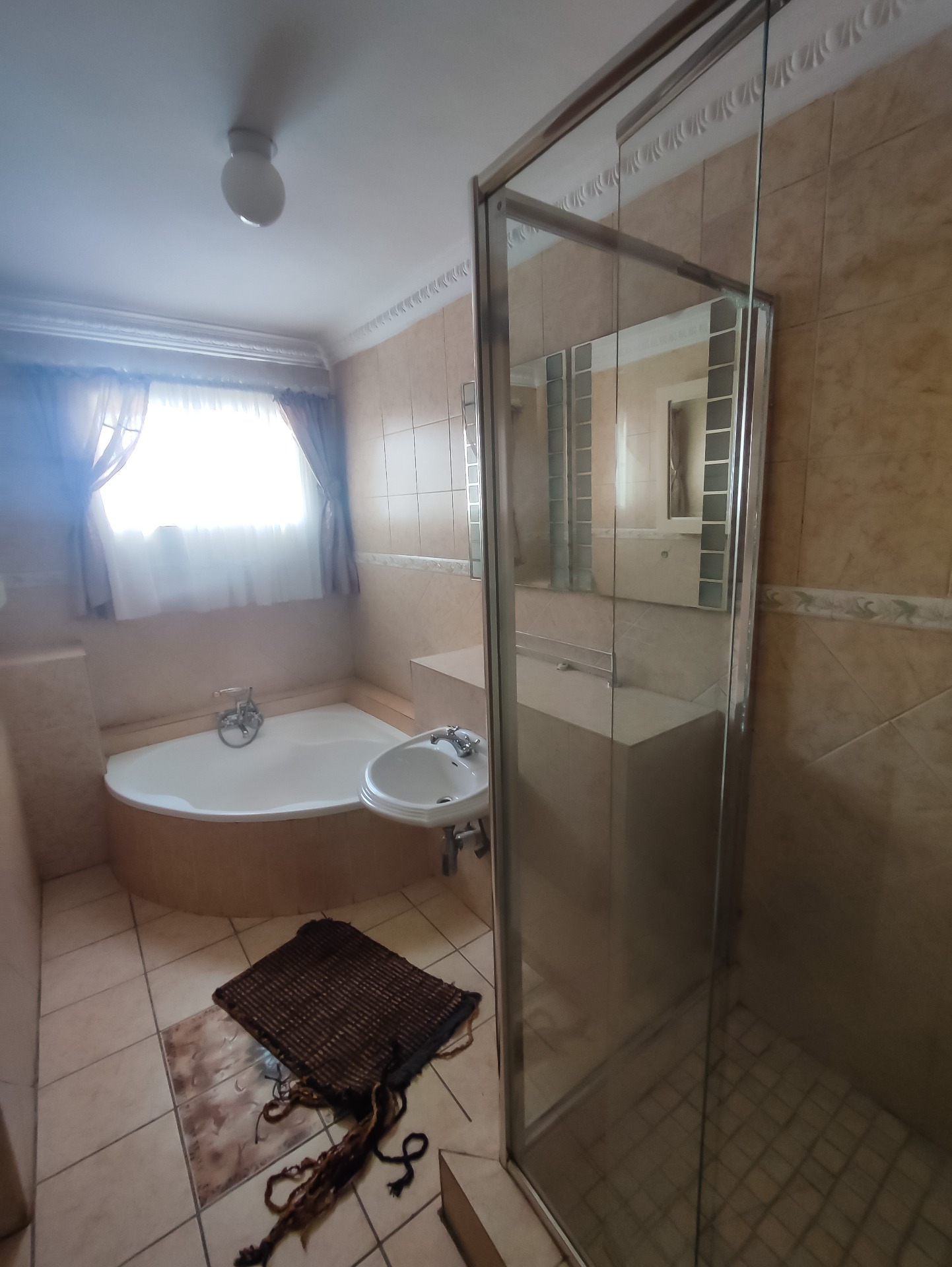 This double story home is any big family’s dream! Upon entry you arrive in the lovely kitchen with granite tops, wooden cupboards, and a pantry, leading to the lounge and dining room, equipped with a fireplace. The spacious entertainment area with built in braai is perfect for entertaining, from the wooden deck you have a clear view of the swimming pool and garden.