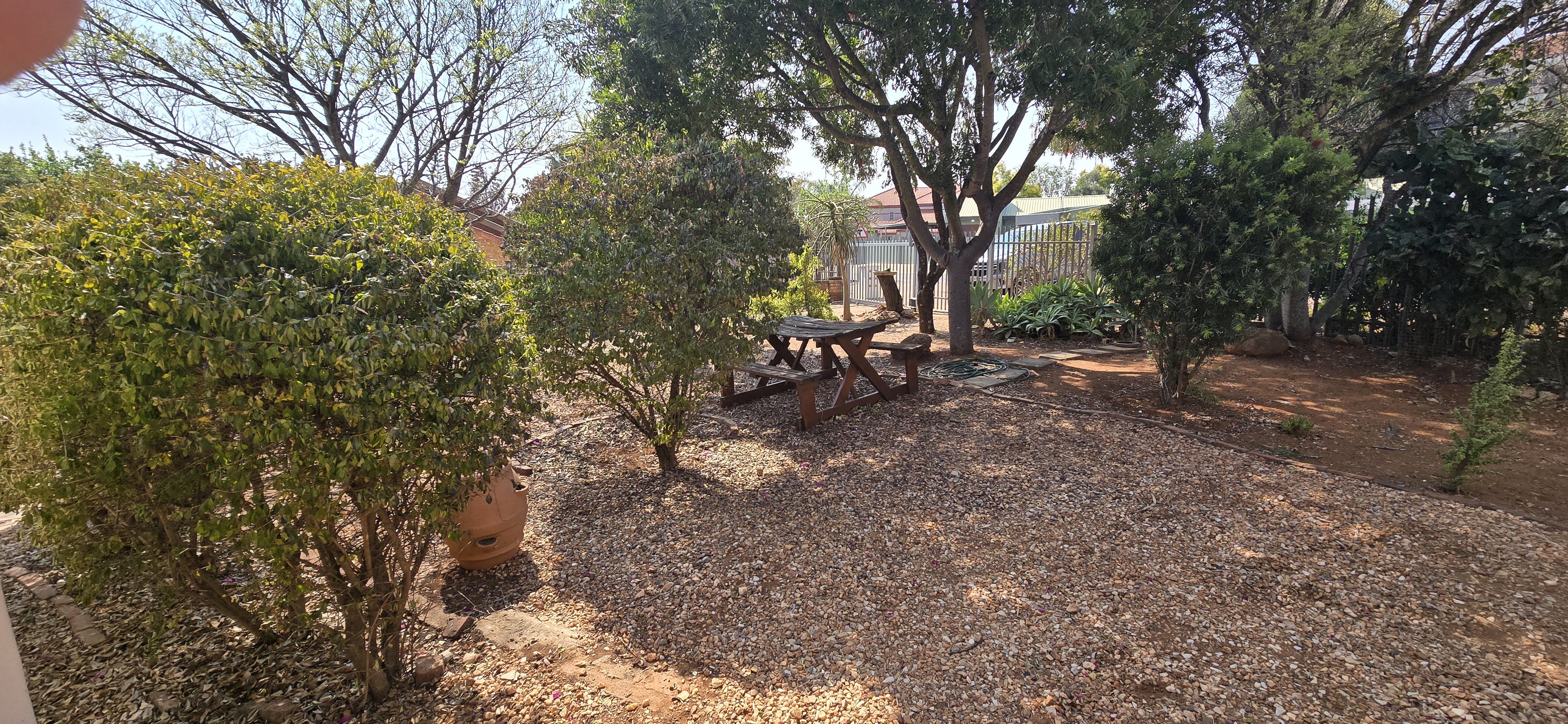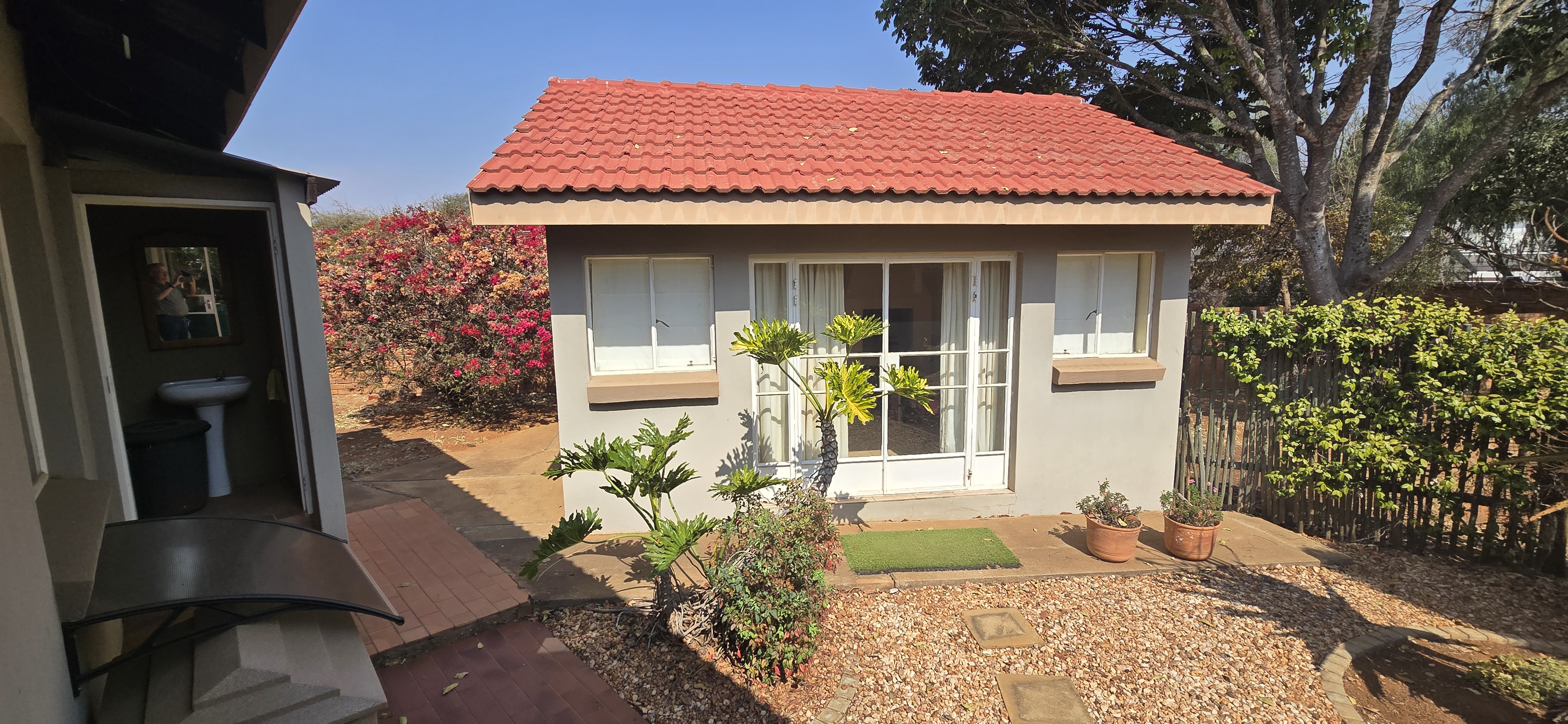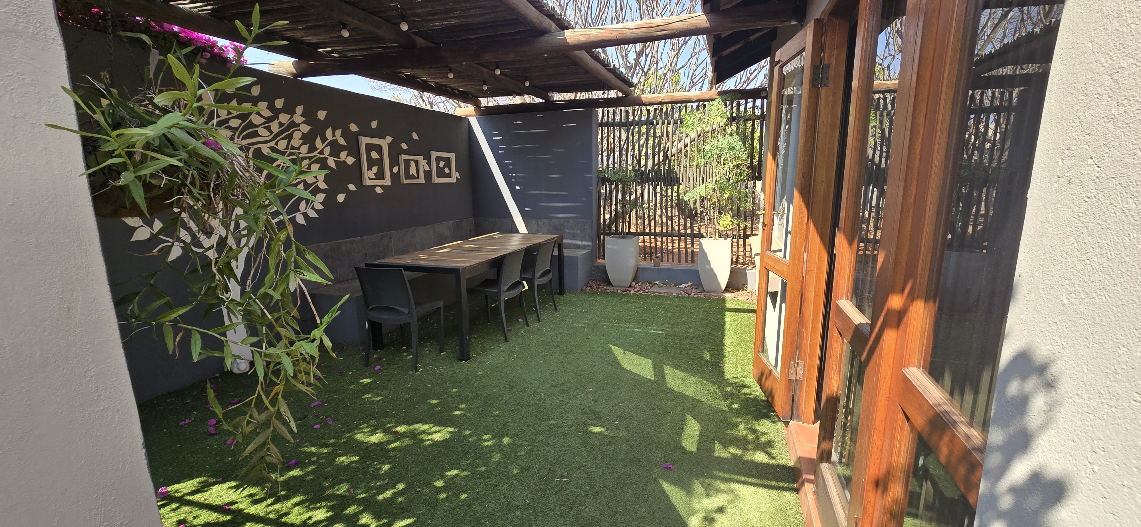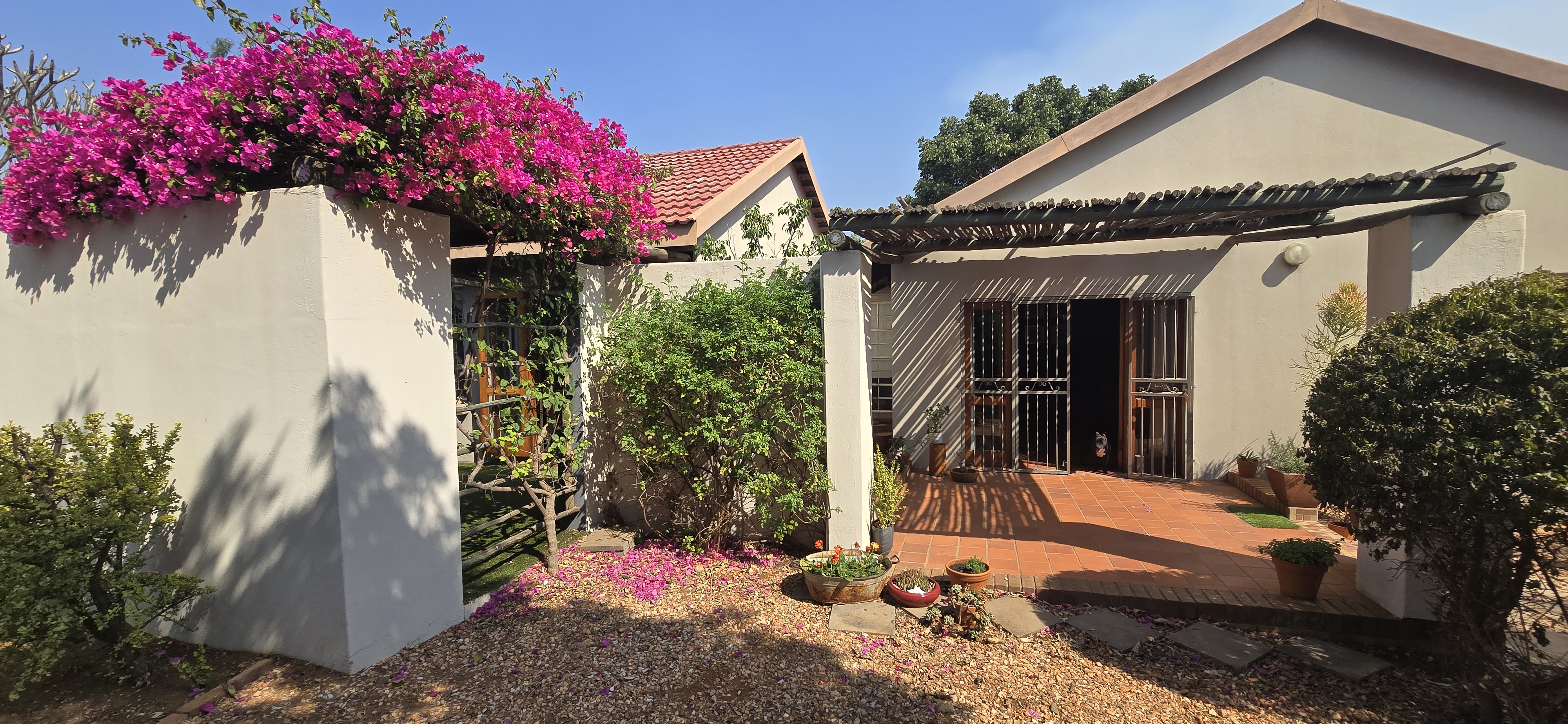 Enjoy weekends in your private entertainment area, complete with a built-in braai—ideal for year-round get-togethers. The lush backyard, shaded by mature trees, offers plenty of room for kids to play, a veggie garden, or even a second dwelling.