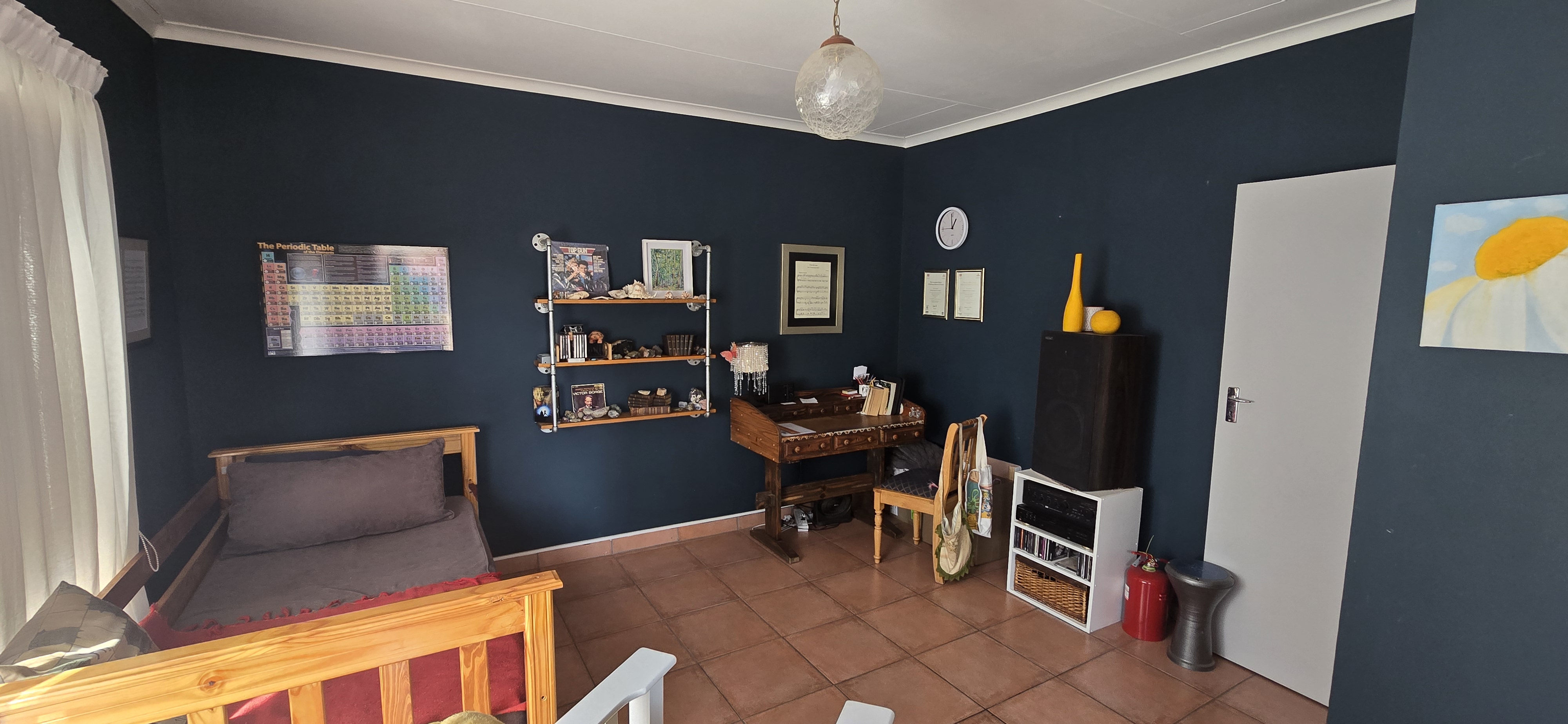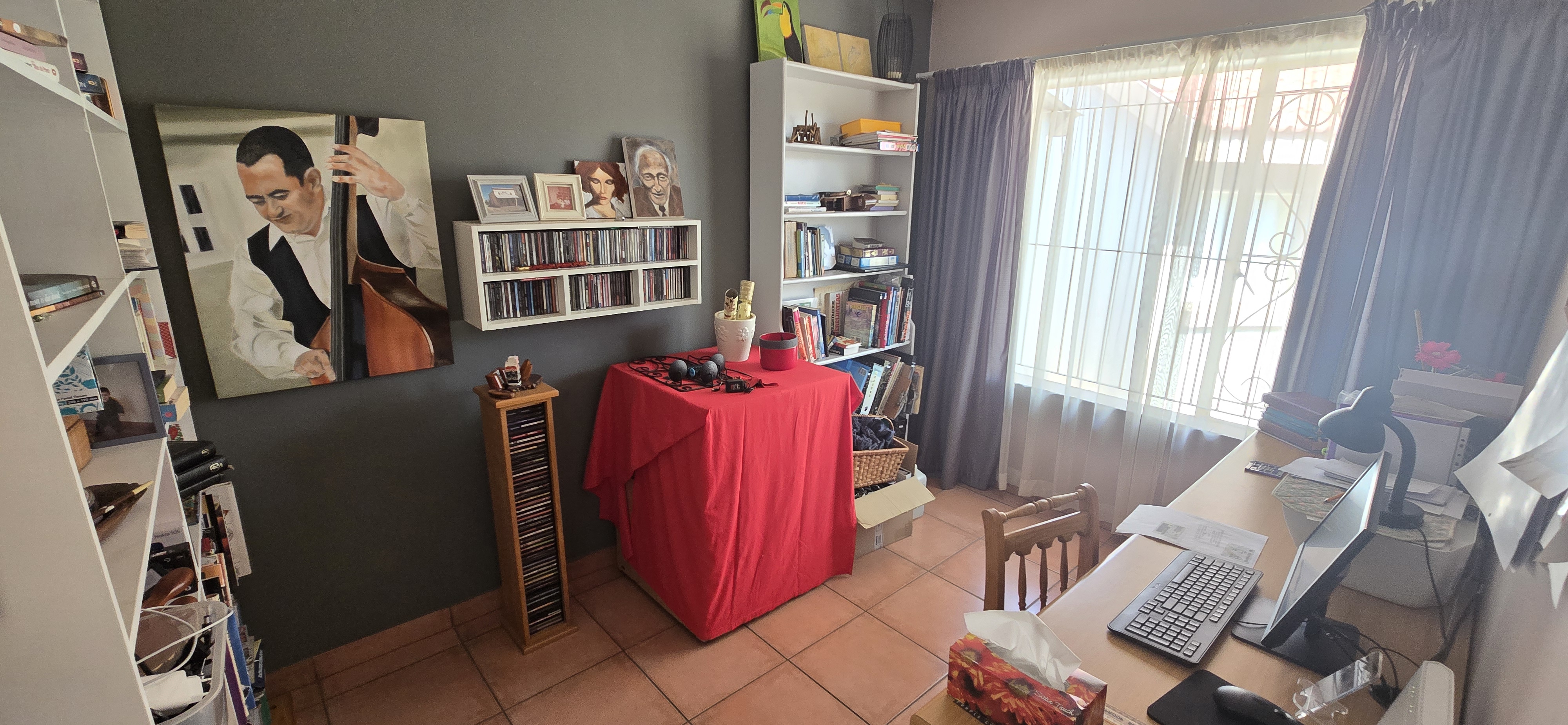 A versatile study/home office offers space for remote work, hobbies, or even a mini gym.