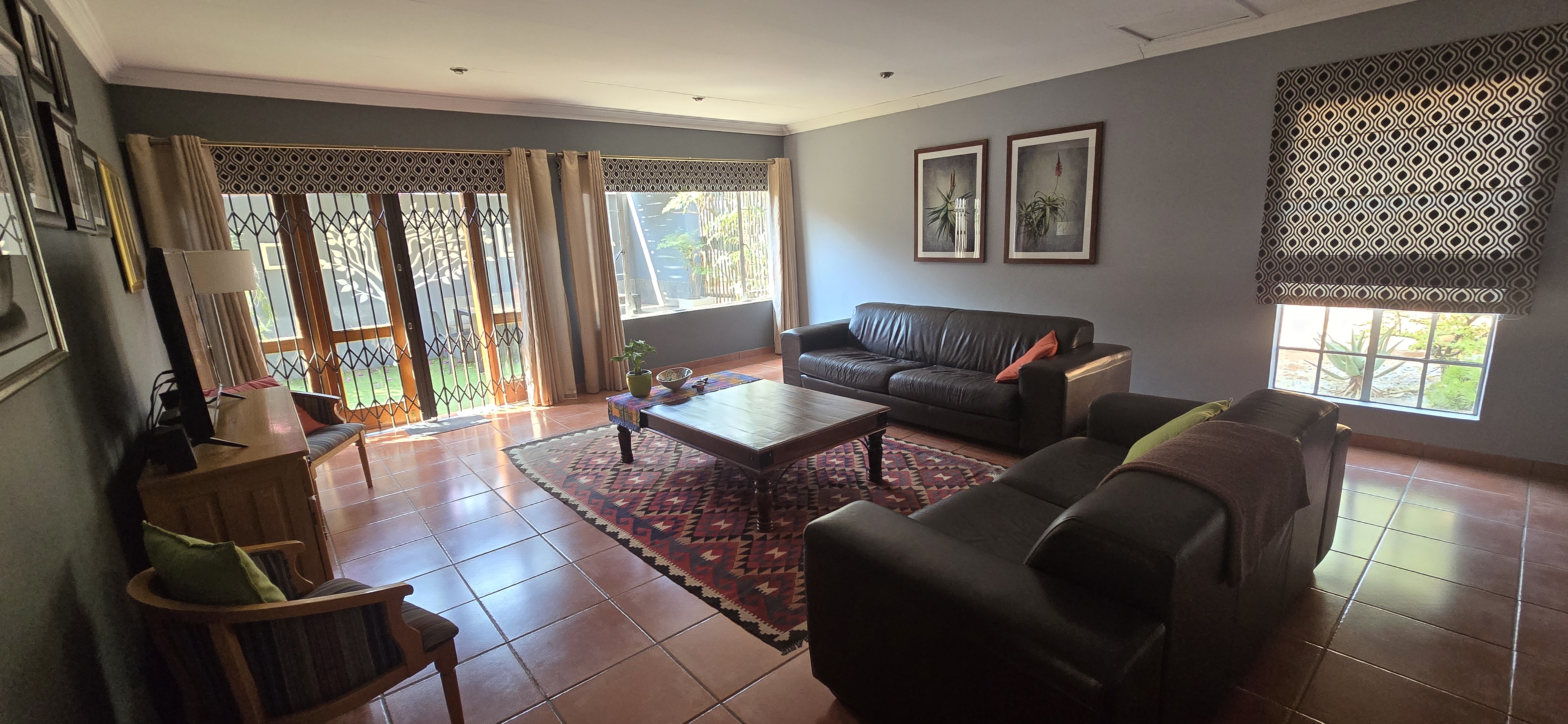 Tiled living areas for easy maintenance, with cozy carpeting in the bedrooms.