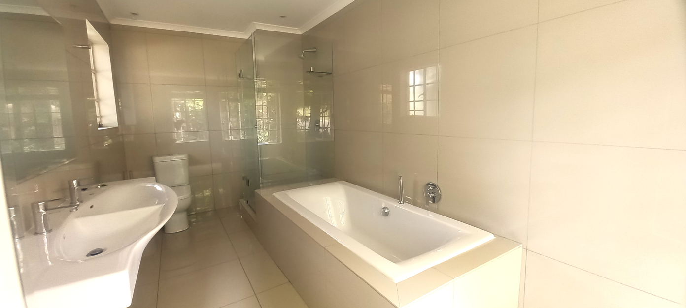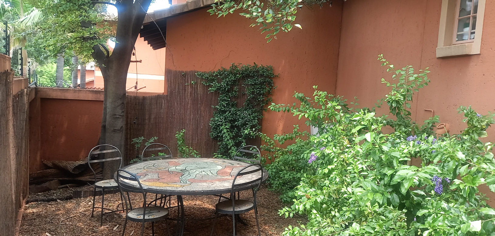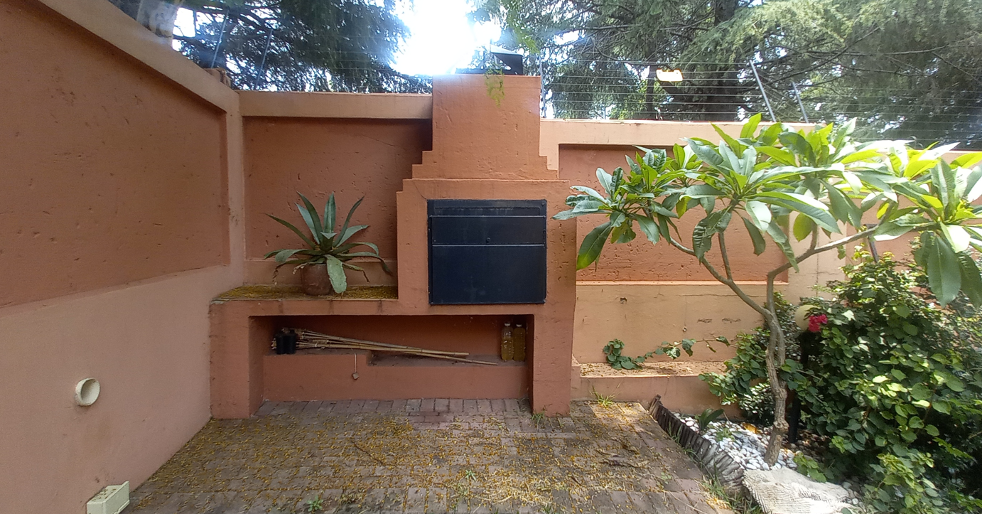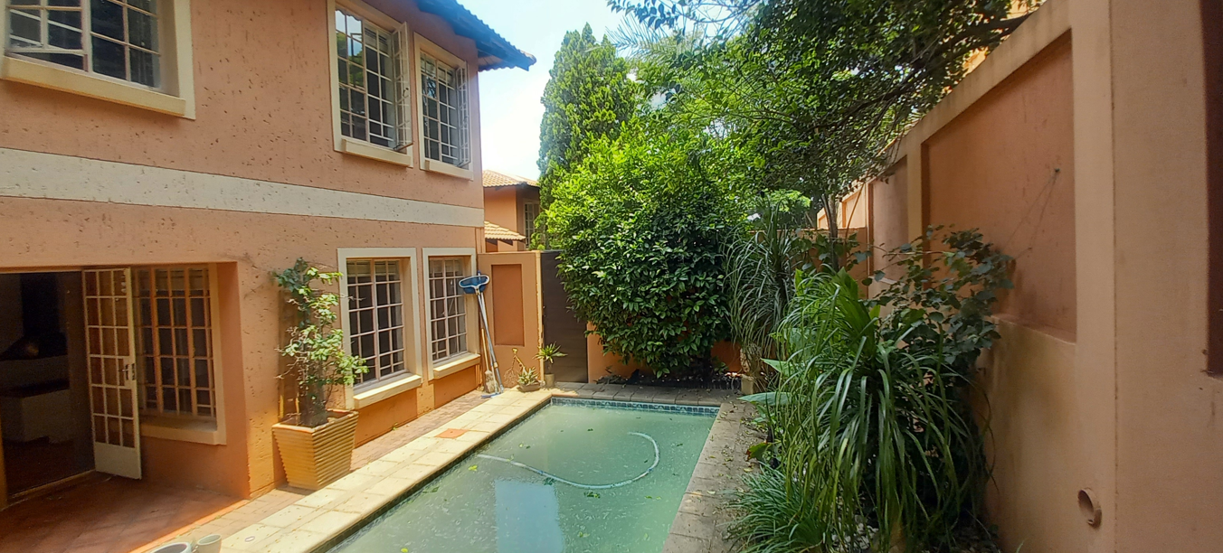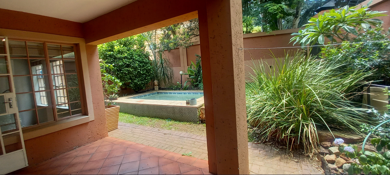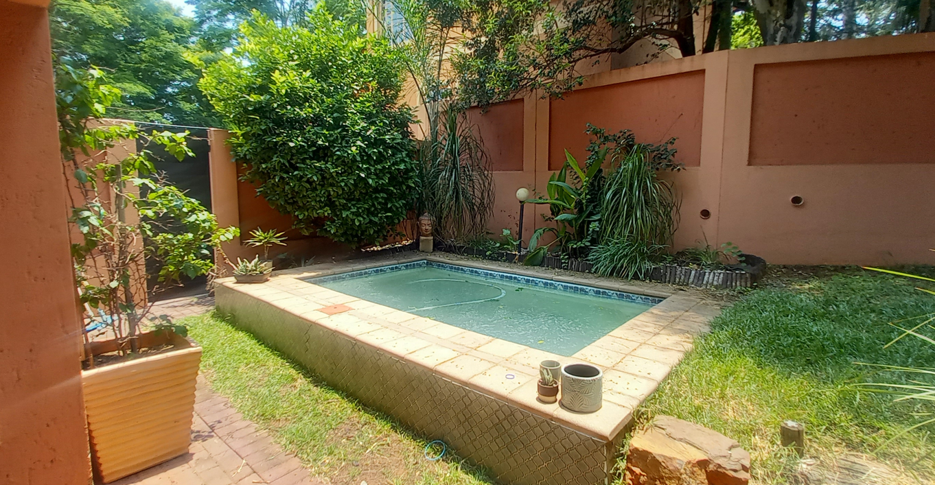 A significant advantage: the area is free from load shedding, ensuring uninterrupted comfort and convenience. Experience secure, carefree living in a serene environment surrounded by beautifully maintained gardens. The townhouse features two spacious living areas that seamlessly connect to a covered patio and a private 420m2 garden adorned with mature trees and plants. It’s conveniently located near the sparkling swimming pool and built-in braai area, making it perfect for relaxed entertaining.