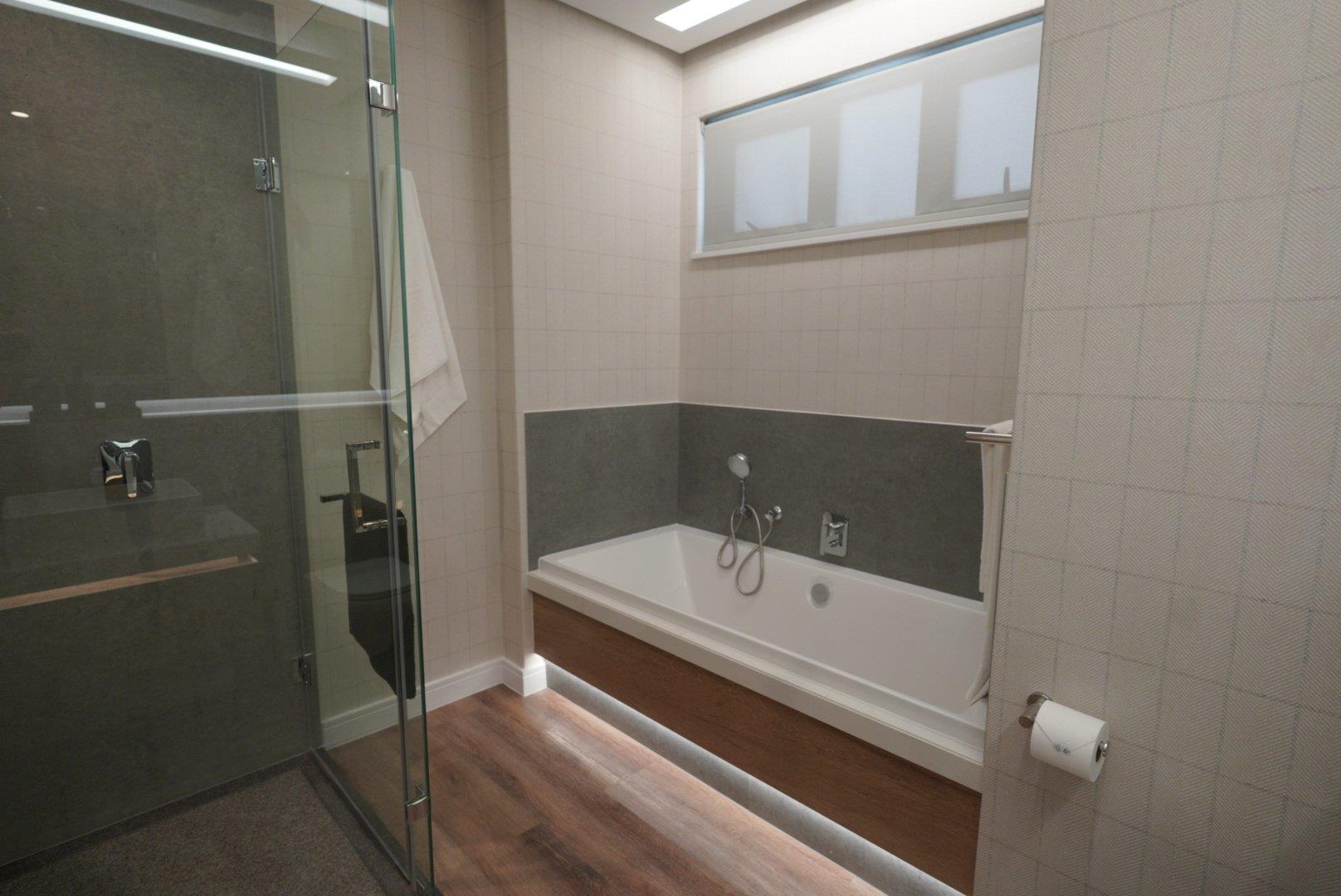 Both bedrooms are spacious and tranquil, with custom wardrobes and floor-to-ceiling windows that offer calming views. The master suite boasts a luxurious en-suite bathroom with modern fittings and a seamless walk-in shower, exuding a boutique hotel ambiance.