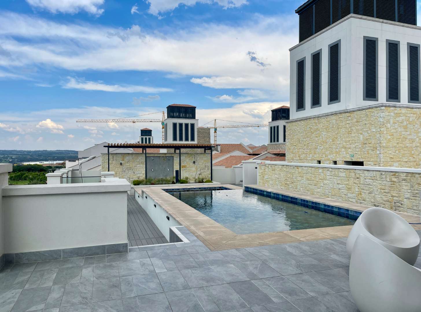 The City Centre is situated across from the 300-meter lagoon. There are restaurants and parks within walking distance. The complex offers swimming pools, a generator that automatically kicks in during load shedding, piazzas for relaxation and meeting friends, and the beauty and amenities Steyn City provides for all residents.