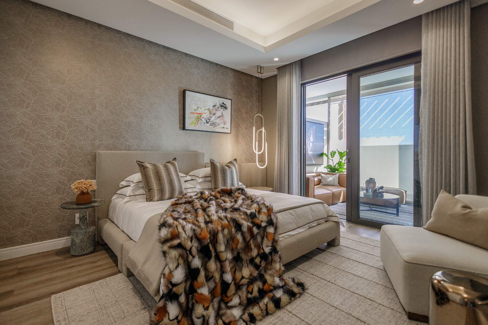 This luxurious 3-bedroom apartment, situated in the exclusive City Center of Steyn City, redefines modern living with its impeccable design and high-end finishes. Spacious and contemporary, the apartment boasts an open-plan living area that seamlessly blends comfort with elegance. The chef’s kitchen is fitted with premium Gaggenau appliances, ensuring that every meal is a masterpiece. The bathrooms are adorned with stylish Kohler finishes, providing a tranquil escape that exudes sophistication. With central air conditioning, the apartment promises year-round comfort and a perfect balance of luxury and convenience.