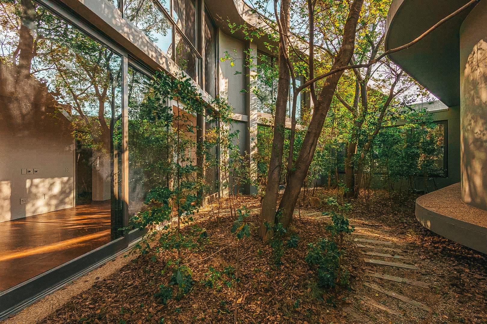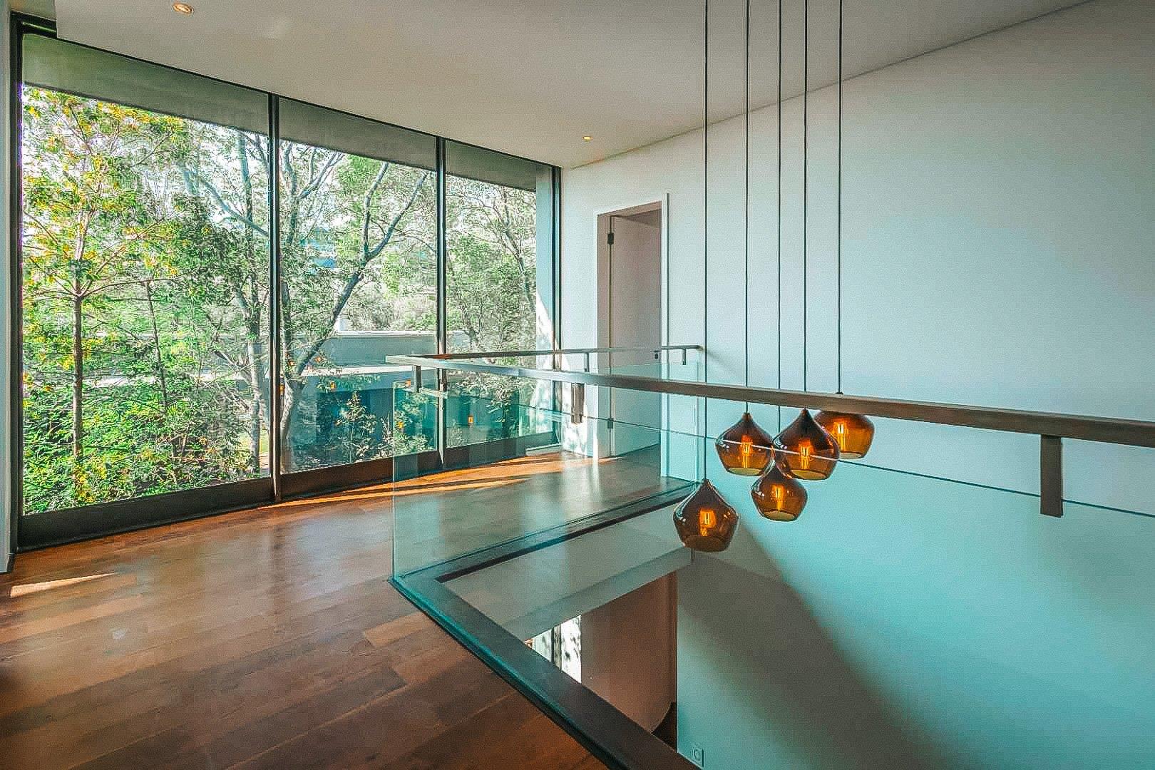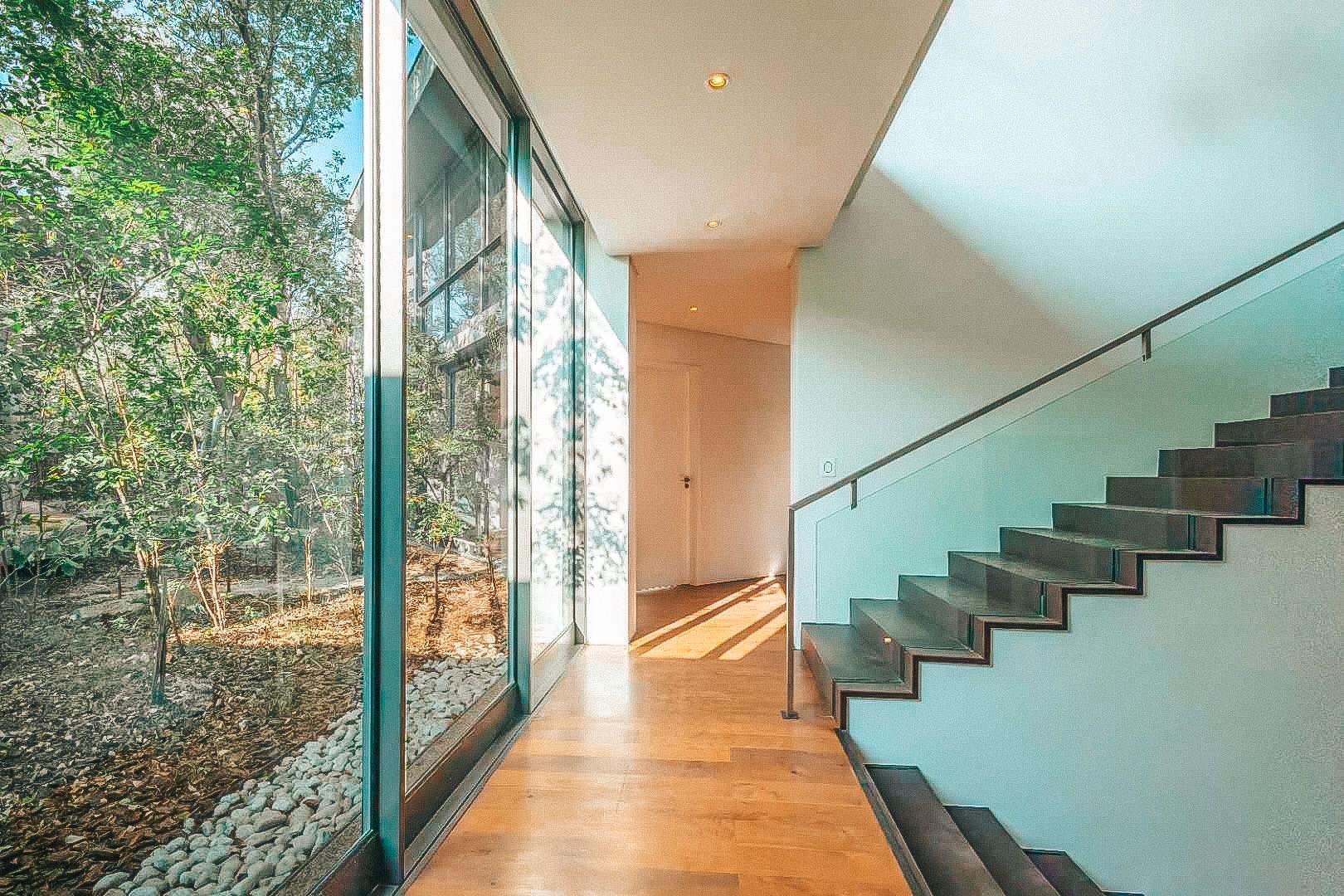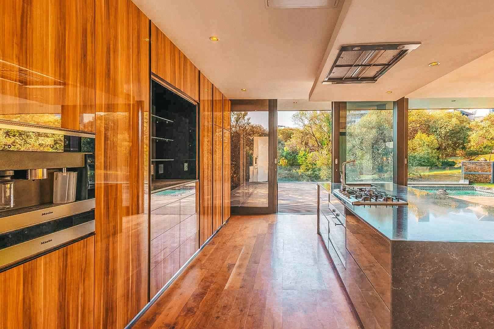 The heart of this residence lies in its ingenious design, featuring stacking doors that gracefully unveil a breathtaking atrium. Imagine sipping your morning coffee or enjoying a glass of wine in the evening, surrounded by the calming presence of nature. Each of the 4 en-suite bedrooms, is strategically positioned, offering a tranquil view of this botanical paradise, ensuring serenity at every glance.