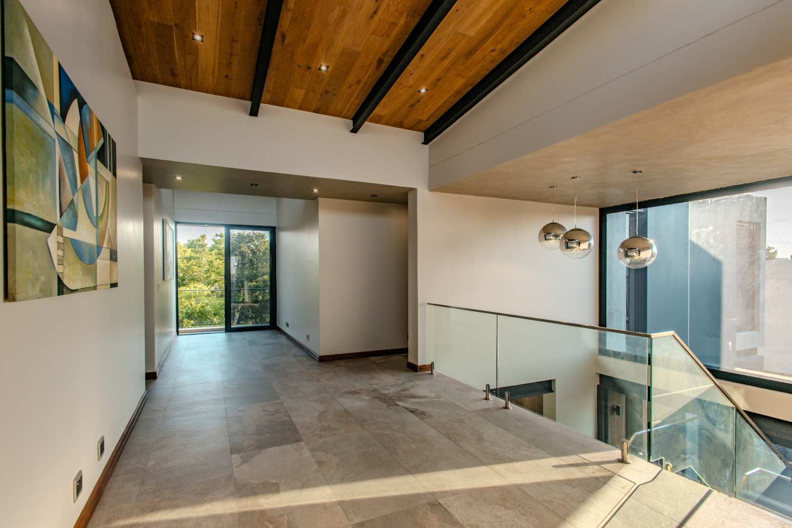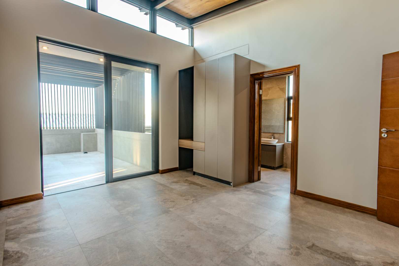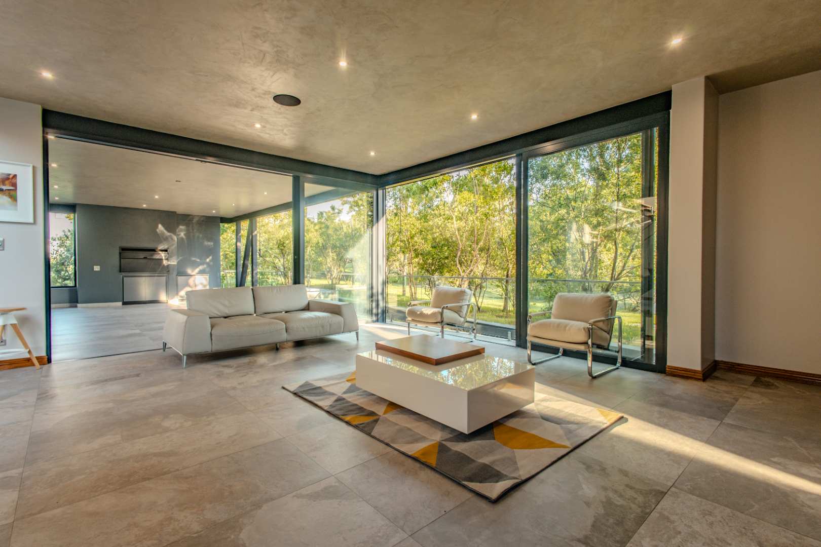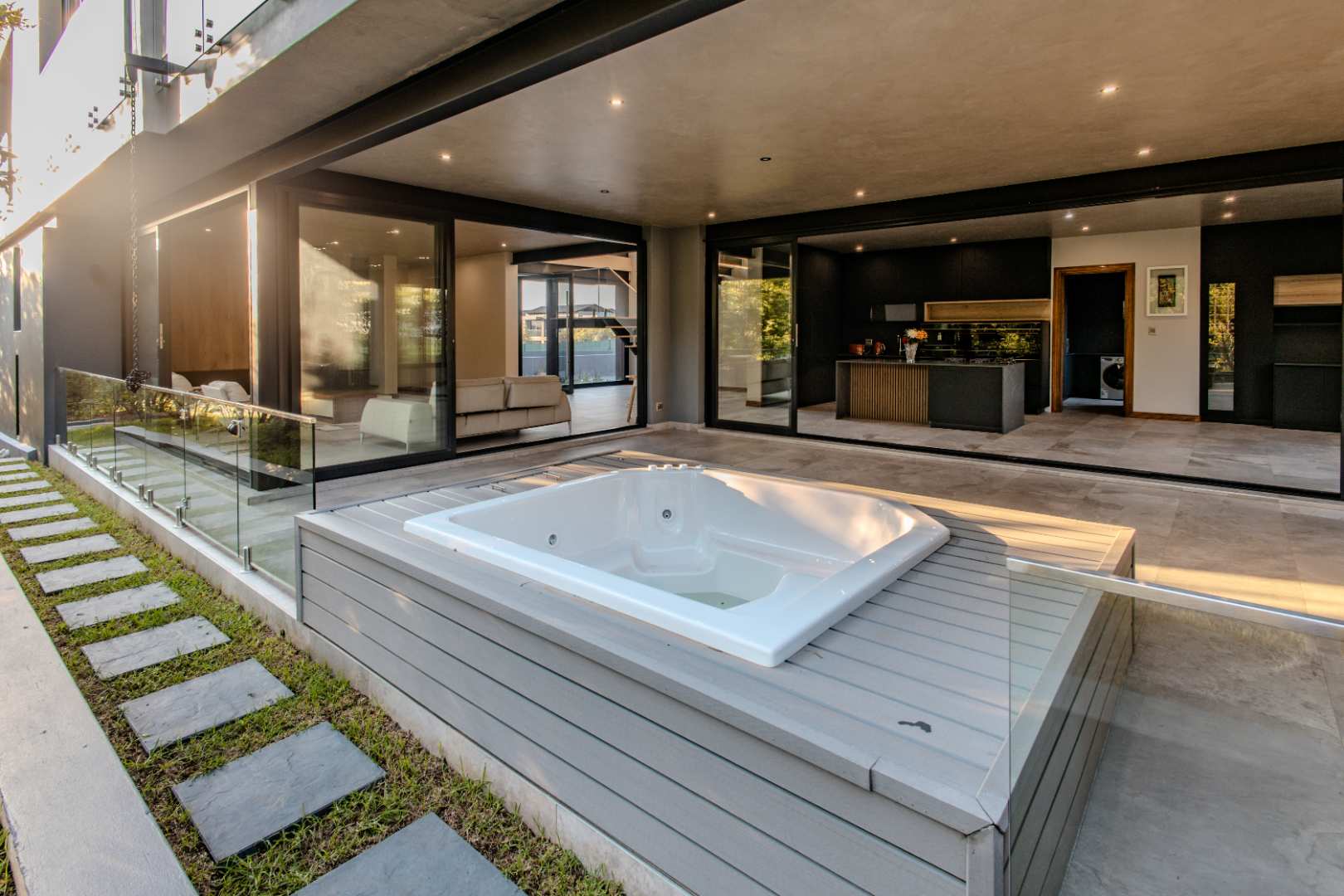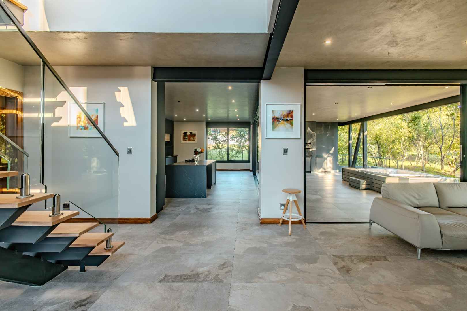 Steel Feature Covering Patio: The first-floor patio is a true outdoor haven. Covered by a striking steel feature, it offers a seamless transition between indoor and outdoor living. Enjoy the beauty of Steyn City from this vantage point, surrounded by the gentle murmur of a meandering stream and the lush greenery of the adjacent park.