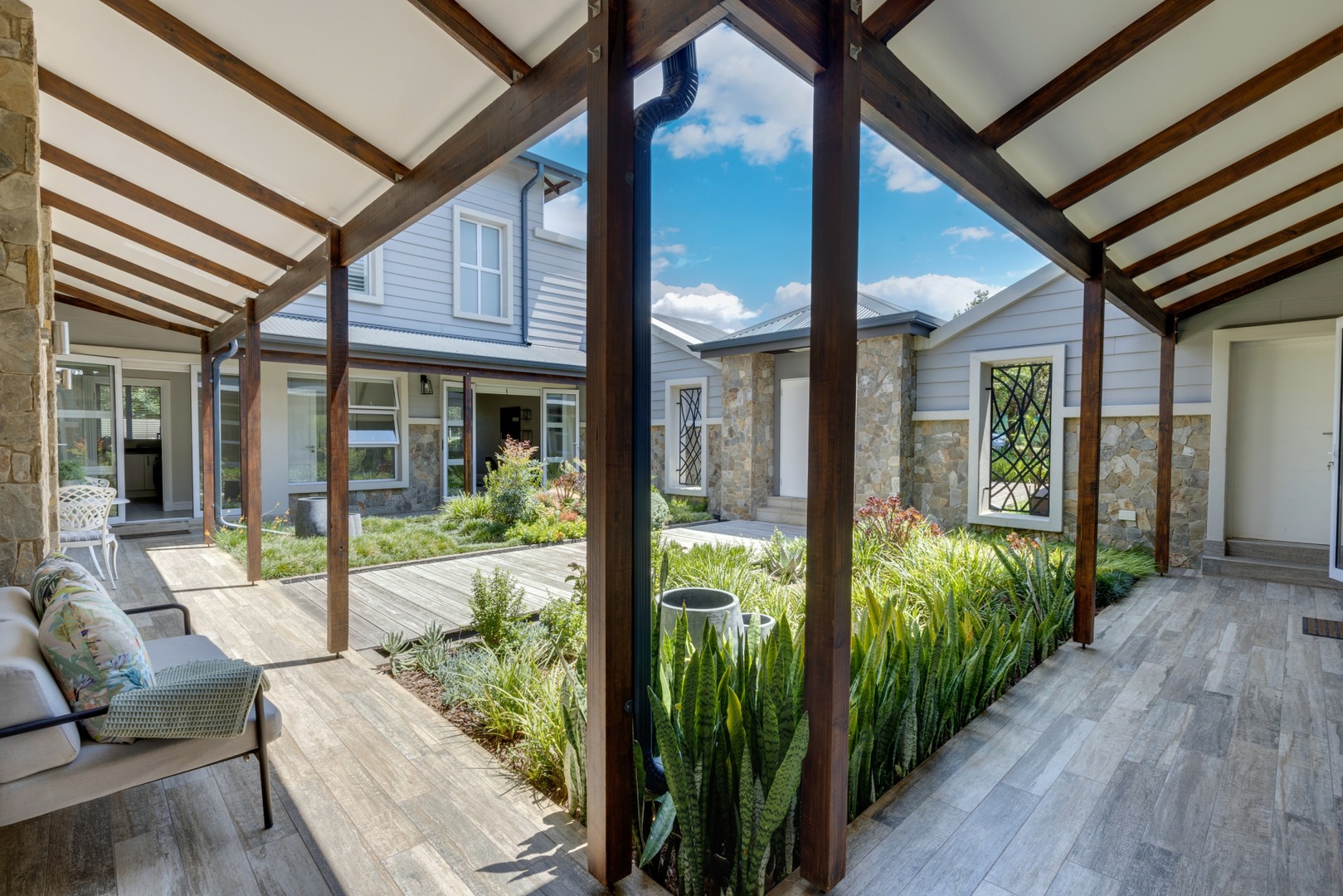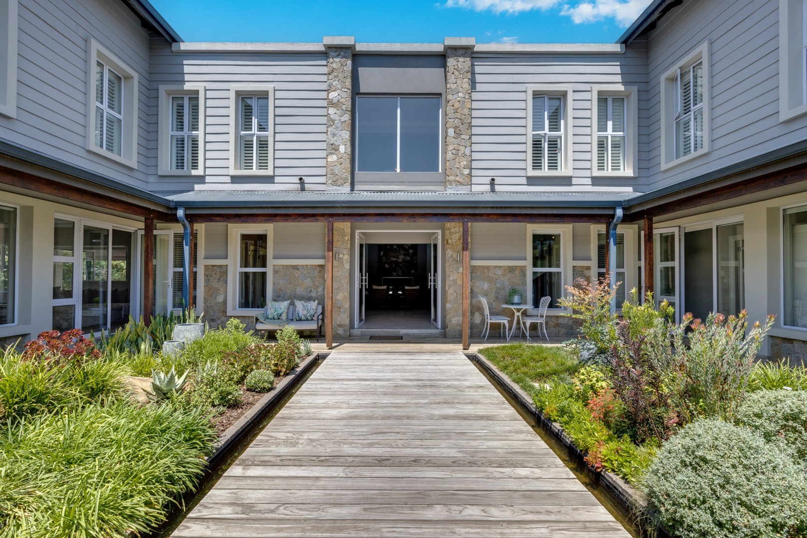 Two bedroom suites, one with kitchenette, which open up onto the private courtyard.