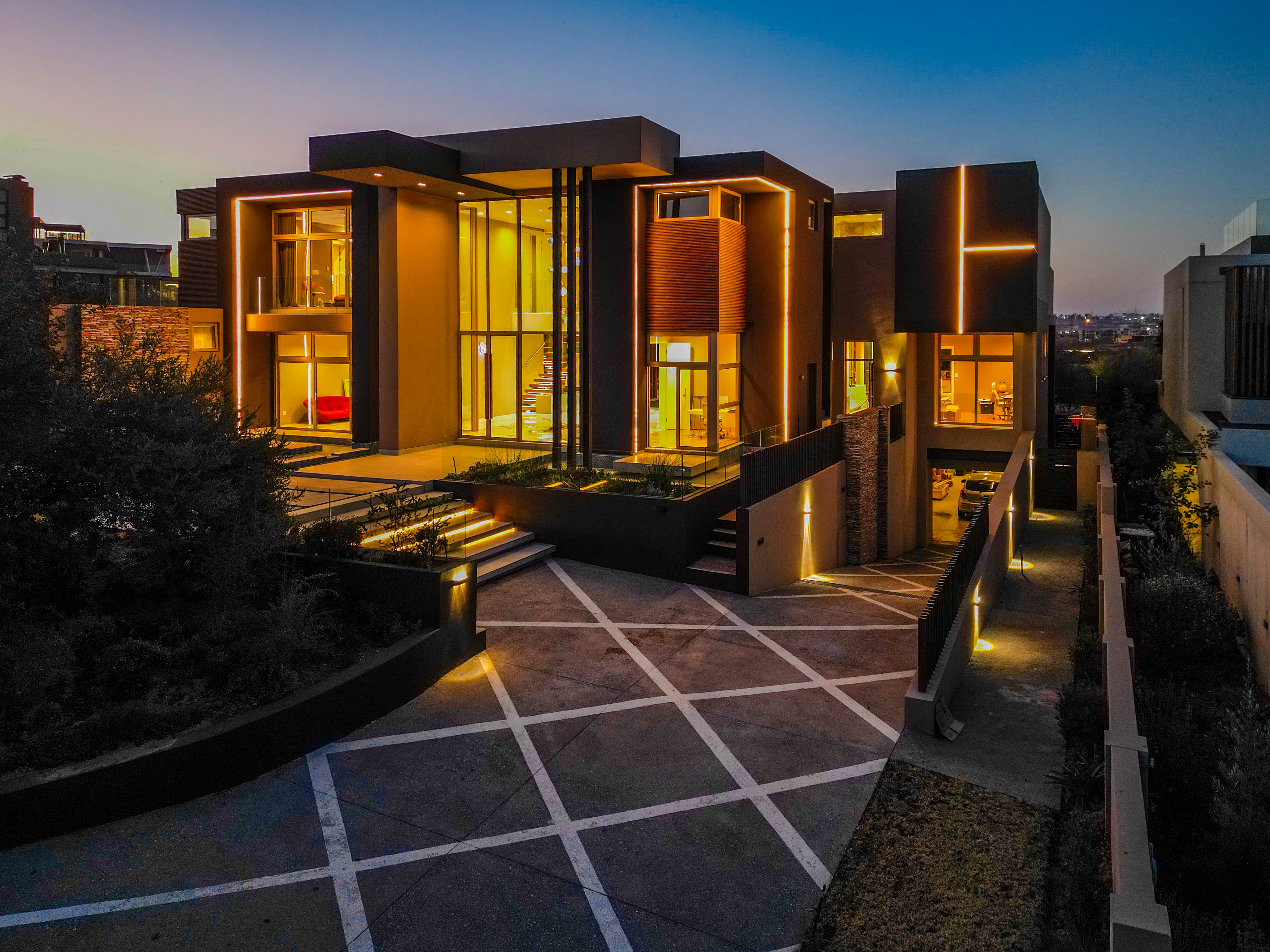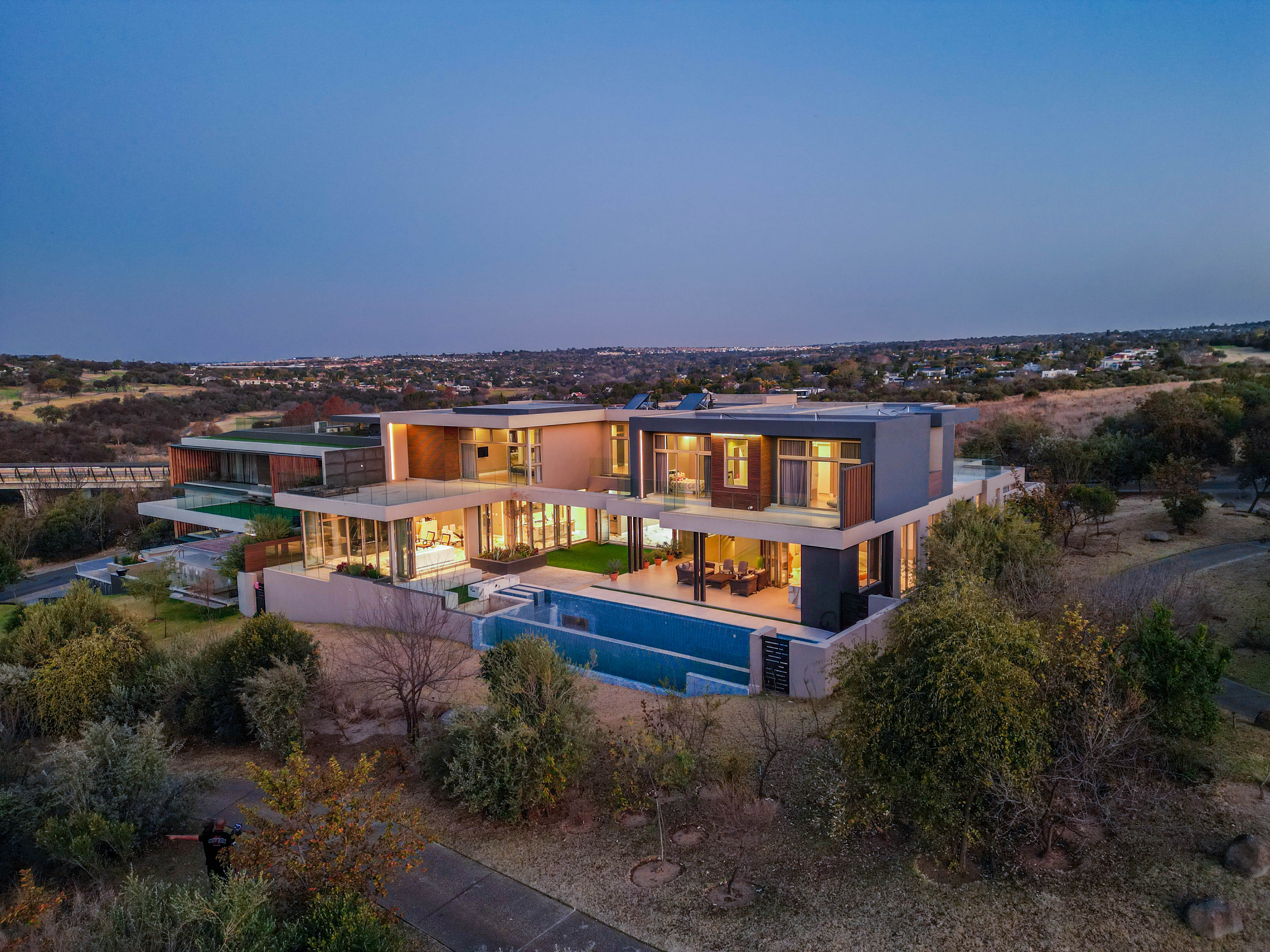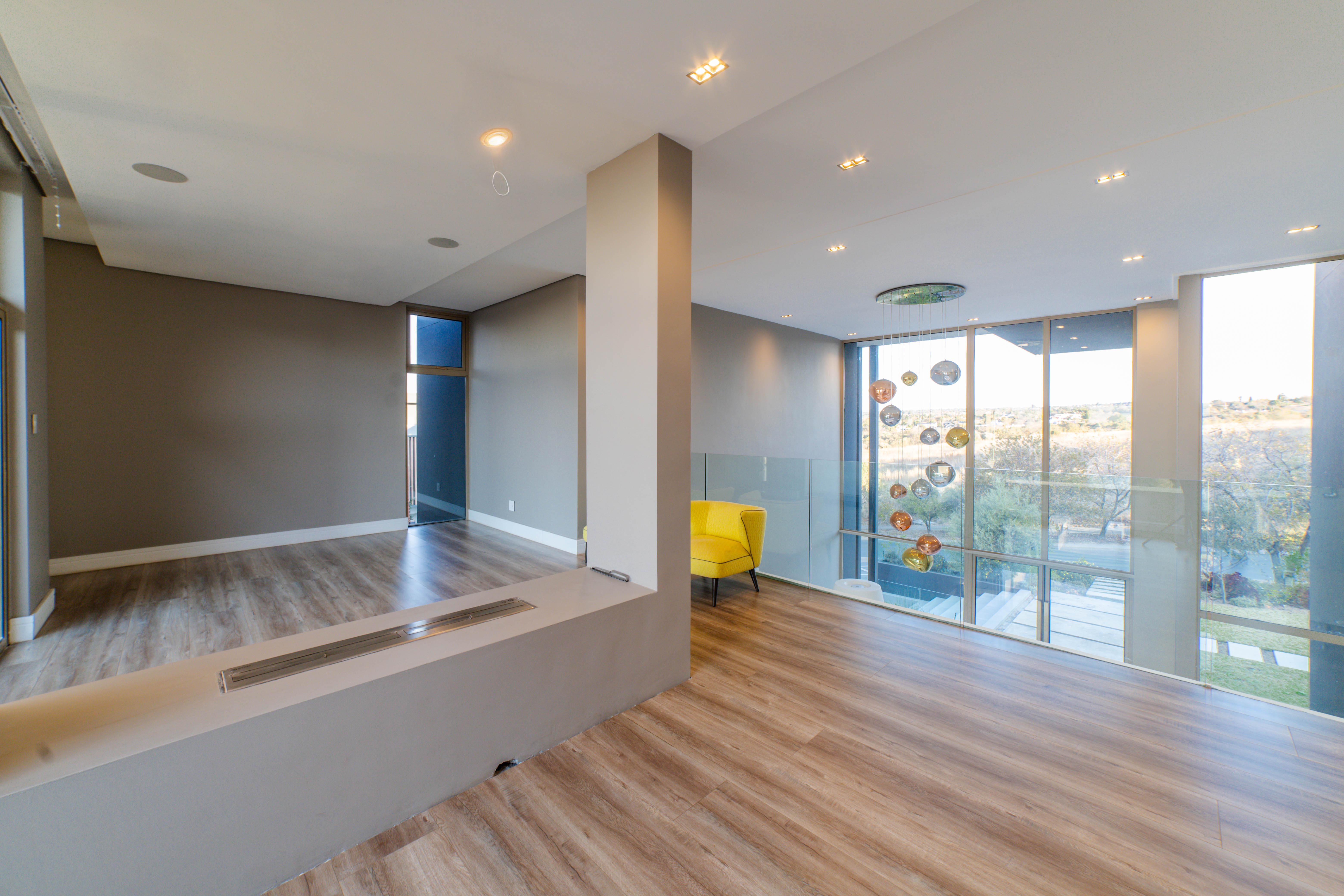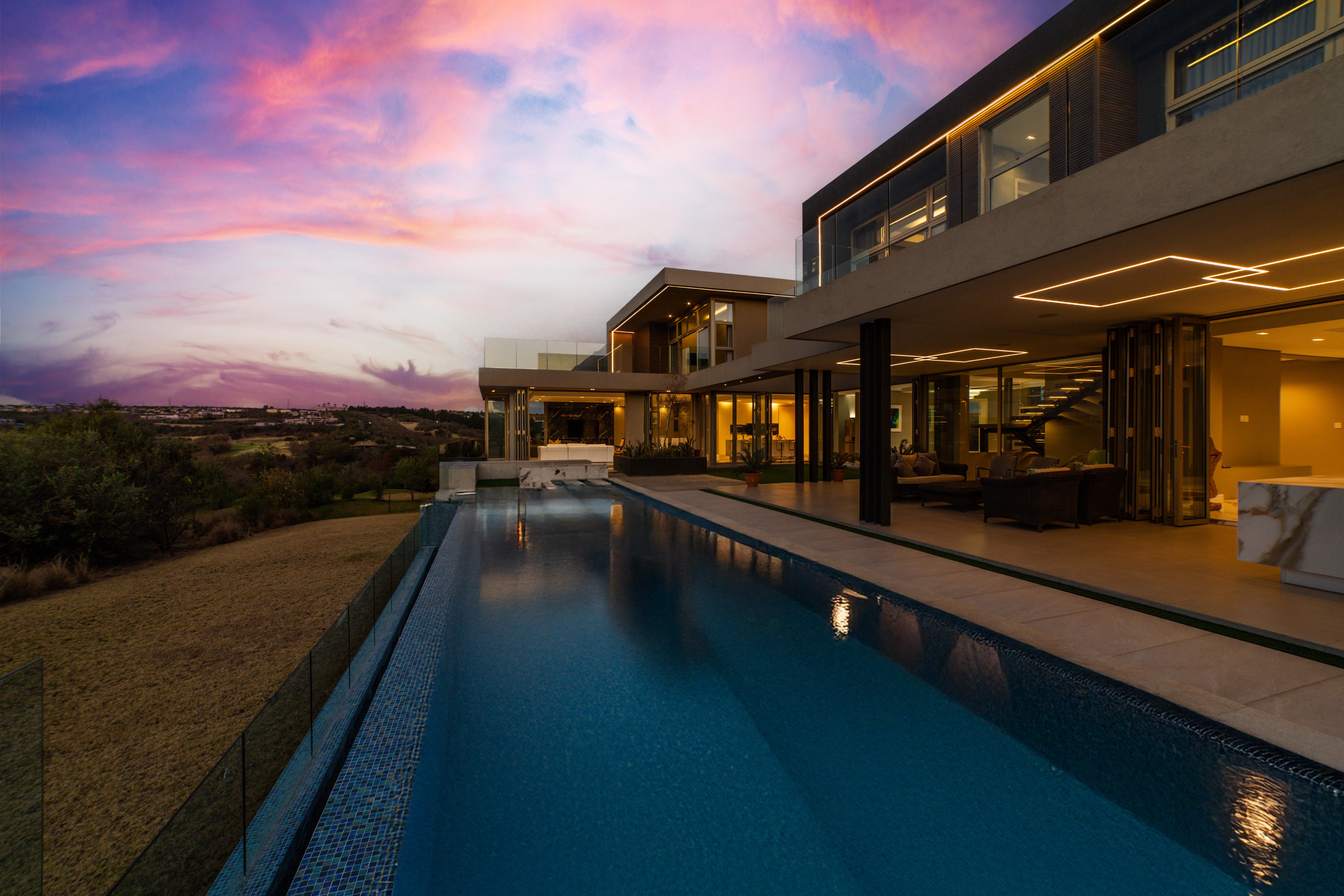 Perched in one of the highest and most sought-after locations in Steyn City, this architecturally striking 6-bedroom, 7-bathroom modern residence offers a rare combination of luxury, comfort, and breath-taking views. Overlooking the prestigious Steyn City Golf Course, the estate, and the exclusive Villa Steyn, this home promises a lifestyle of sophistication and serenity. From the moment you step inside, you're greeted by grand interiors that flow seamlessly through two private lounges, two elegant dining areas, and a state-of-the-art integrated kitchen equipped with both gas and electric stoves—crafted for both the passionate home chef and effortless entertaining. Additional features include Private office for work-from-home convenience, 5kW backup power system to keep you powered through load shedding, Double-glazed glass throughout, ensuring energy efficiency and sound insulation, Central air conditioning for year-round climate comfort, Smart home system for effortless control of lighting, climate, and security The basement level is a masterpiece in itself—offering secure parking for up to 10 vehicles, a fully soundproofed cinema room, and an elegant entertainment bar. For added convenience and accessibility, the home includes a private lift servicing all levels. Upstairs, a pyjama lounge with its own balcony provides a cozy retreat for relaxation, while every bedroom is generously proportioned and en-suite, designed with comfort and privacy in mind. This magnificent home is set on a beautifully landscaped plot, offering both grandeur and functionality in one of the estate’s most exclusive locations. A true must-see for the discerning buyer seeking unmatched luxury in Steyn City.