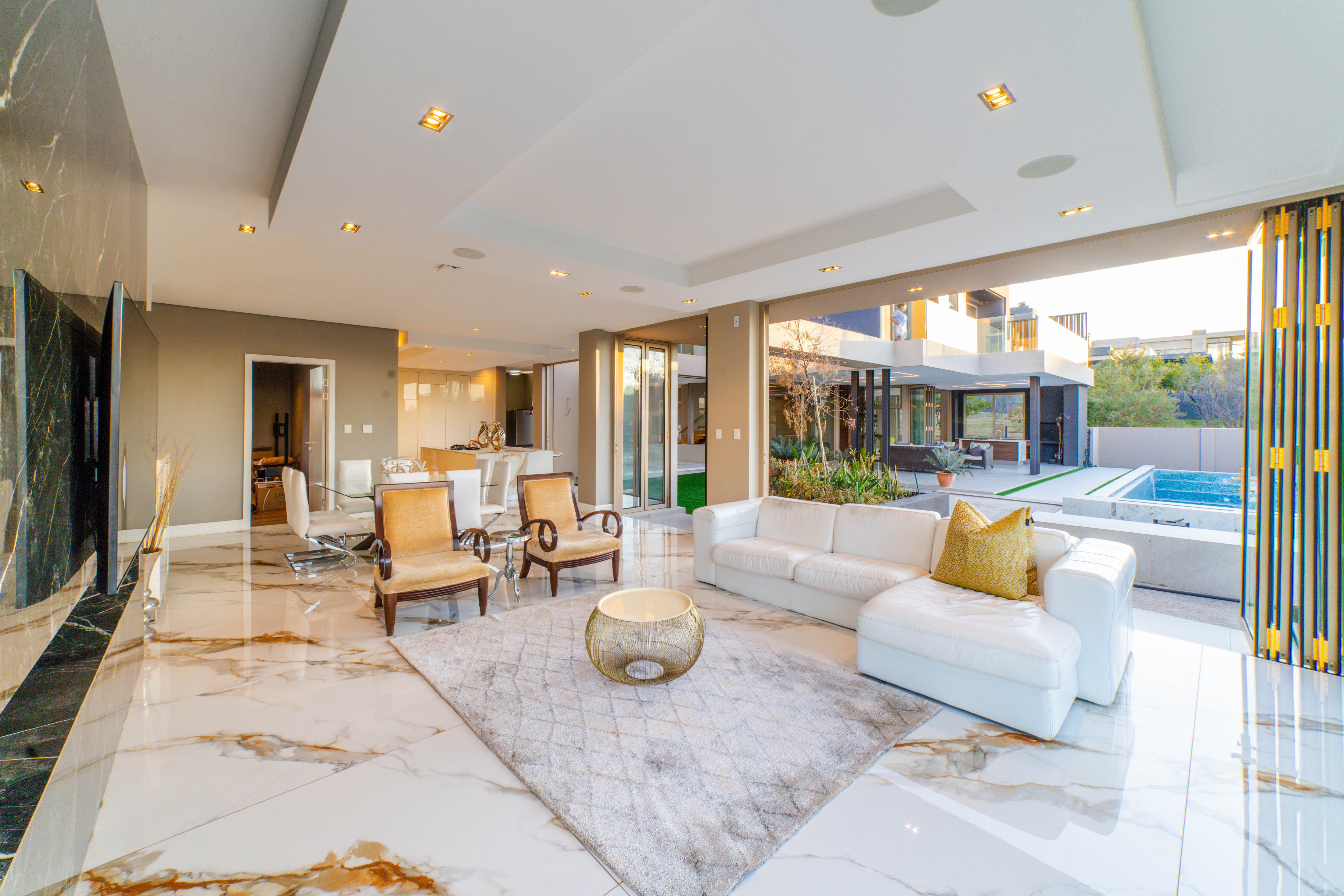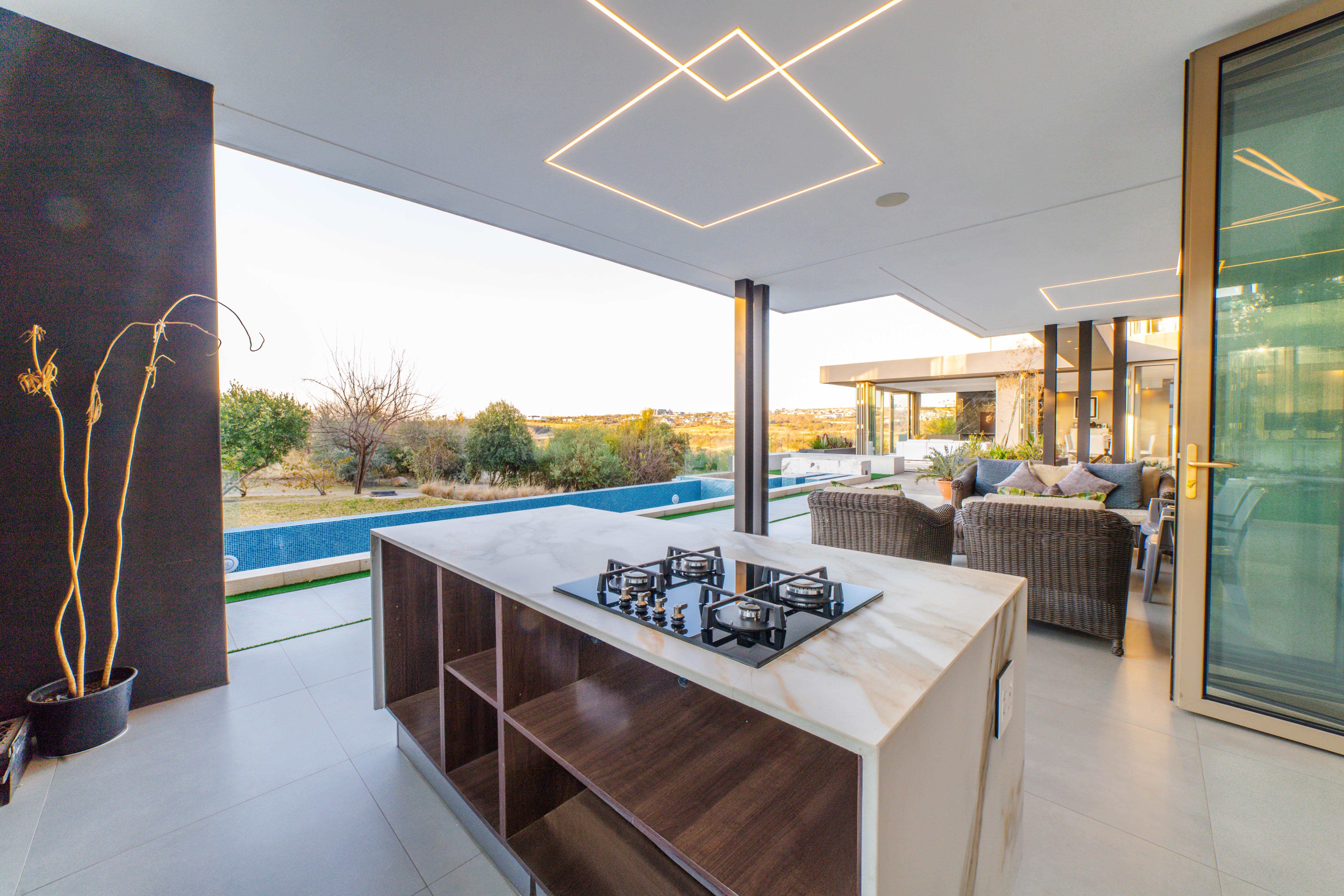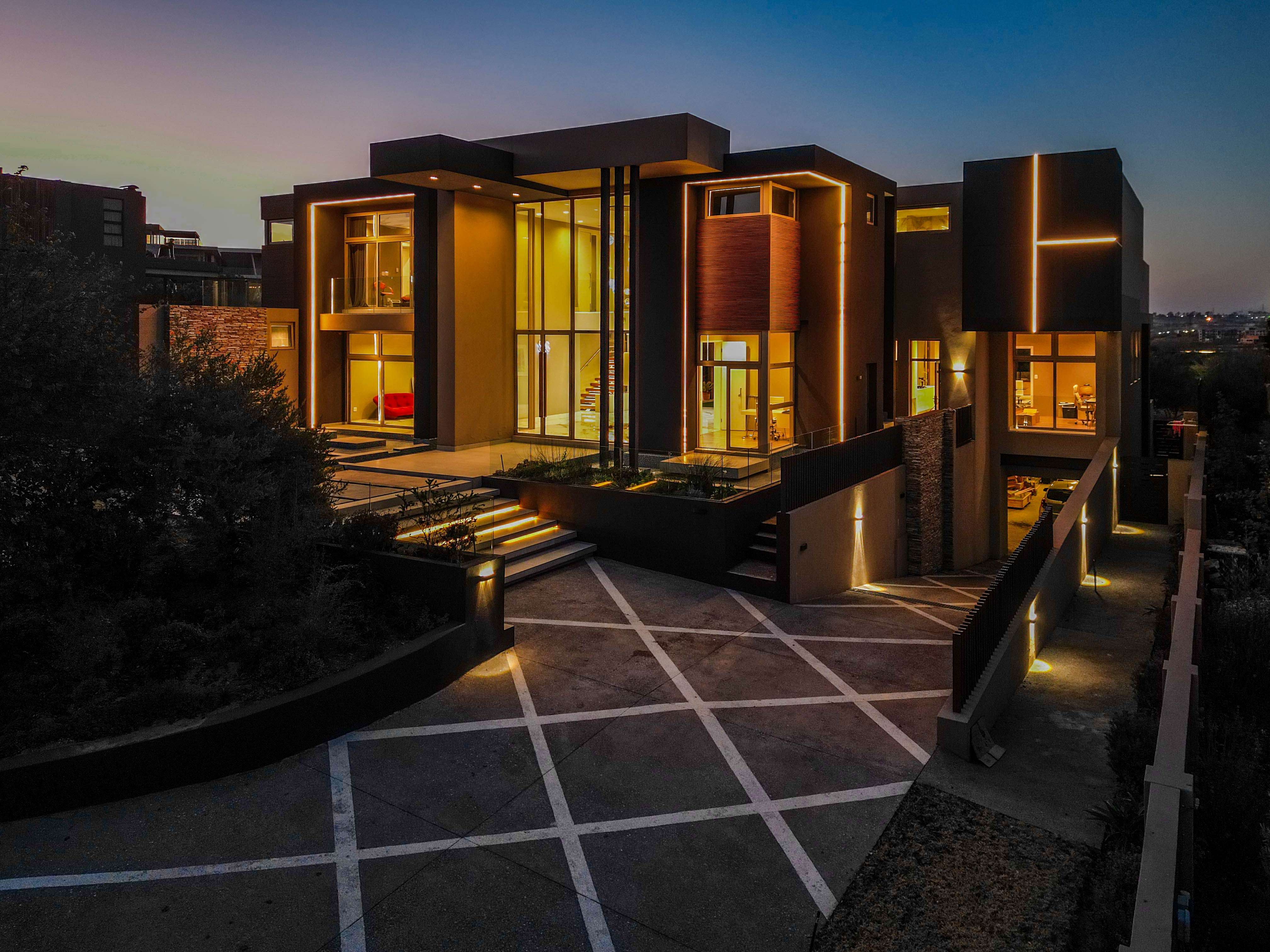 Perched in one of the highest and most sought-after locations in Steyn City, this architecturally striking 6-bedroom, 7-bathroom modern residence offers a rare combination of luxury, comfort, and breath-taking views. Overlooking the prestigious Steyn City Golf Course, the estate, and the exclusive Villa Steyn, this home promises a lifestyle of sophistication and serenity. From the moment you step inside, you're greeted by grand interiors that flow seamlessly through two private lounges, two elegant dining areas, and a state-of-the-art integrated kitchen equipped with both gas and electric stoves—crafted for both the passionate home chef and effortless entertaining. Additional features include Private office for work-from-home convenience, 5kW backup power system to keep you powered through load shedding, Double-glazed glass throughout, ensuring energy efficiency and sound insulation, Central air conditioning for year-round climate comfort, Smart home system for effortless control of lighting, climate, and security The basement level is a masterpiece in itself—offering secure parking for up to 10 vehicles, a fully soundproofed cinema room, and an elegant entertainment bar. For added convenience and accessibility, the home includes a private lift servicing all levels. Upstairs, a pyjama lounge with its own balcony provides a cozy retreat for relaxation, while every bedroom is generously proportioned and en-suite, designed with comfort and privacy in mind. This magnificent home is set on a beautifully landscaped plot, offering both grandeur and functionality in one of the estate’s most exclusive locations. A true must-see for the discerning buyer seeking unmatched luxury in Steyn City.