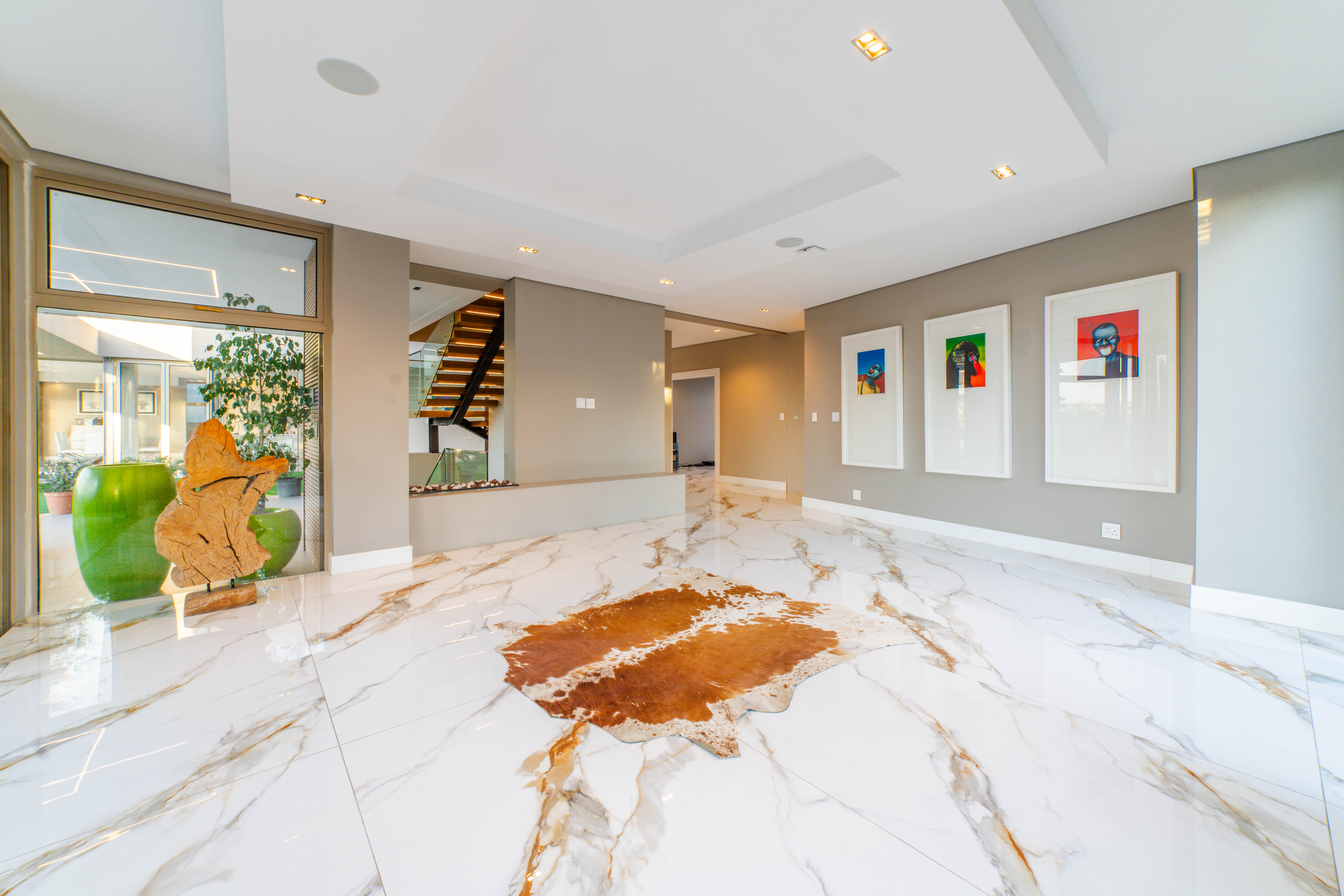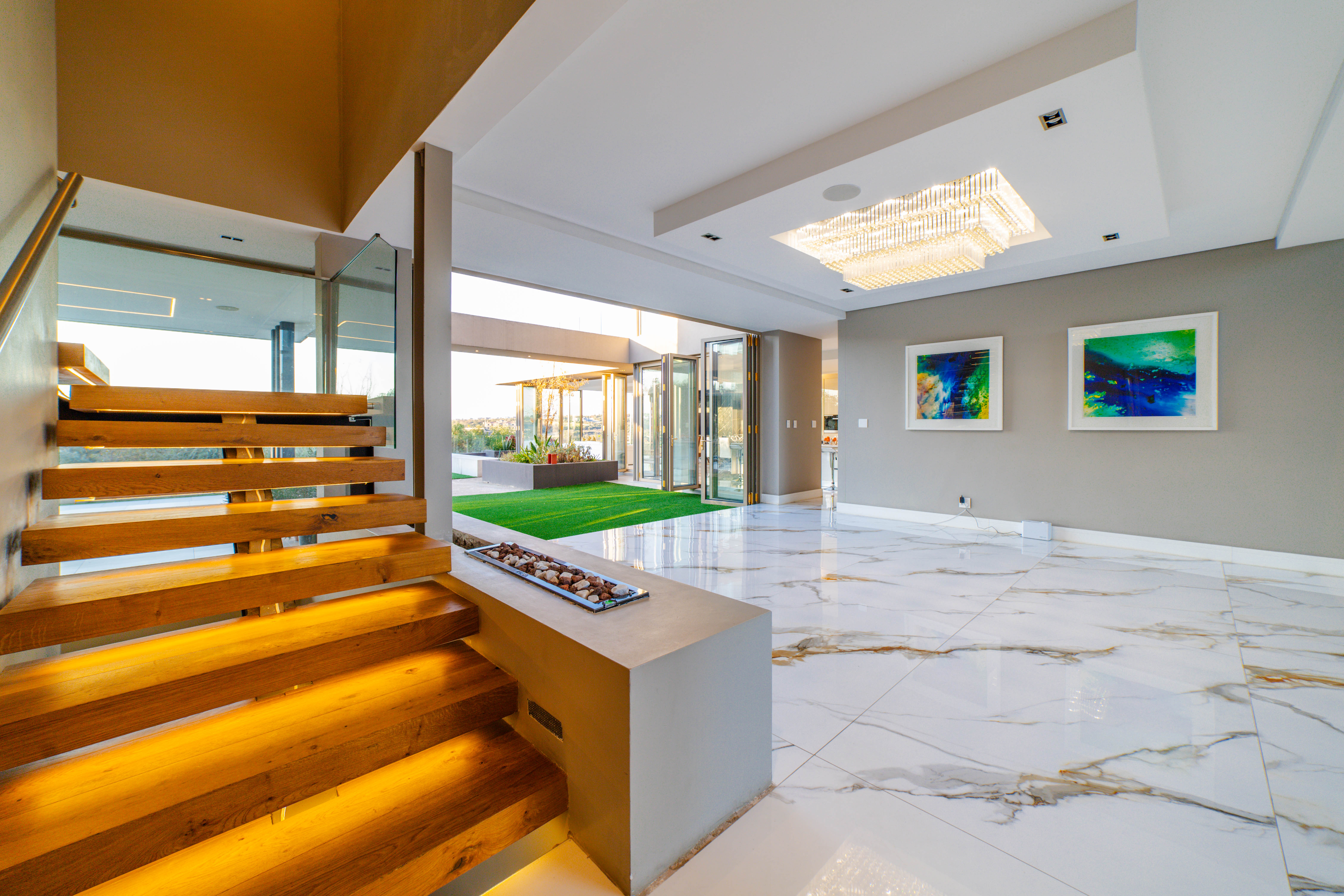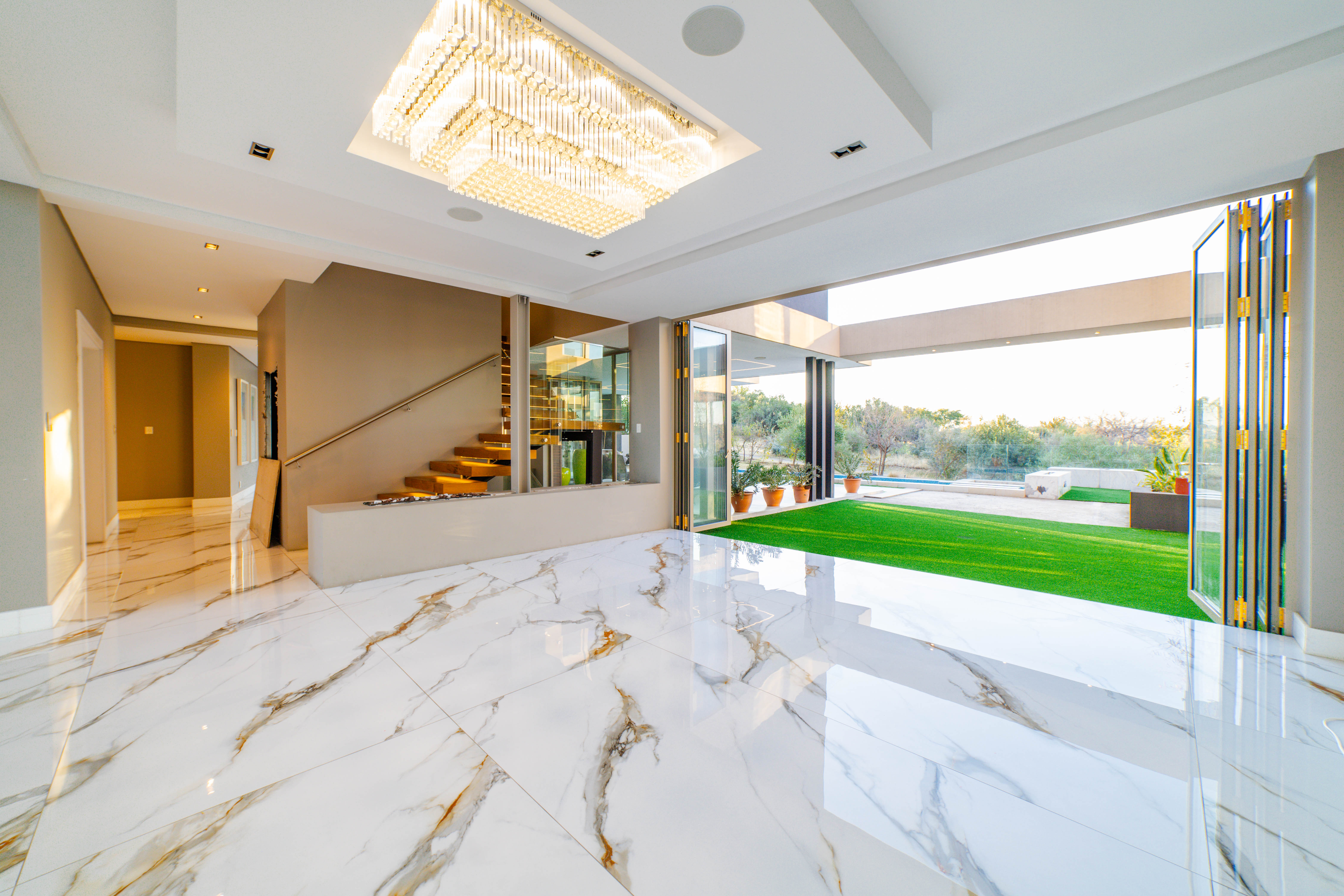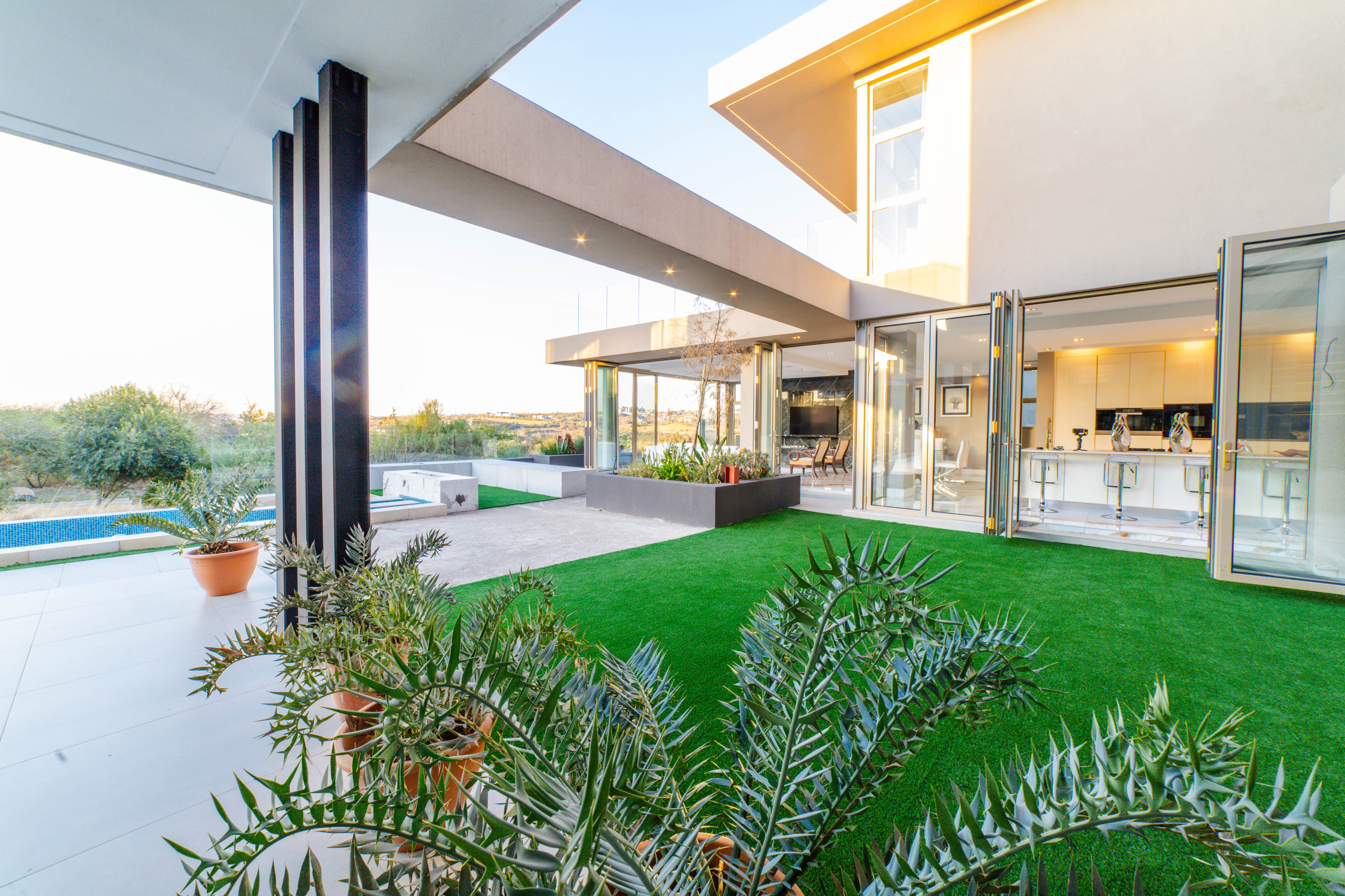 Perched in one of the highest and most sought-after locations in Steyn City, this architecturally striking 6-bedroom, 7-bathroom modern residence offers a rare combination of luxury, comfort, and breath-taking views. Overlooking the prestigious Steyn City Golf Course, the estate, and the exclusive Villa Steyn, this home promises a lifestyle of sophistication and serenity. From the moment you step inside, you're greeted by grand interiors that flow seamlessly through two private lounges, two elegant dining areas, and a state-of-the-art integrated kitchen equipped with both gas and electric stoves—crafted for both the passionate home chef and effortless entertaining. Additional features include Private office for work-from-home convenience, 5kW backup power system to keep you powered through load shedding, Double-glazed glass throughout, ensuring energy efficiency and sound insulation, Central air conditioning for year-round climate comfort, Smart home system for effortless control of lighting, climate, and security The basement level is a masterpiece in itself—offering secure parking for up to 10 vehicles, a fully soundproofed cinema room, and an elegant entertainment bar. For added convenience and accessibility, the home includes a private lift servicing all levels. Upstairs, a pyjama lounge with its own balcony provides a cozy retreat for relaxation, while every bedroom is generously proportioned and en-suite, designed with comfort and privacy in mind. This magnificent home is set on a beautifully landscaped plot, offering both grandeur and functionality in one of the estate’s most exclusive locations. A true must-see for the discerning buyer seeking unmatched luxury in Steyn City.