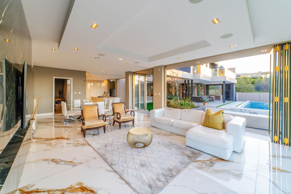 Perched in one of the highest and most sought-after locations in Steyn City, this architecturally striking 6-bedroom, 7-bathroom modern residence offers a rare combination of luxury, comfort, and breath-taking views. Overlooking the prestigious Steyn City Golf Course, the estate, and the exclusive Villa Steyn, this home promises a lifestyle of sophistication and serenity.