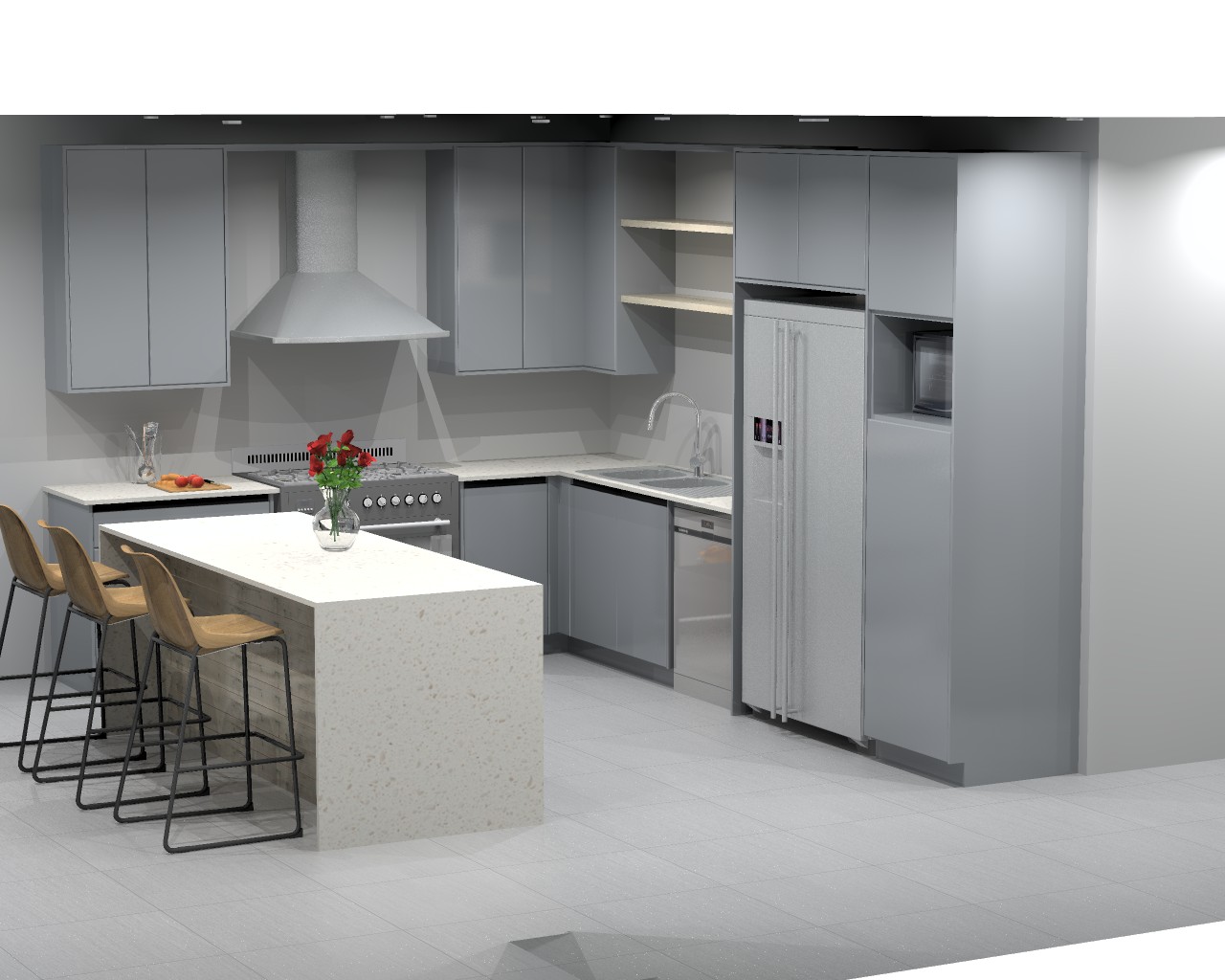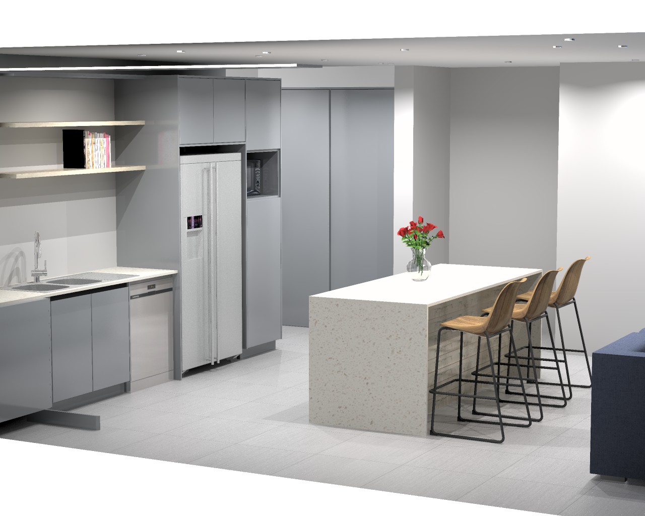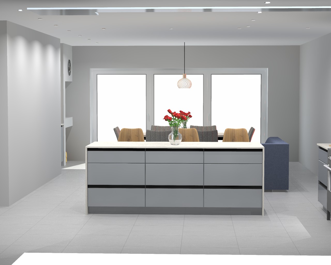 • Modern kitchen with a central island and additional seating – perfect for entertaining