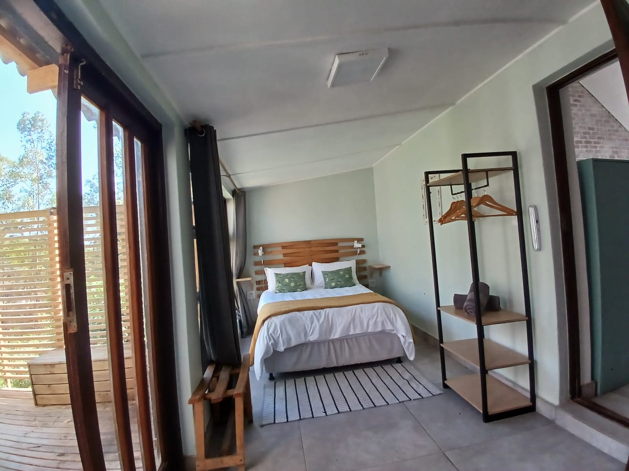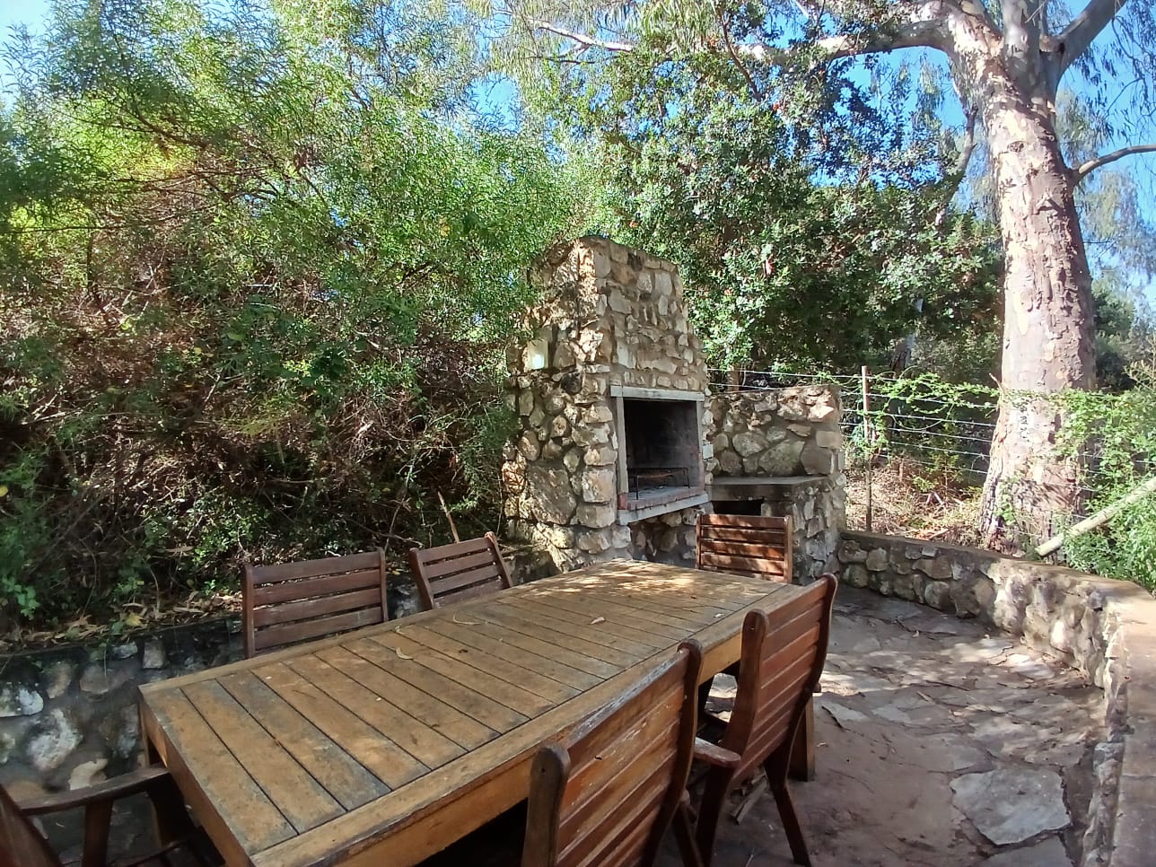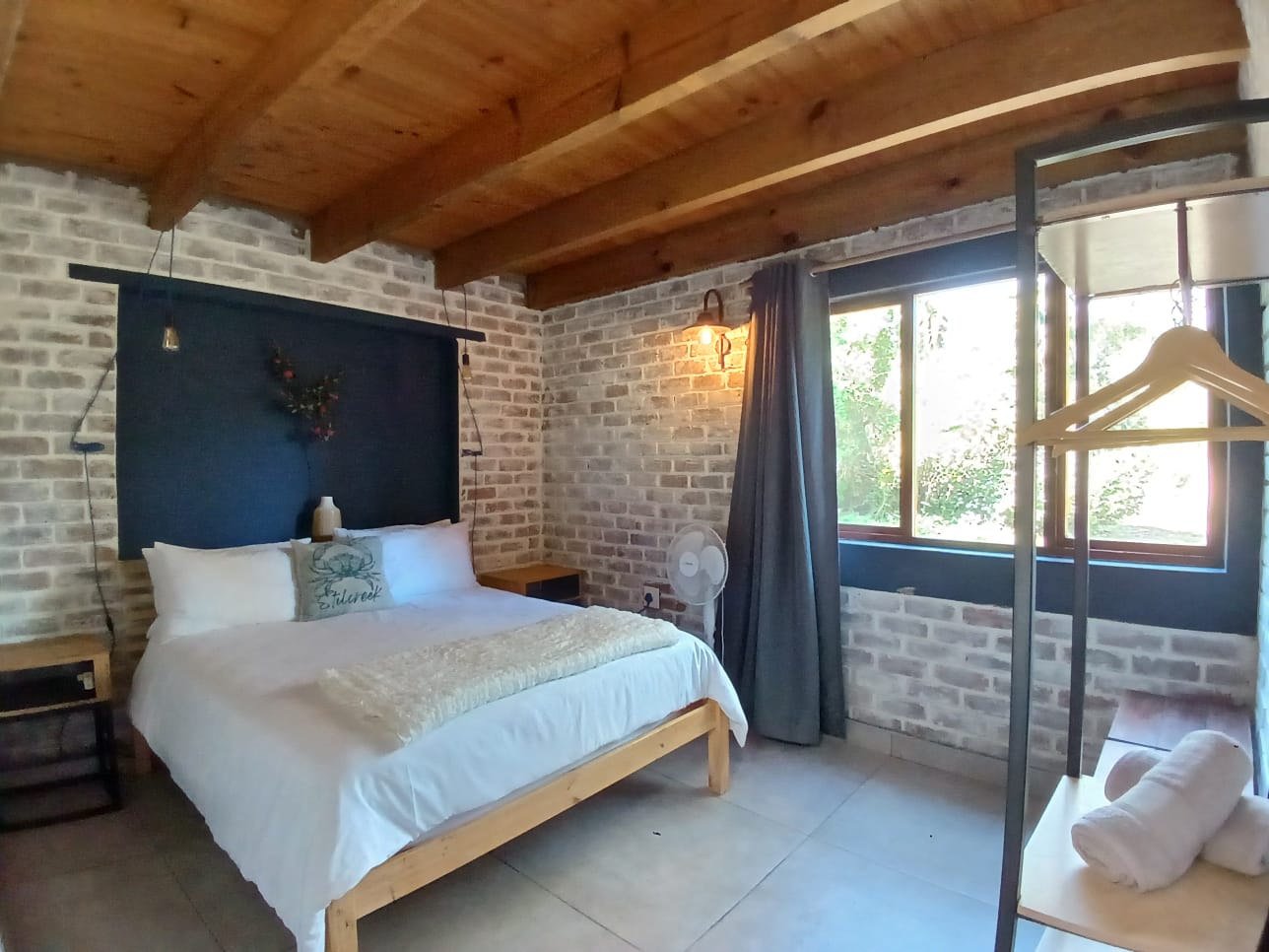 The heart of the cottage is the open-plan living area, complete with an indoor braai, creating a cozy atmosphere for shared moments. Step out onto the patio, adorned with the shade of graceful trees and overlooking a serene stream. Follow the pathway to discover an outdoor built-in braai area nestled beside the babbling stream, providing an enchanting setting for al fresco dining.