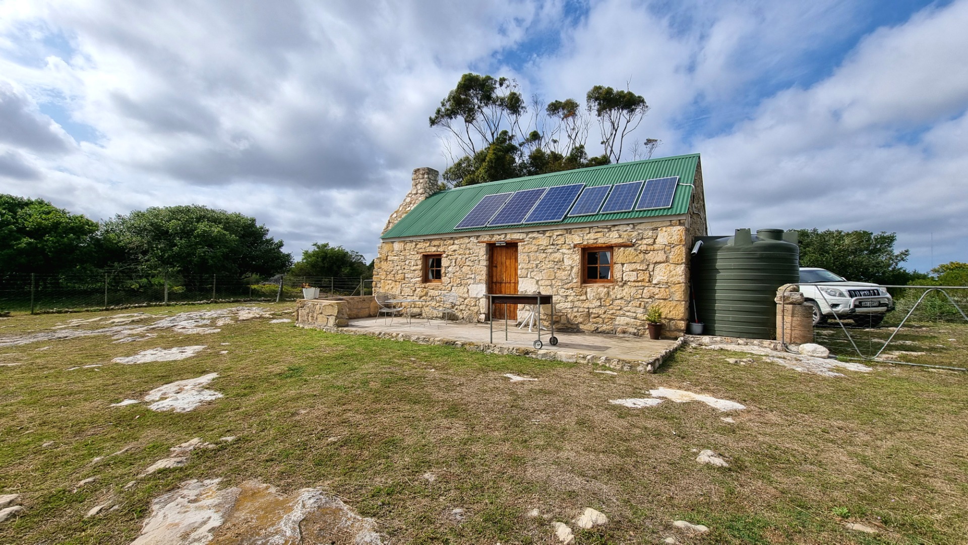 House 4: 1 bedroom, 1 bathroom, and a braai area (solar and gas).