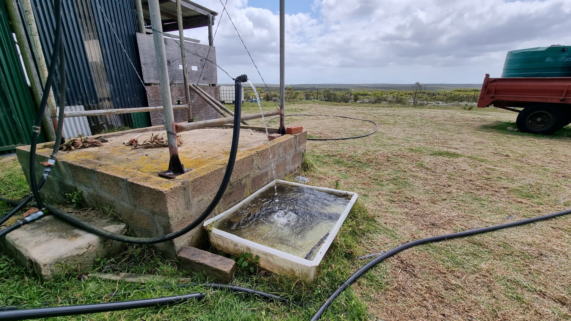 3 Boreholes: The main borehole produces 4,000 liters per hour with minimal lime, powered by a 2.2 kW, 3-phase pump, at a depth of 147 meters.
