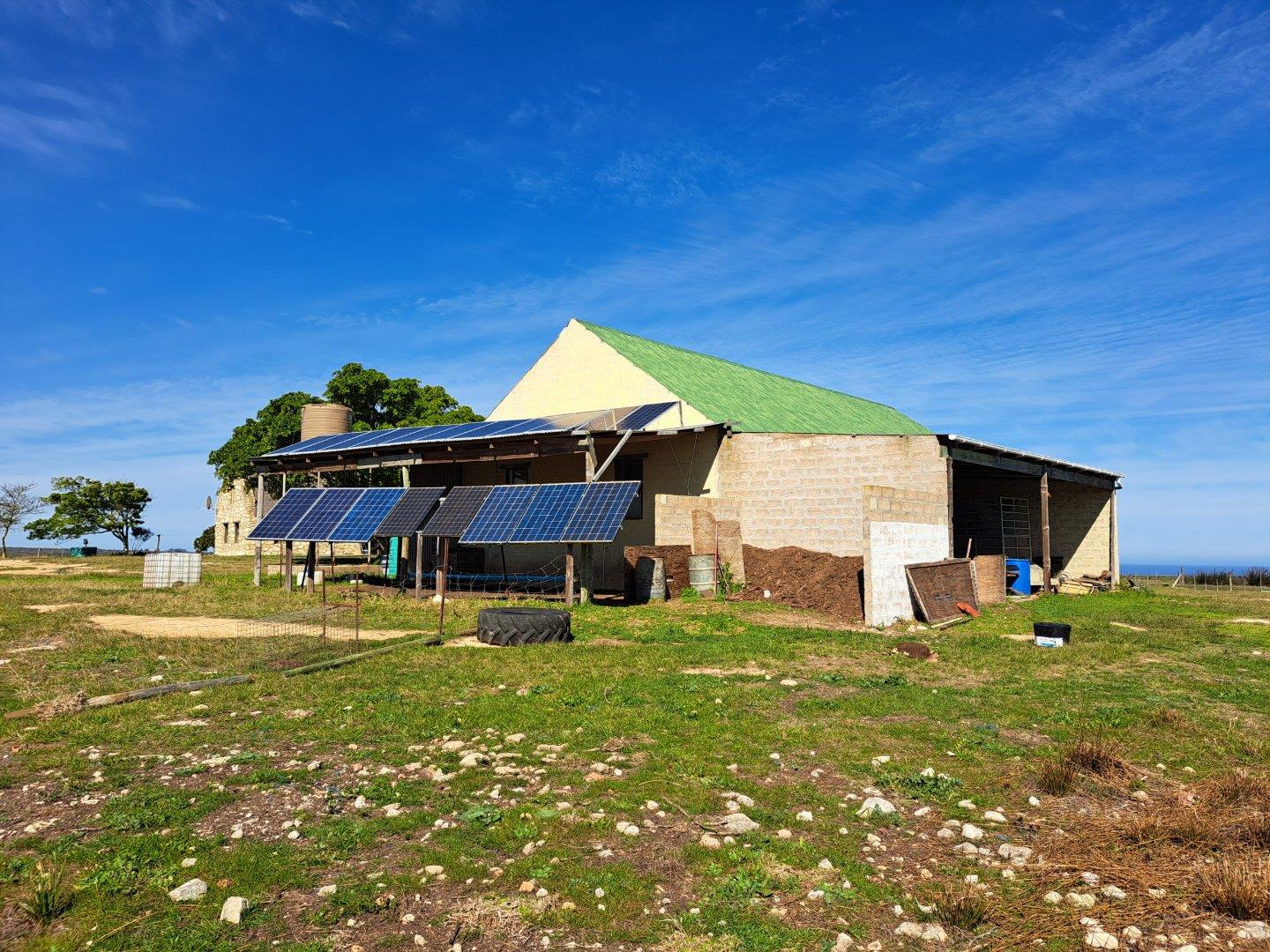 -| Solar power and gas geysers (off the grid farm).