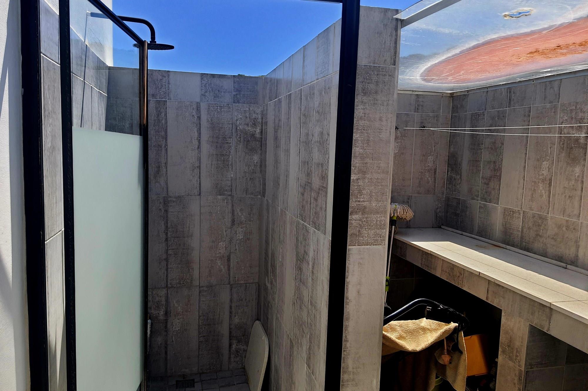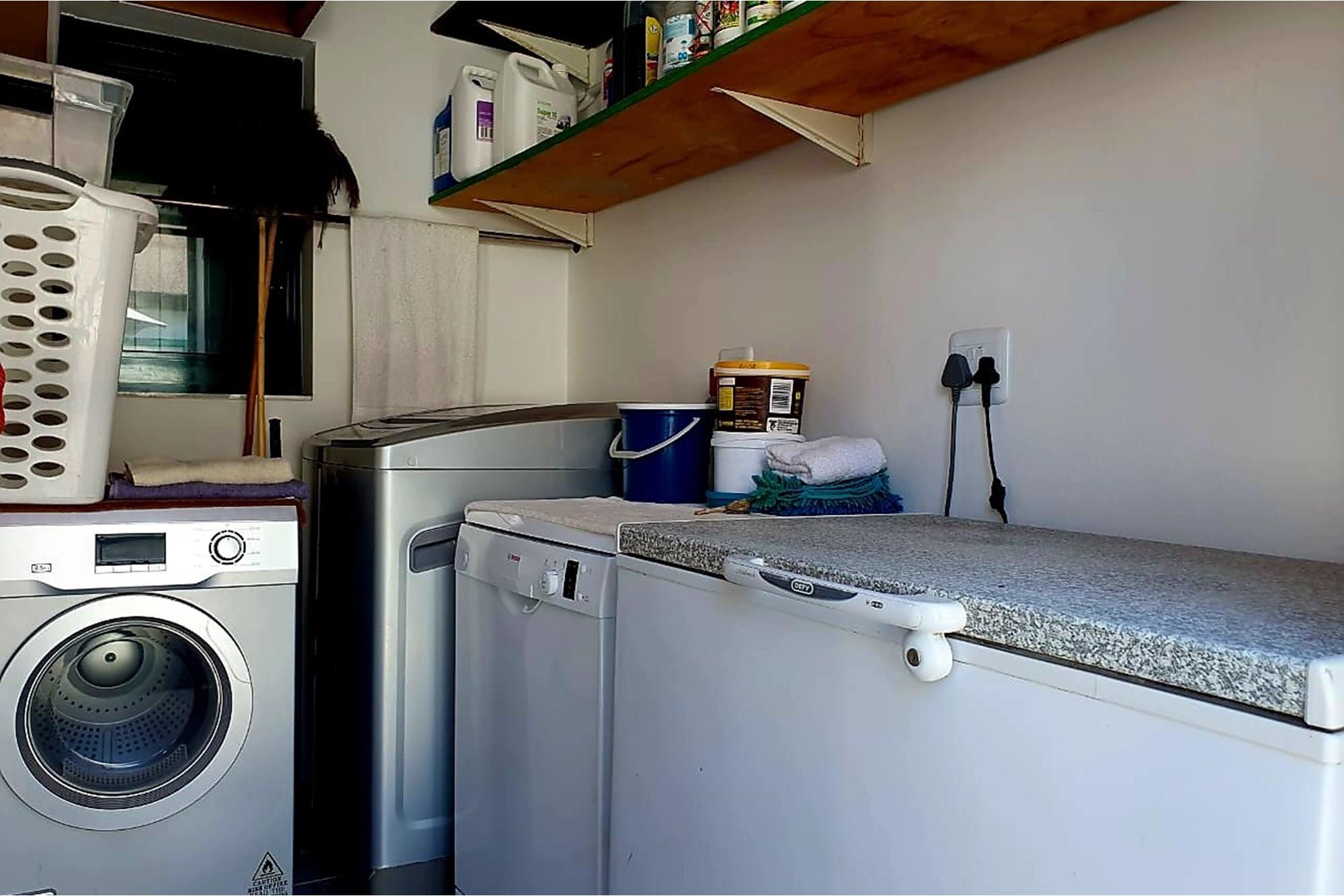 A designated area for appliances connects seamlessly to a convenient laundry space, ensuring practicality in daily routines. The outdoor area features undercover parking, an outdoor shower, and a wash trough.