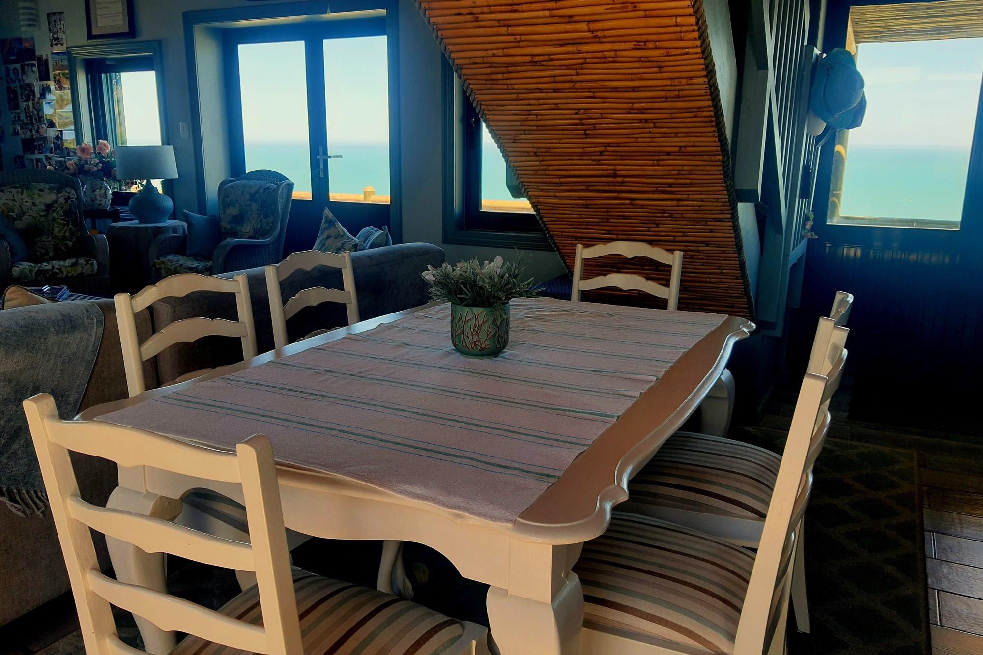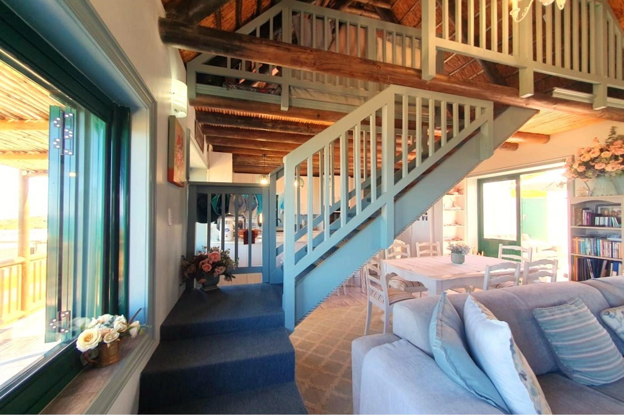 Upon entering this pristine home, you`ll be greeted by a seamless fusion of comfortable indoor and outdoor spaces. The ground floor boasts a contemporary, well-laid-out kitchen with ample cupboards and workspace. This flows into a dining area and lounge that opens to a captivating southern sea-facing veranda, offering sweeping views of the ocean, rolling dunes, and beautiful fynbos.