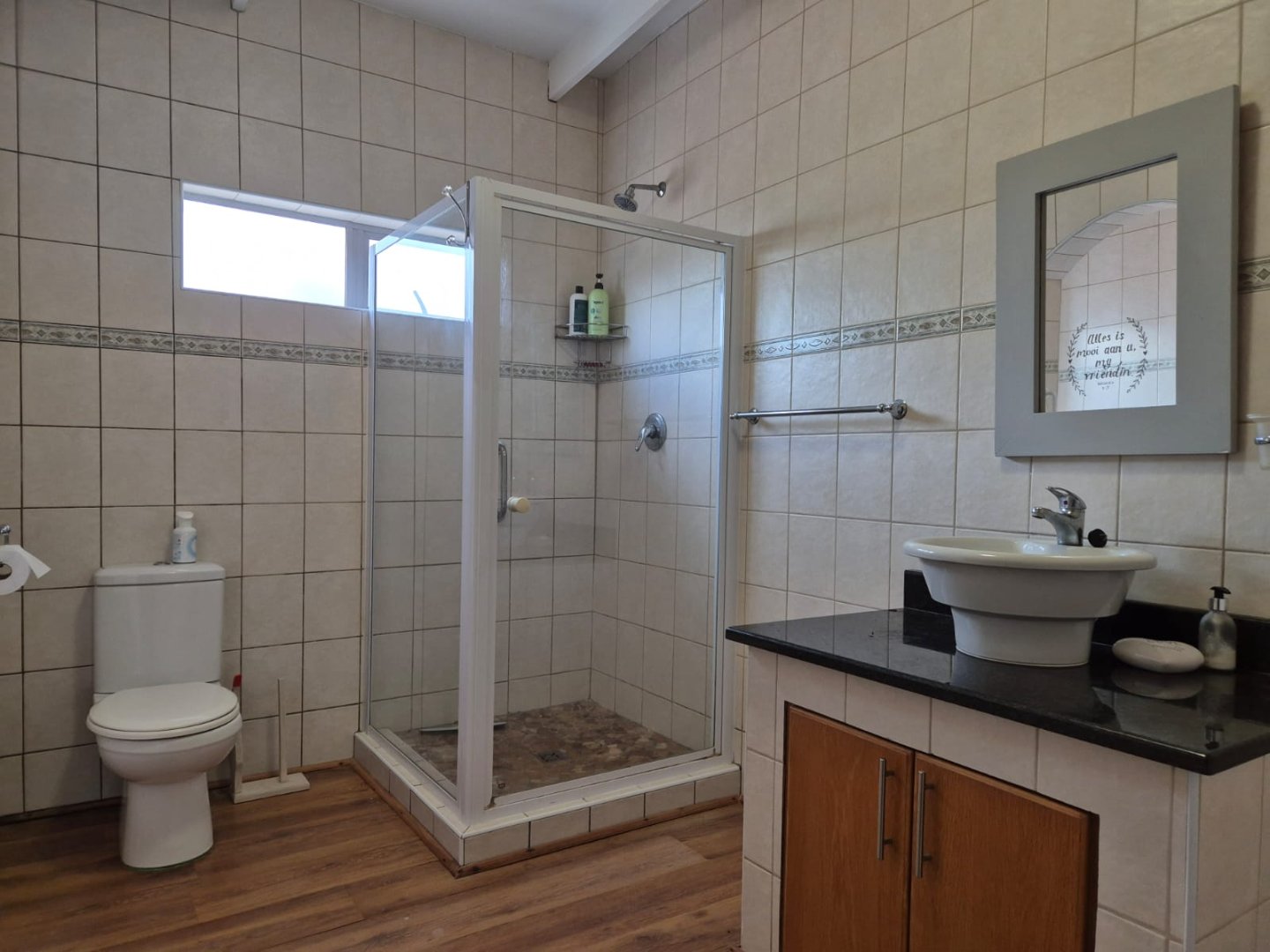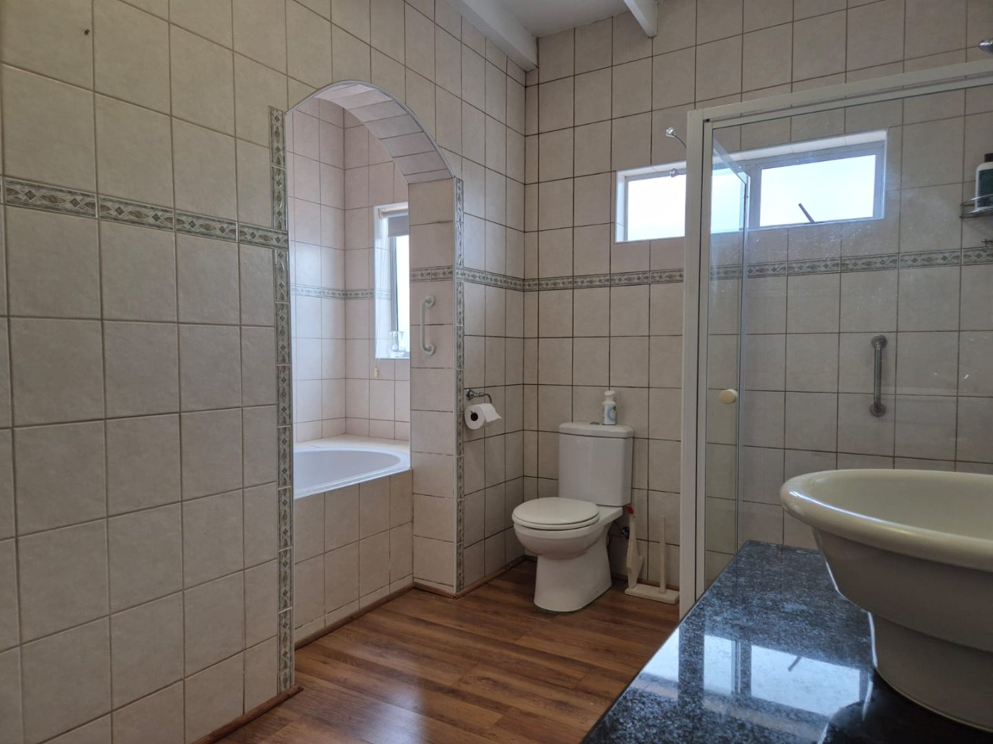 From the living and dining area a passage leads to three very spacious bedrooms, all with built-in cupboards. The main bedroom includes a private en-suite bathroom, while the other two bedrooms are served by a full family bathroom. An automated double garage with direct in-house access adds security and convenience. The garden is immaculate and spacious and boasts dual entrances from two different streets, offering extra flexibility and convenient access for guests or additional vehicles.