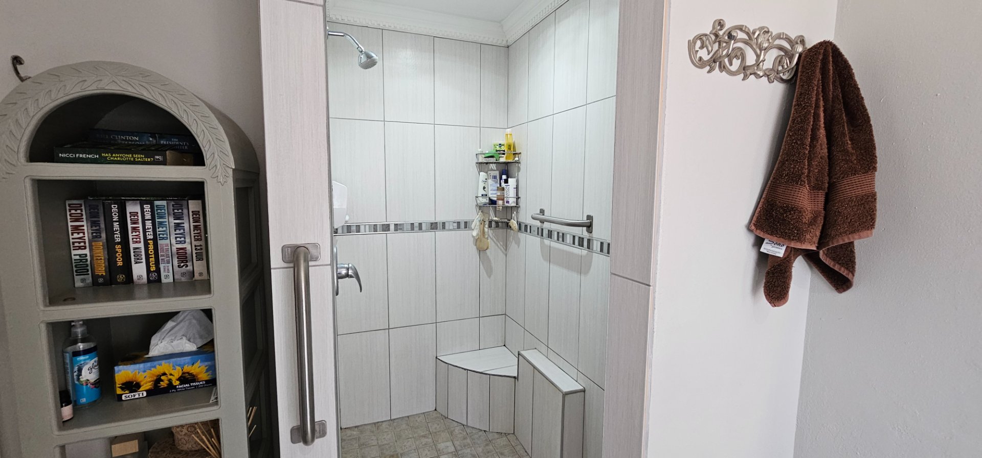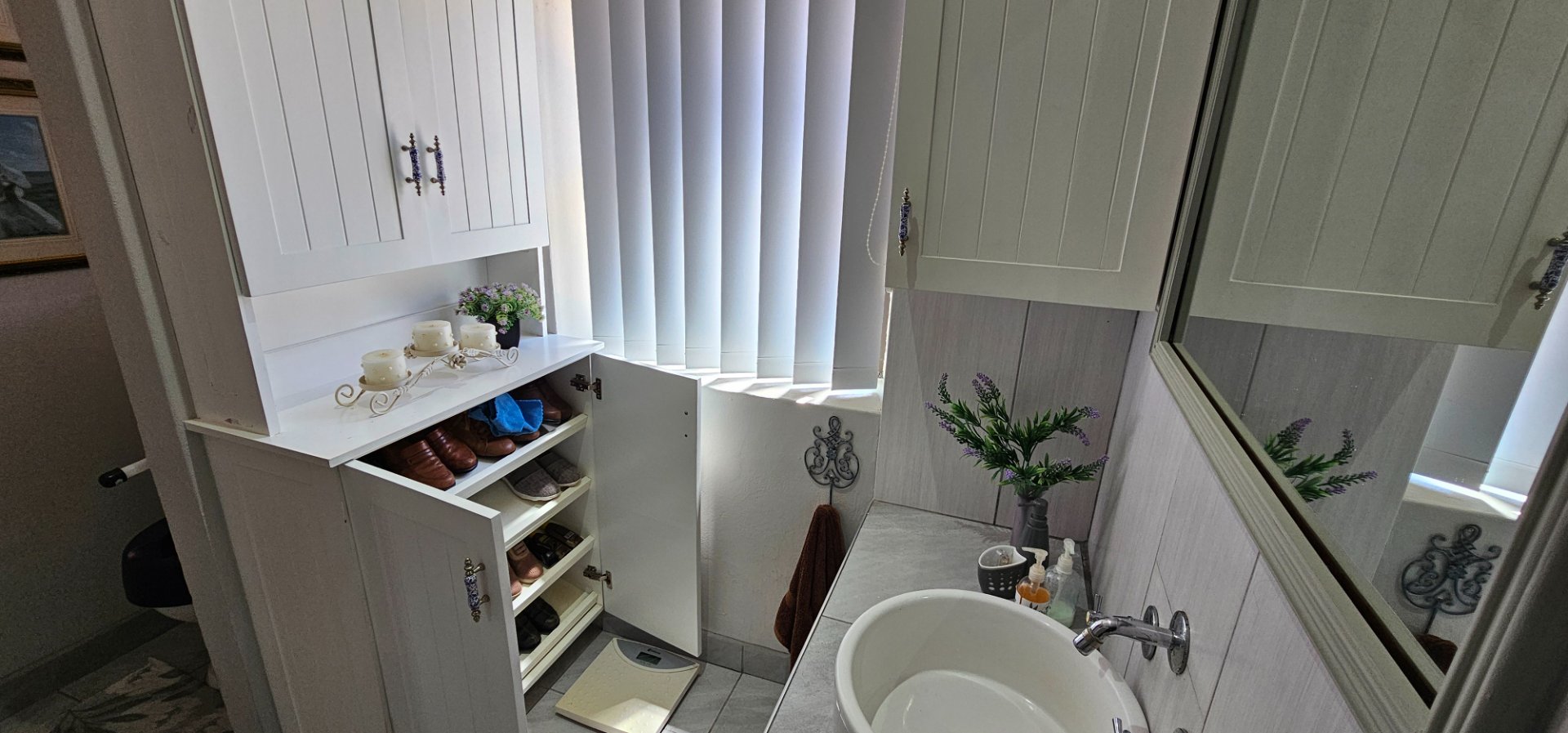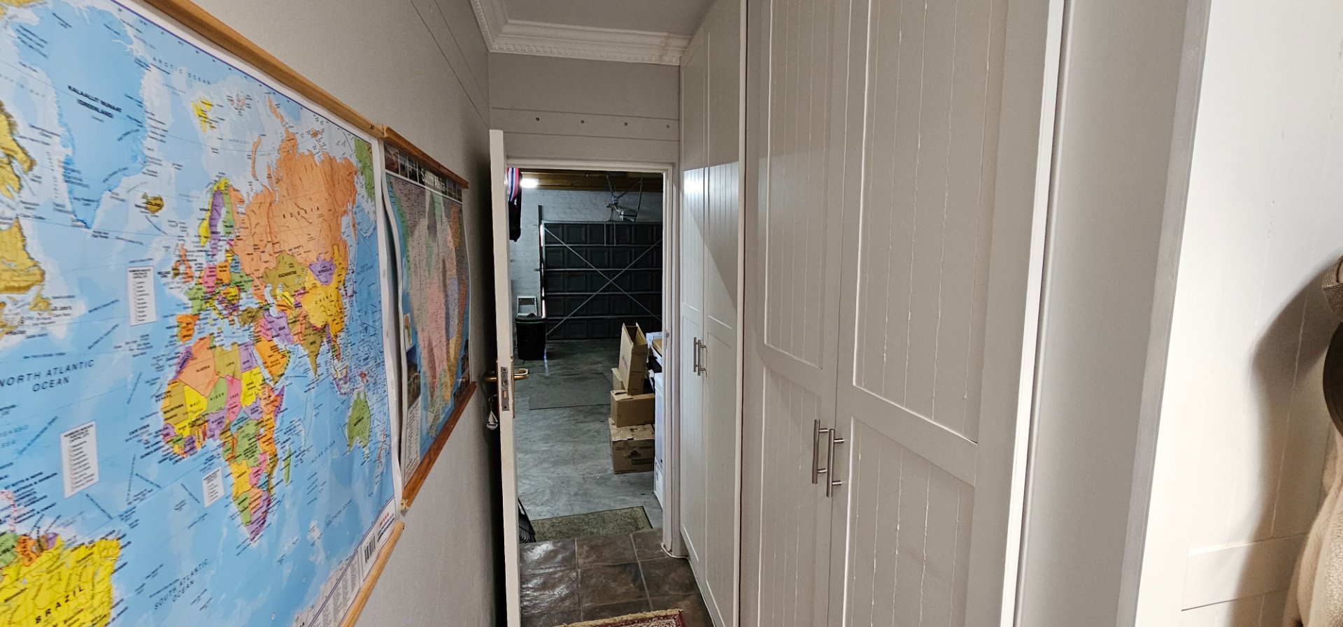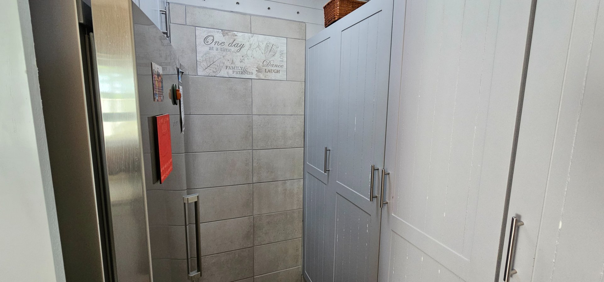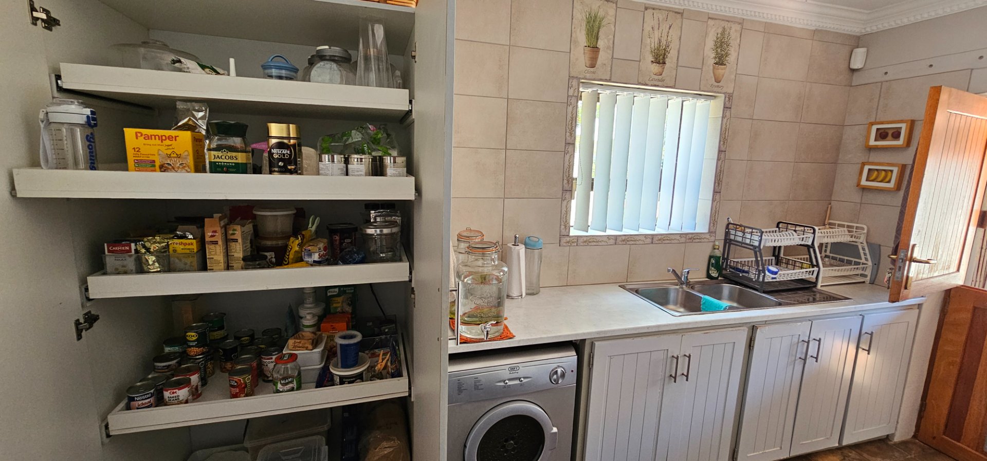As you enter the house you are taken back to a farmstyle living. You enter into the Braai room with loads of cupboards, enclosed and still airy.