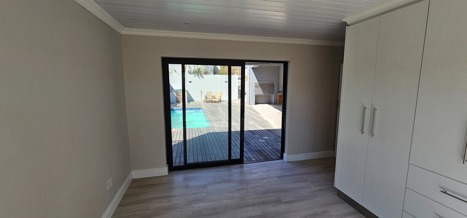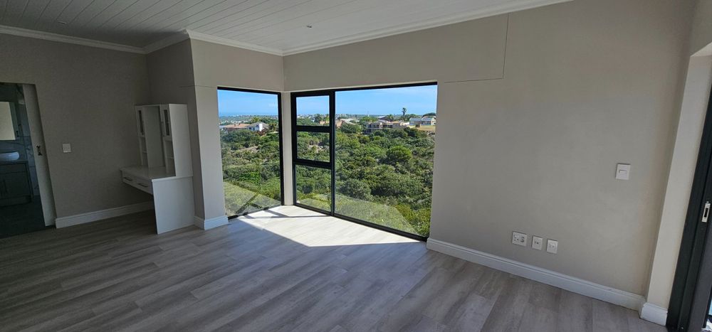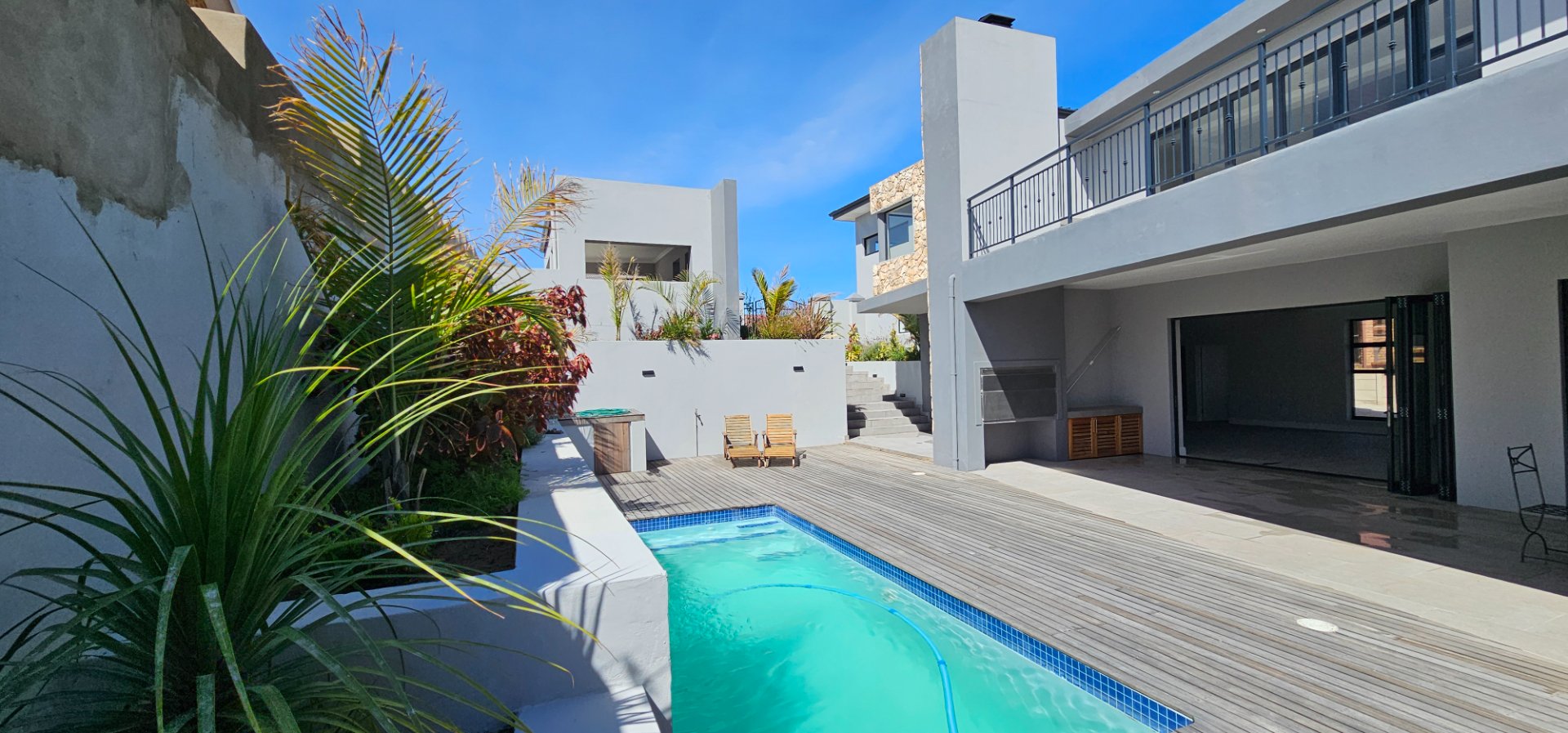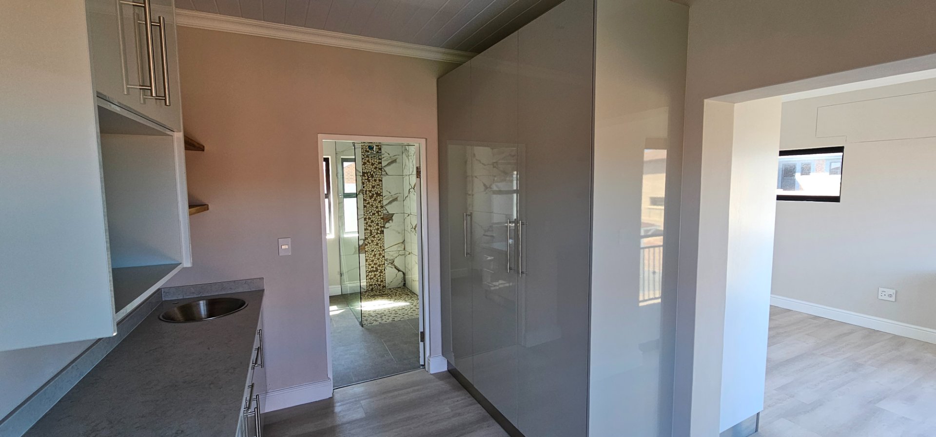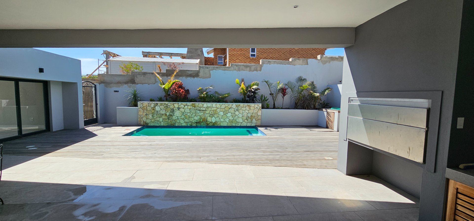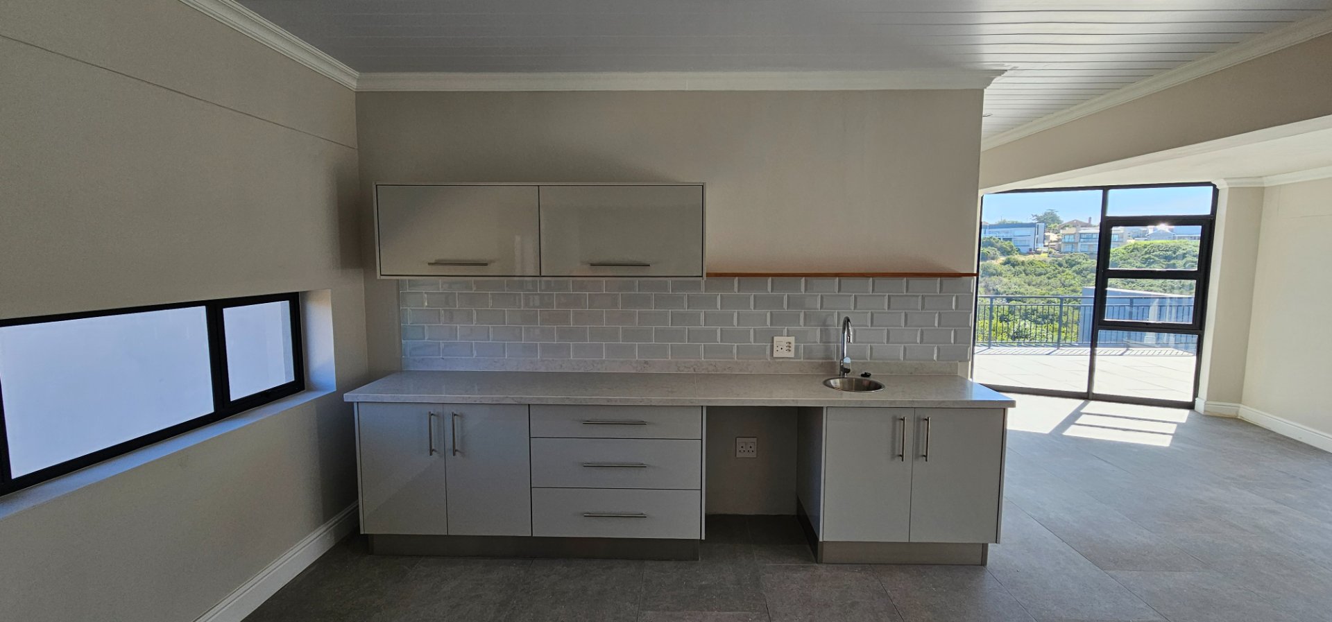 As you move to the Kitchen, there is two big Slidding doors. One leading to a big Veranda with stunning views of the estuary behind the house and distant Sea views. To right the doors open up to the undercover Braai area and Swimming pool.