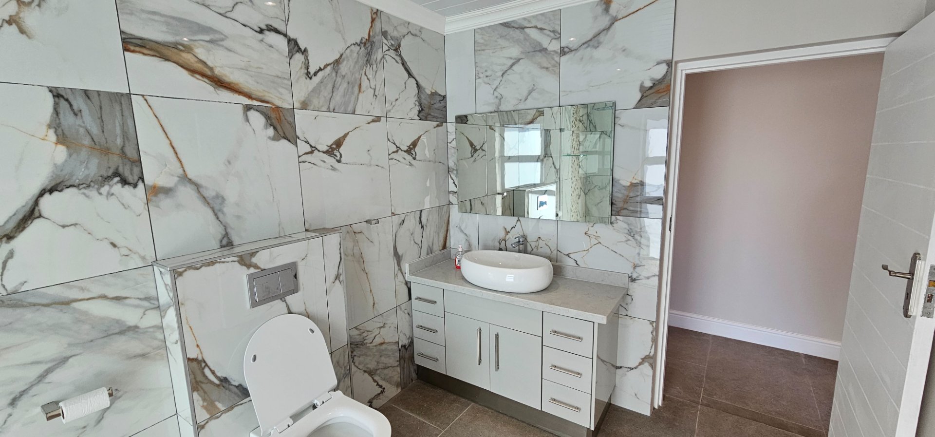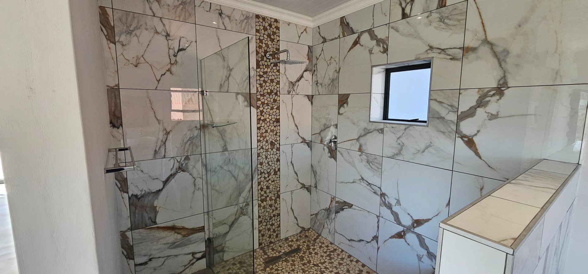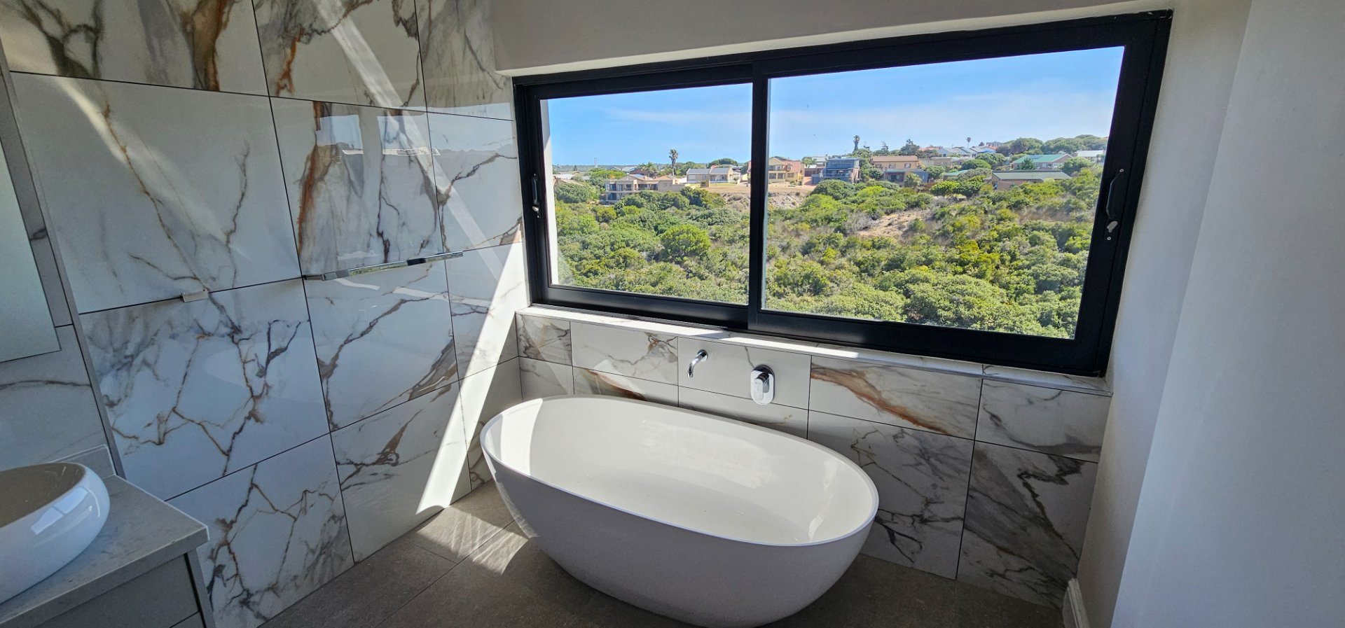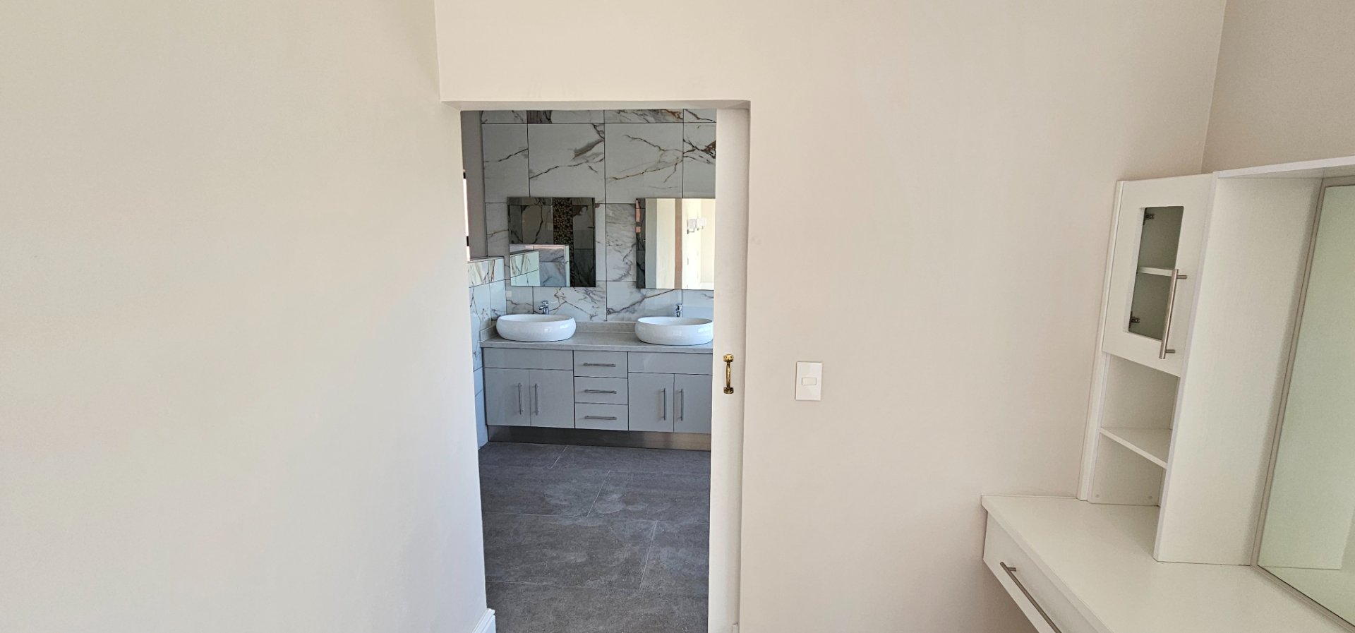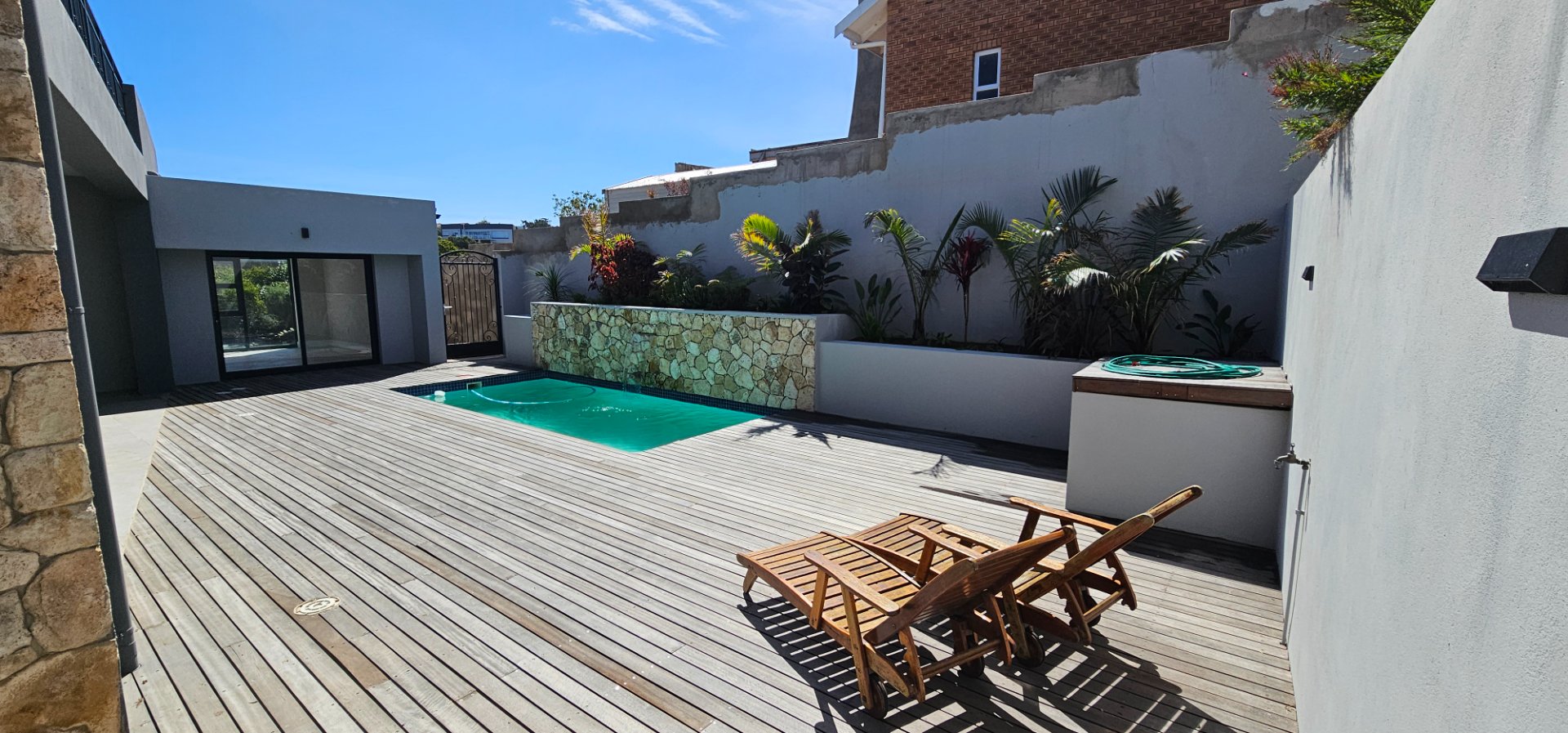 As you move to the Kitchen, there is two big Slidding doors. One leading to a big Veranda with stunning views of the estuary behind the house and distant Sea views. To right the doors open up to the undercover Braai area and Swimming pool.