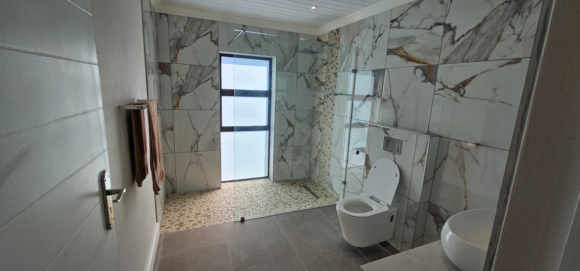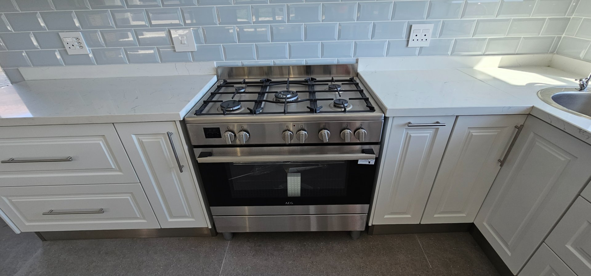 The beautifull Kitchen with an Island and Gas stove is perfectly set in the house. Behind the kitchen is the Scullery and loads of cupboards for all your groceries.